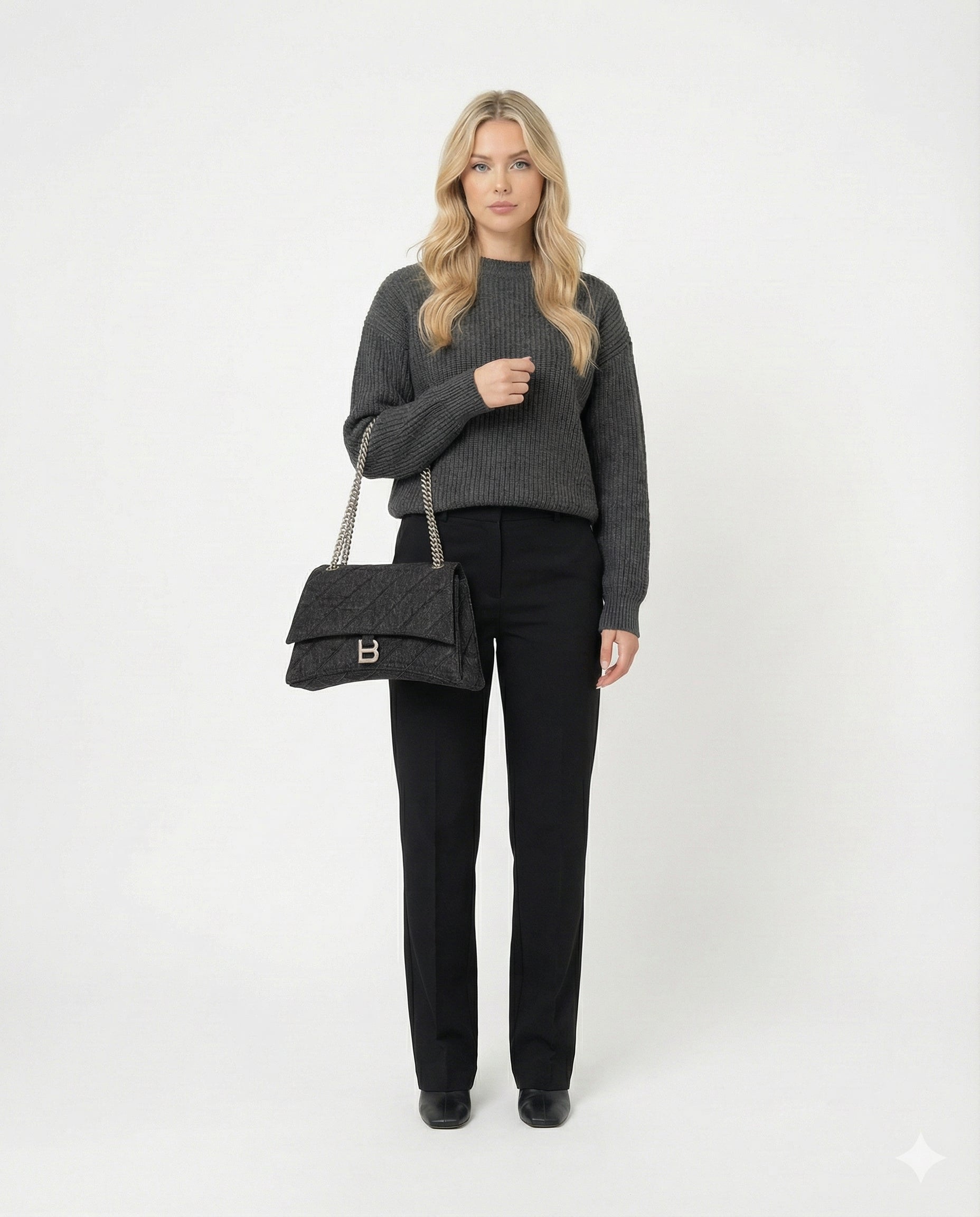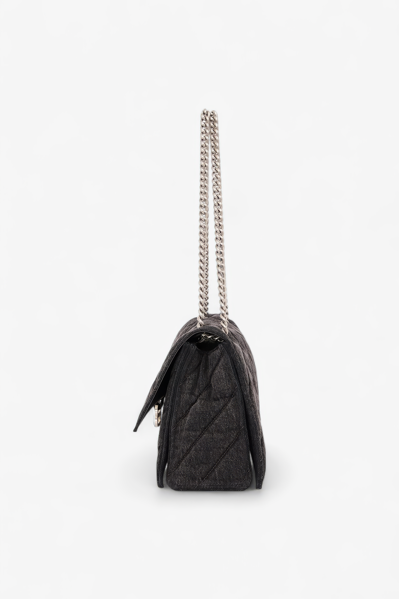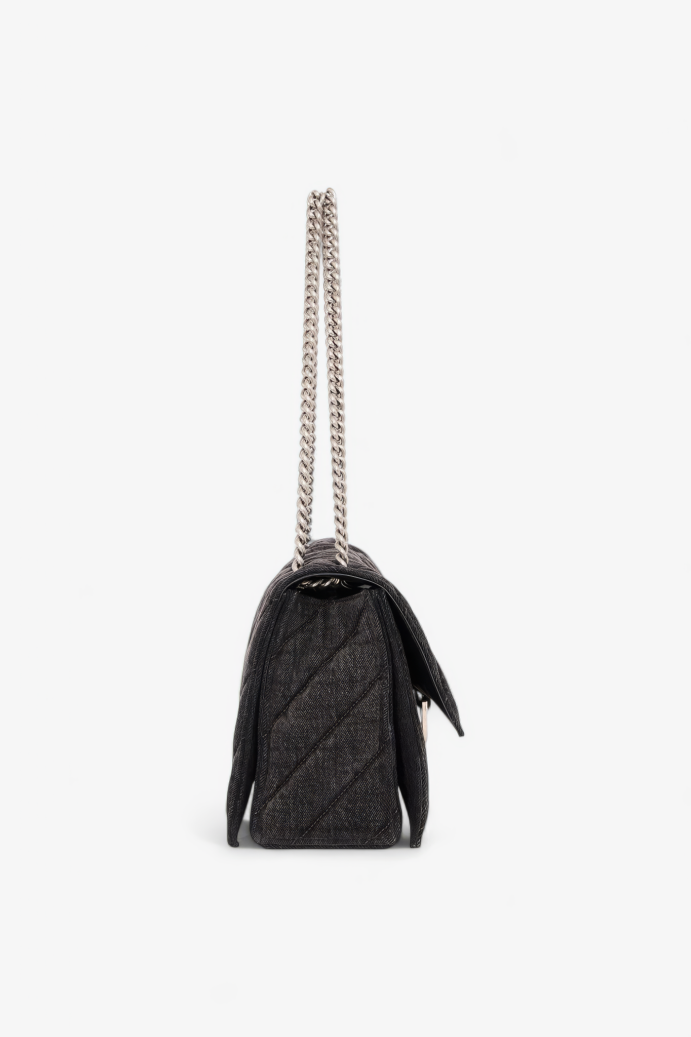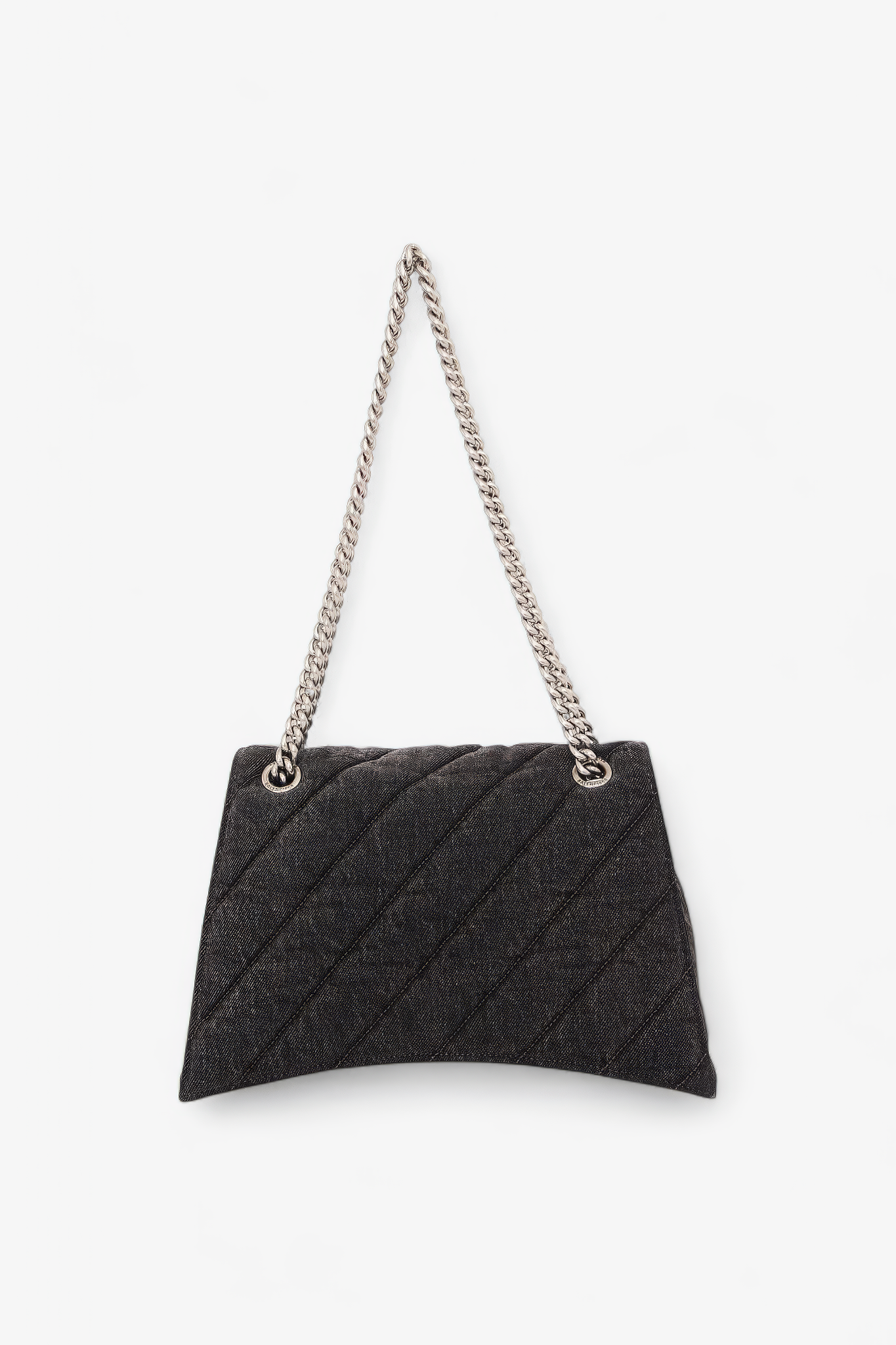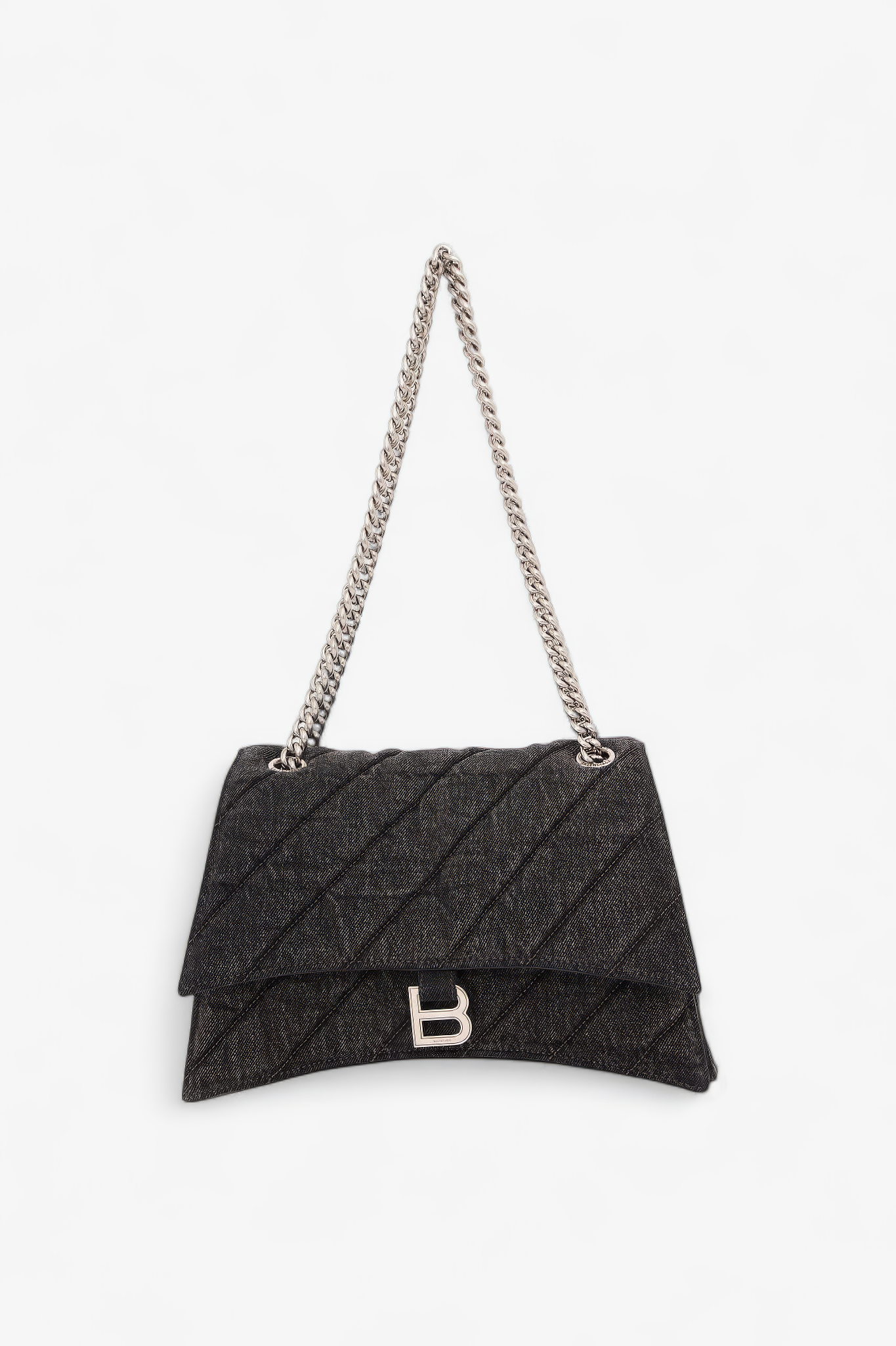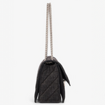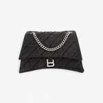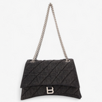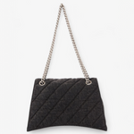 Oplev Balenciaga Crush Medium - en raffineret taske med quiltet tekstur og en karakteristisk bølget bund. Den kommer med en metalkædestrop og en indvendig af nappa lammeskind. Med tre rummelige rum og en praktisk magnetlukning kombinerer den stil og funktionalitet.