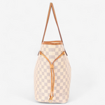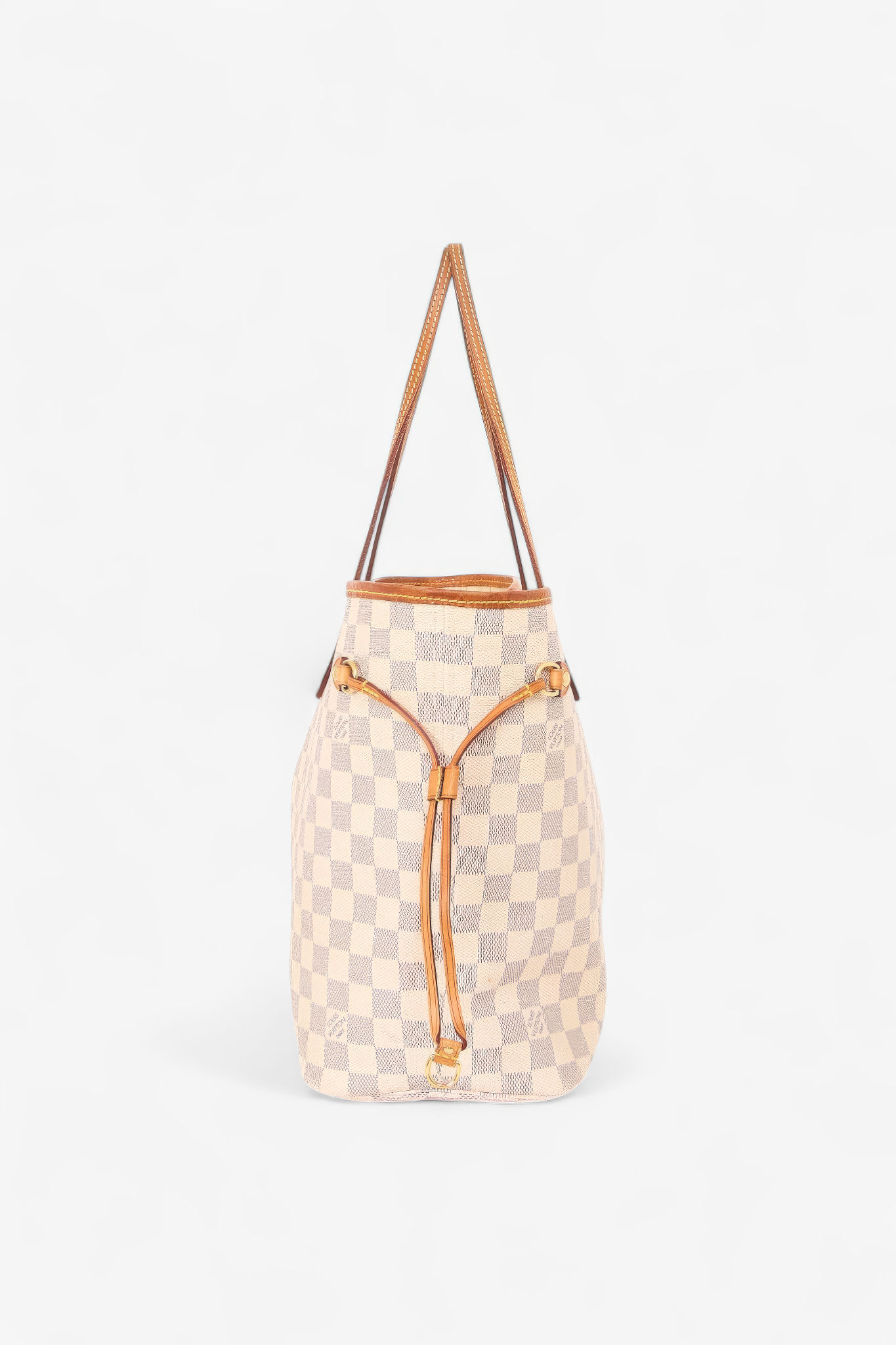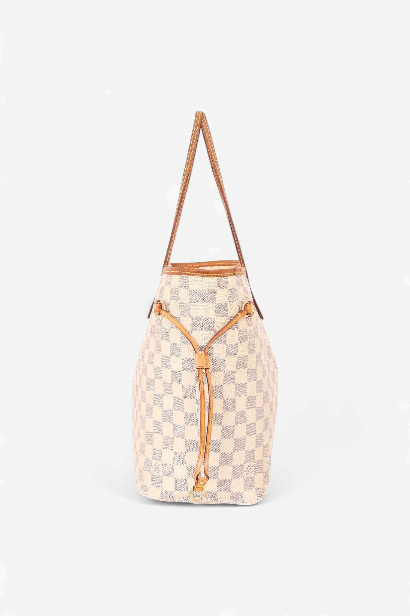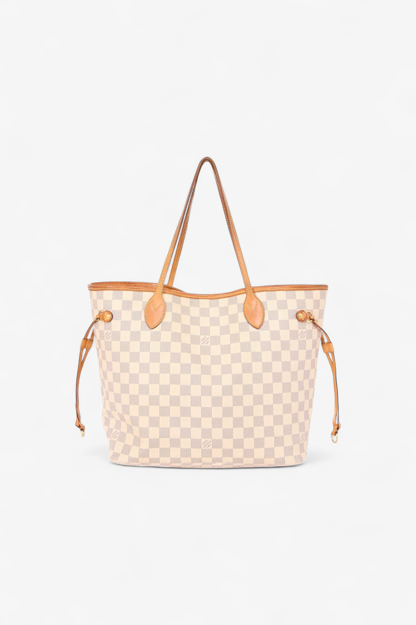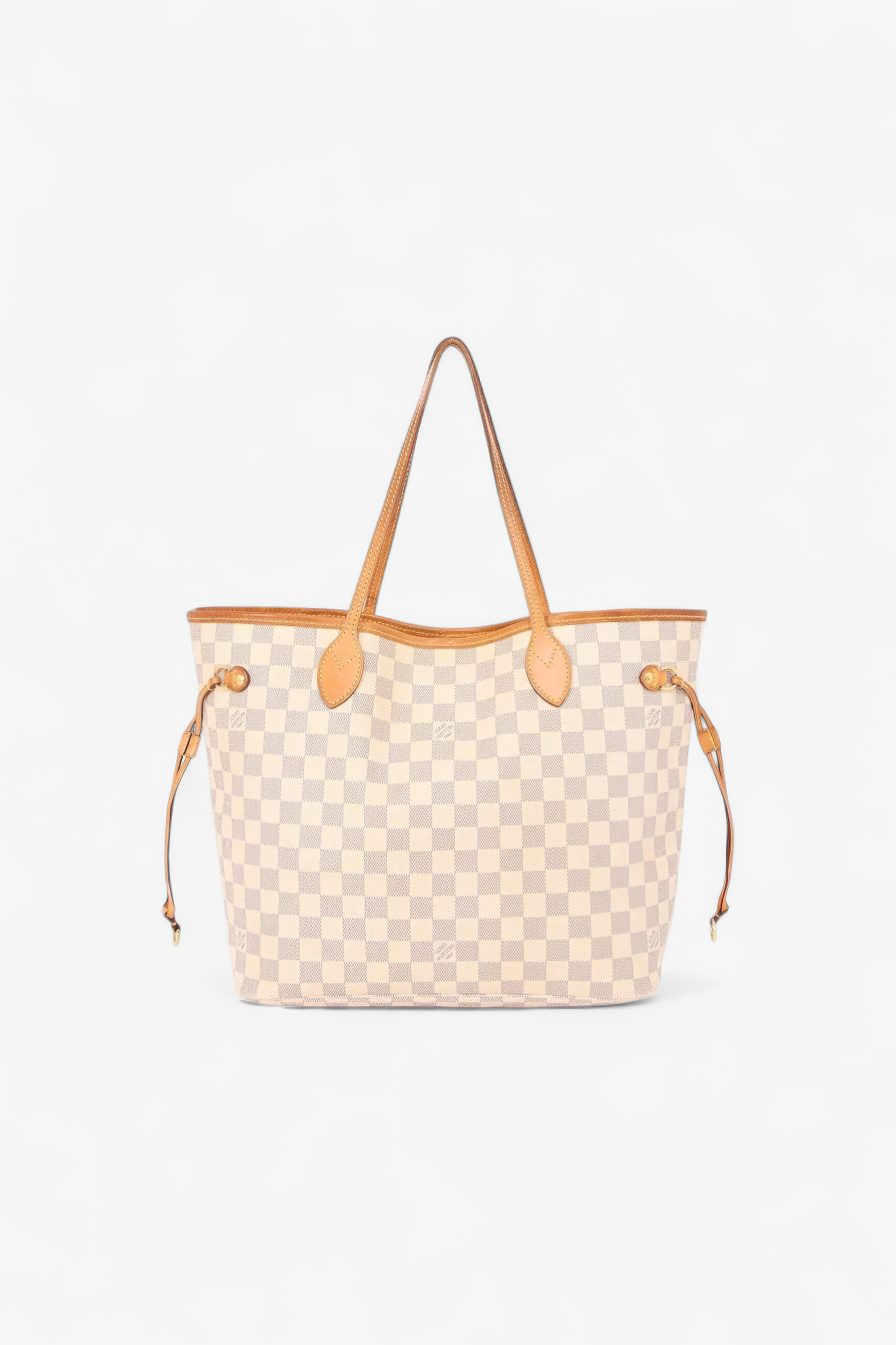 Ikonisk Louis Vuitton Neverfull i det populære Damier Azur-canvas med lyse tern og klassiske læderdetaljer. En af Louis Vuittons mest elskede totes, kendt for sit lette udtryk og sin alsidighed – perfekt som hverdags-, arbejds- og shoppetaske. De karakteristiske snører i siderne gør det muligt at ændre formen alt efter look og behov, og Damier Azur giver et frisk, elegant og sommerligt LV-udtryk, der passer til alt.