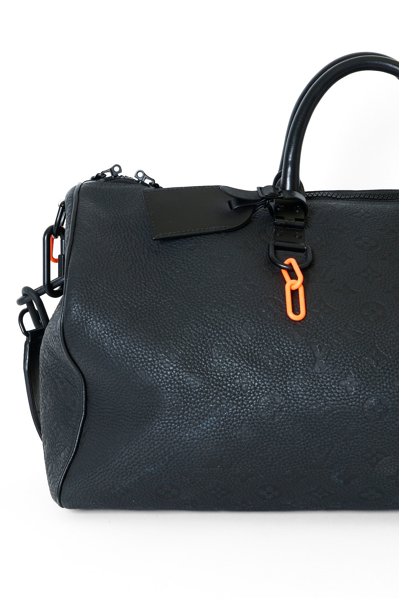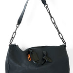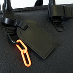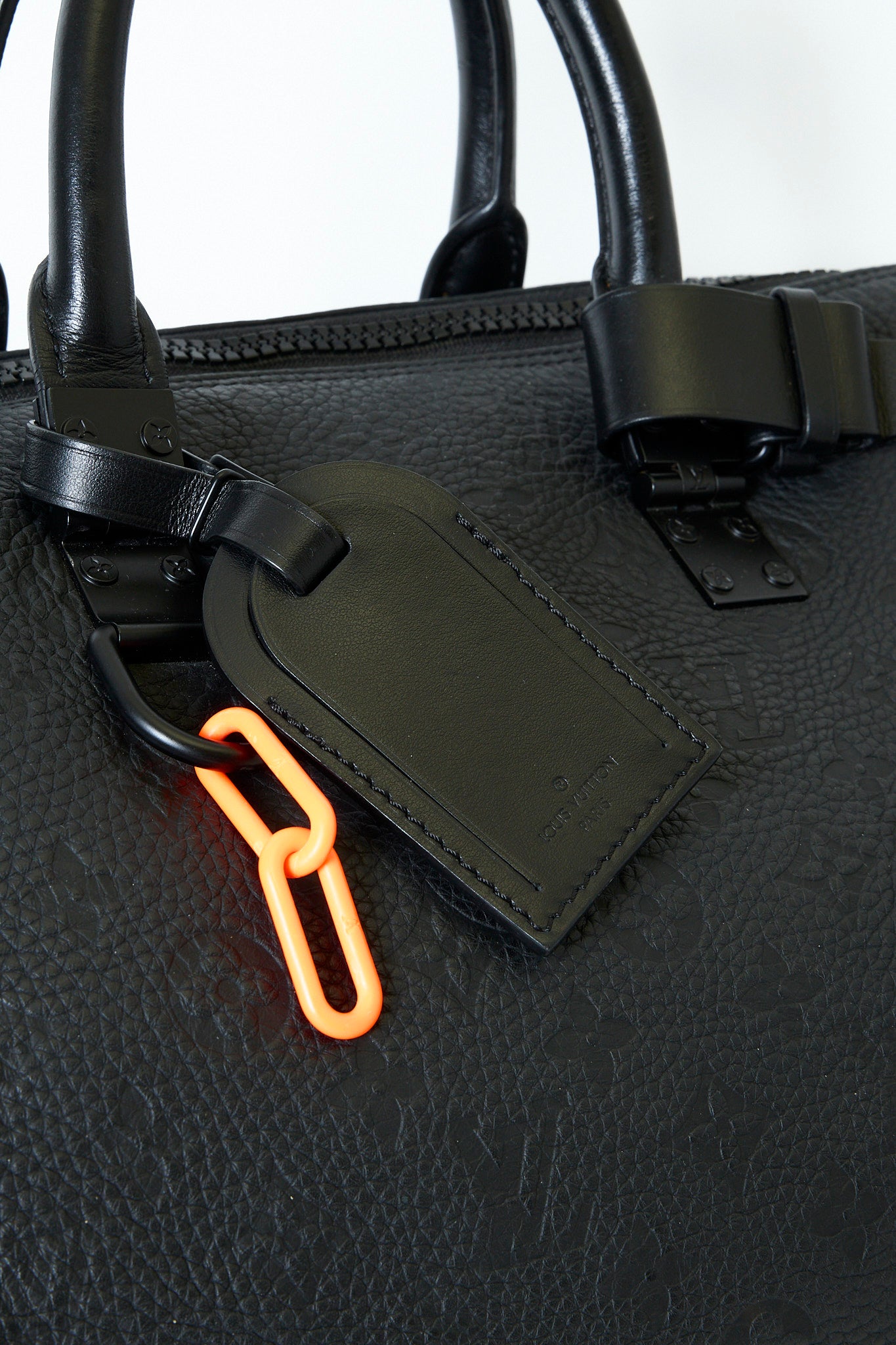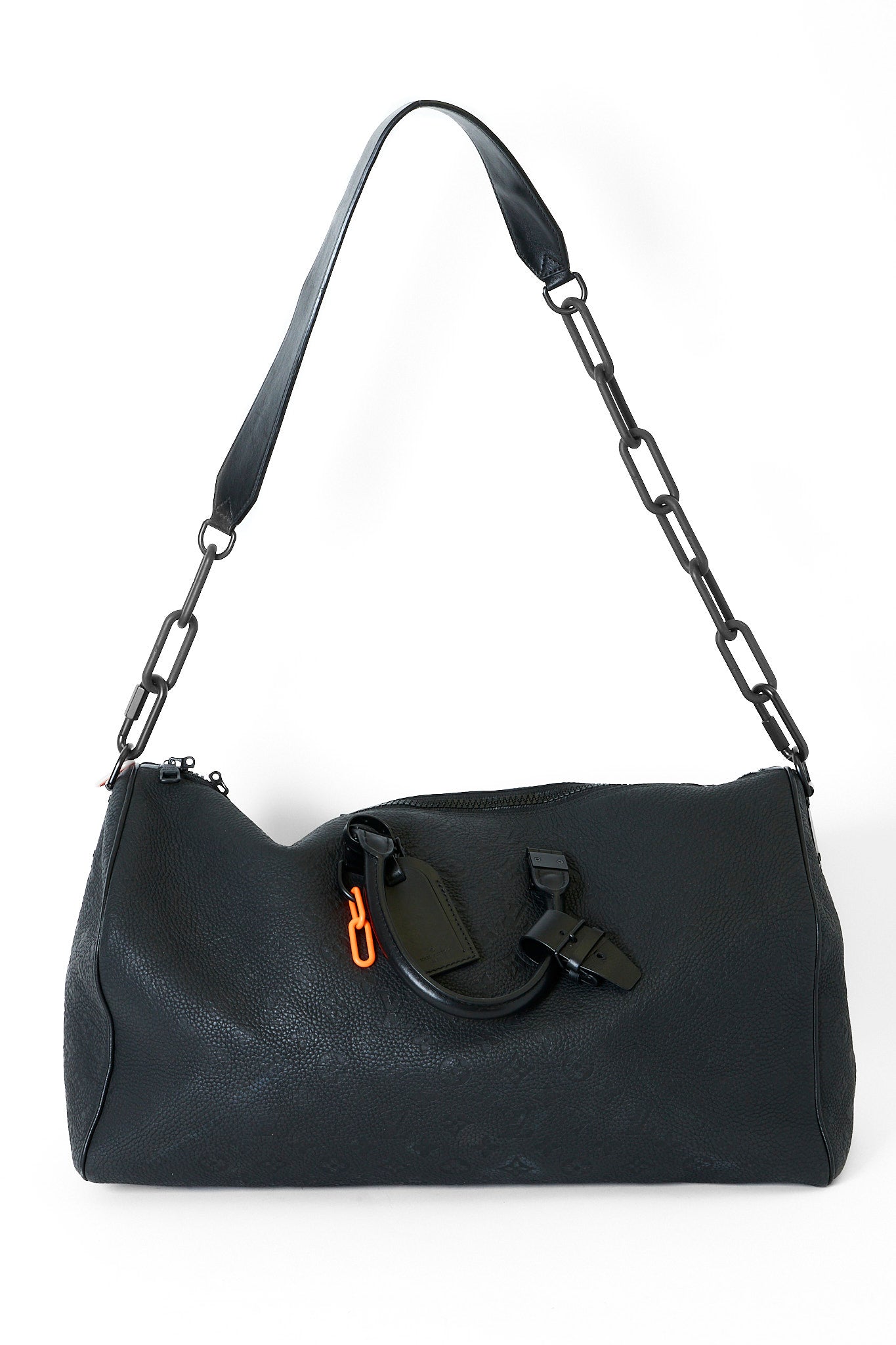 Et moderne samlerobjekt fra Virgil Ablohs debutkollektion for Louis Vuitton (2019), hvor klassiske silhuetter fik et nyt udtryk. Denne Keepall 50 er udført i sort Monogram Eclipse-læder med matte hardware-detaljer, signature orange plastiklink og en kraftig kæderem - en fusion af luksus og industrielt design, der er kendetegnende for Ablohs æstetik.