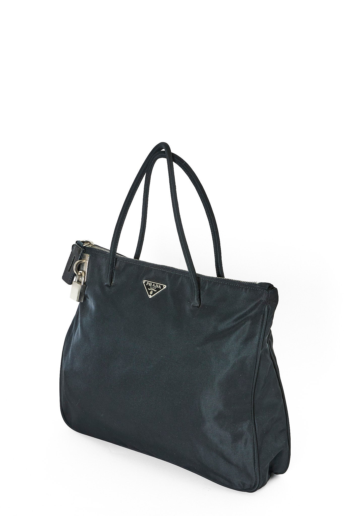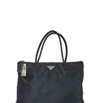 Tidløs Prada tote i sort nylon med sølvfarvede detaljer og det ikoniske trekantede logo på fronten. Tasken er et af Prada's mest genkendelige designs - en fusion af funktionalitet og luksus, der siden 1990’erne har været et modeikon. Let, rummelig og perfekt til både arbejde, rejse og hverdagsbrug.