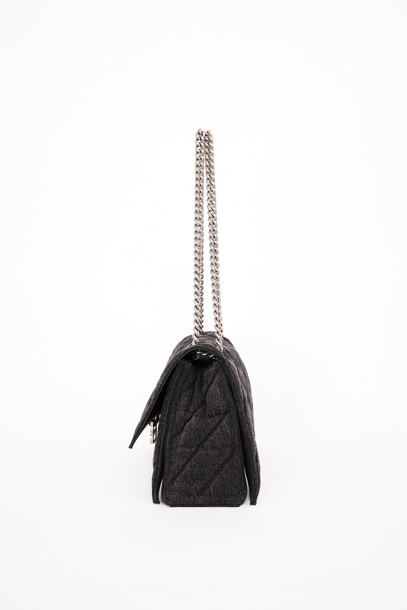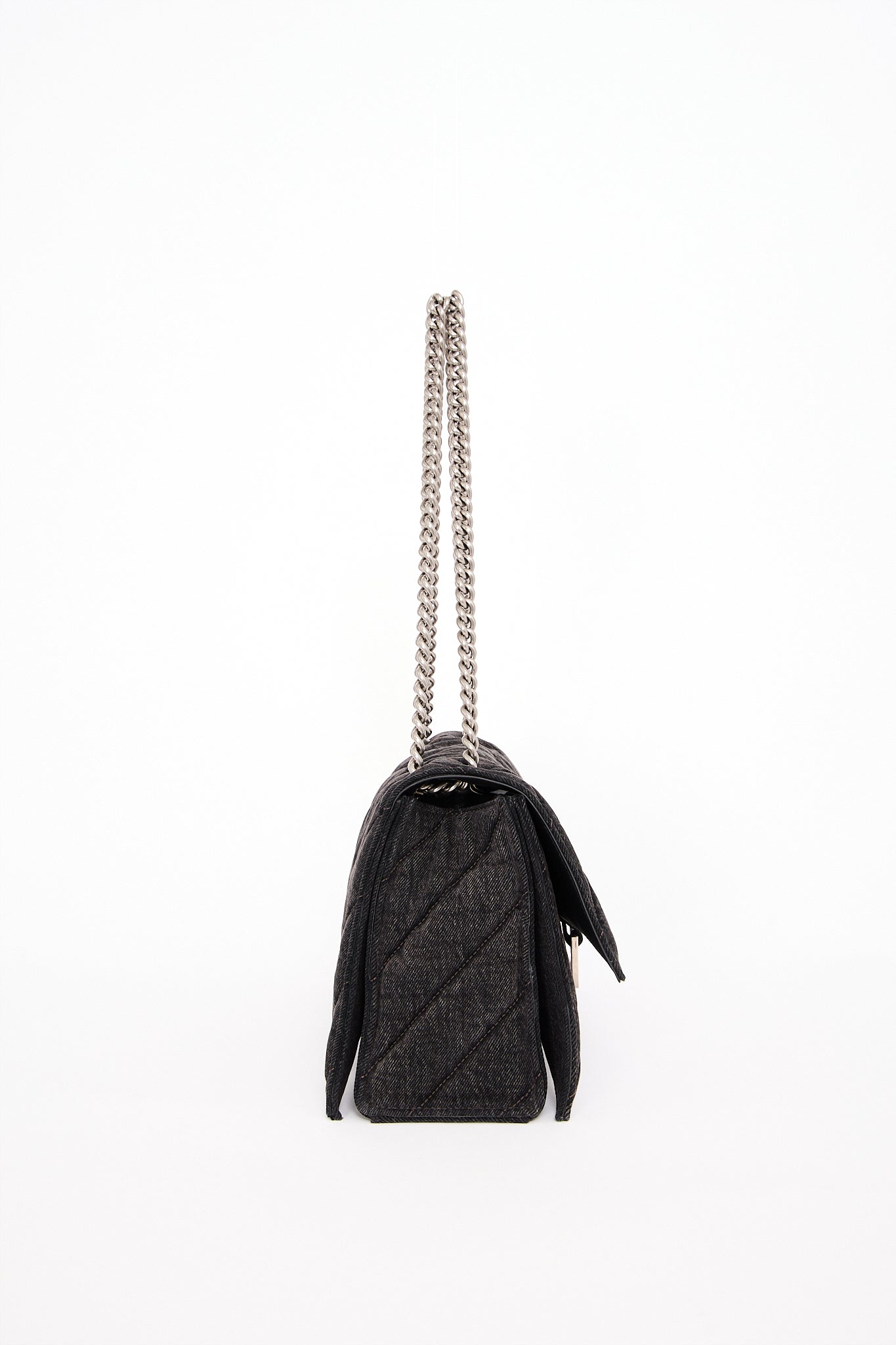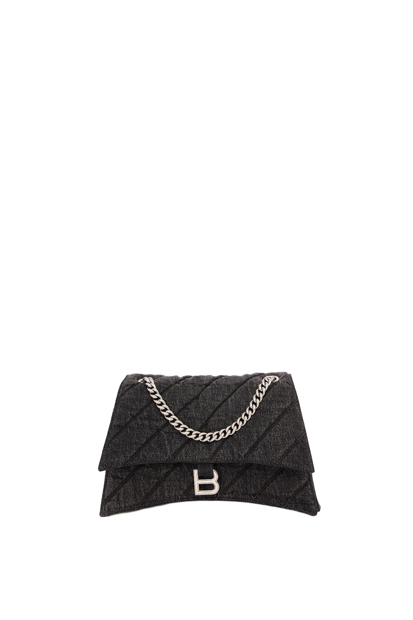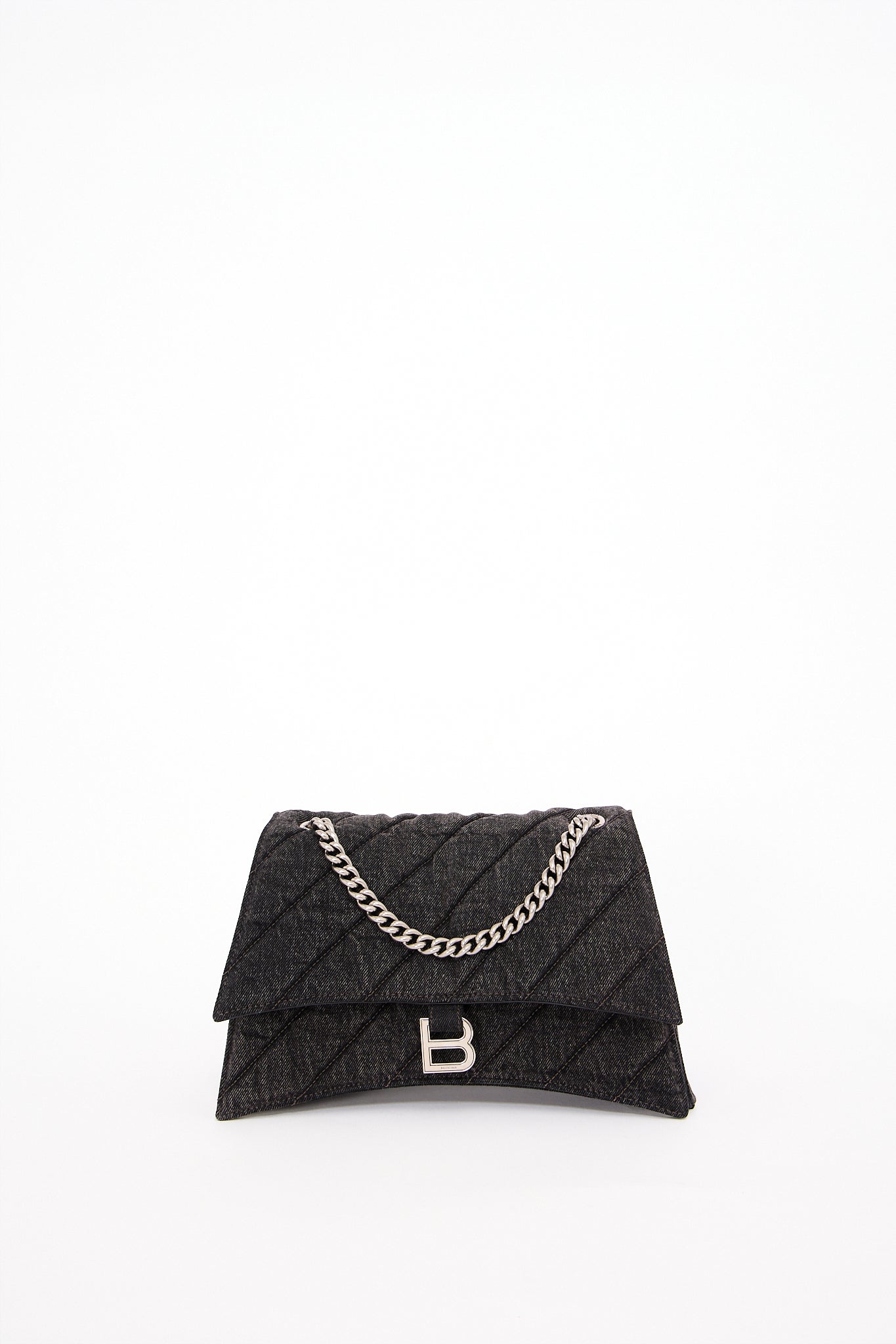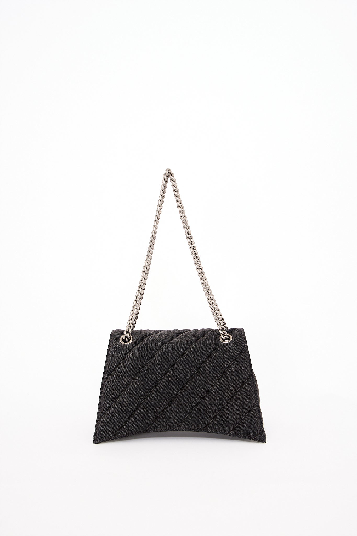 Oplev Balenciaga Crush Medium - en raffineret taske med quiltet tekstur og en karakteristisk bølget bund. Den kommer med en metalkædestrop og en indvendig af nappa lammeskind. Med tre rummelige rum og en praktisk magnetlukning kombinerer den stil og funktionalitet.
