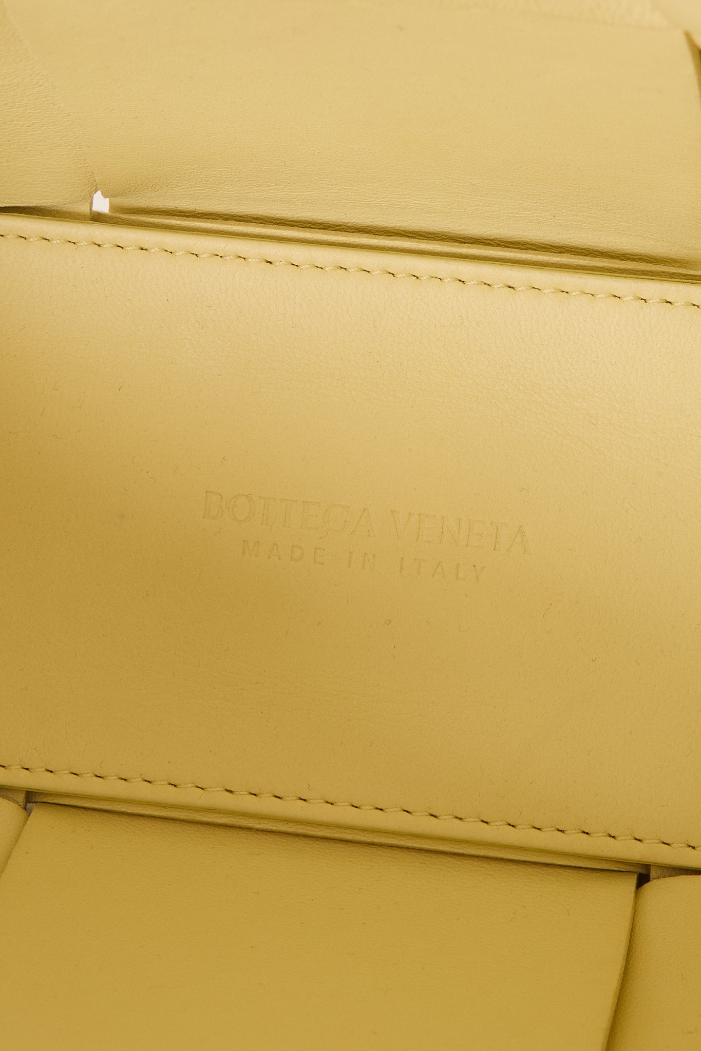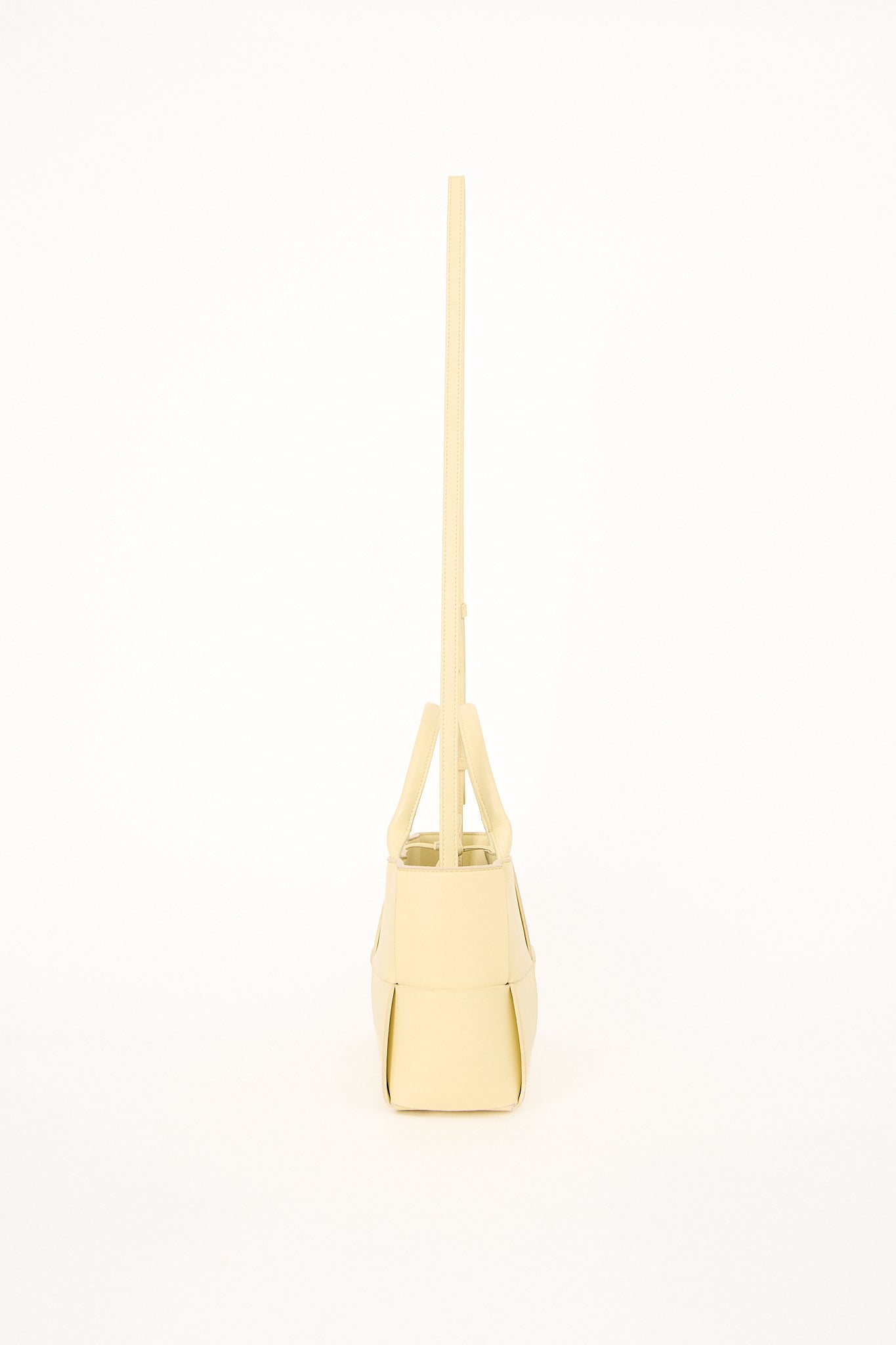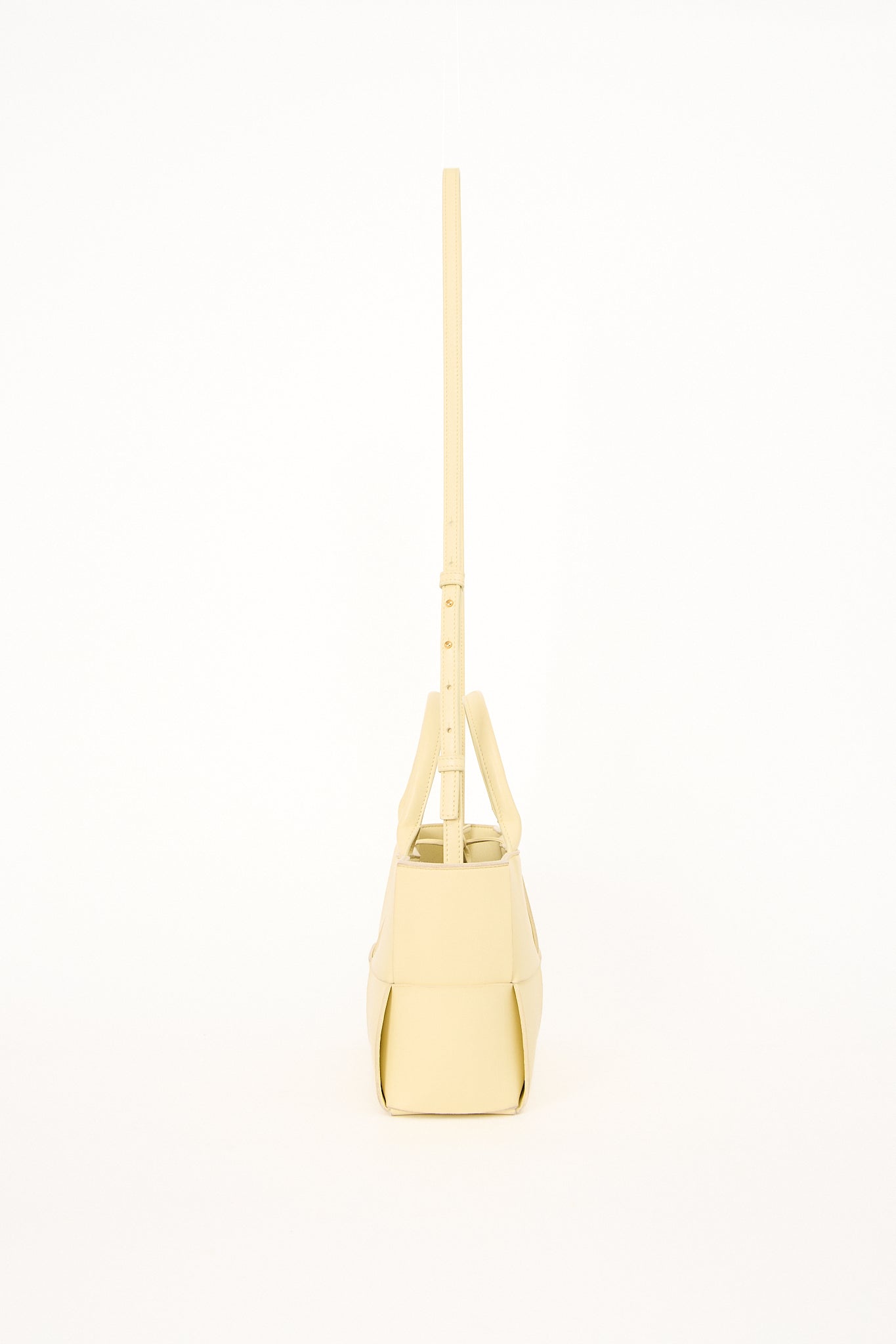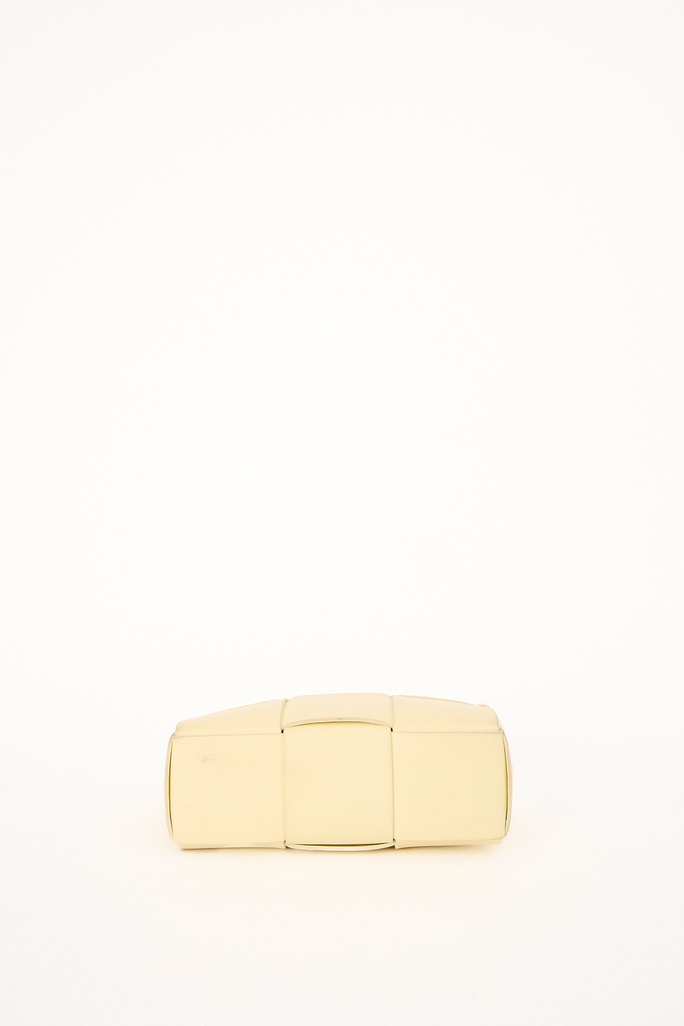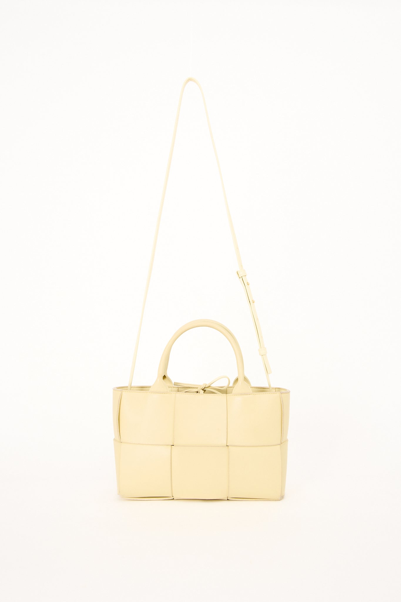 Bottega Veneta Arco Tote er et mesterværk i italiensk håndværk og moderne design. Tasken er udført i smørblødt kalveskind med husets karakteristiske Intrecciato-vævning, her fortolket i en stor, grafisk skala, der giver et minimalistisk og arkitektonisk udtryk. Den bløde gule nuance tilfører varme og friskhed til det strukturerede design, mens de runde håndtag og rummelige form gør tasken ideel til både arbejde, rejser og fritid. Indvendigt afslører den en luksuriøs, uforet konstruktion, der fremhæver læderets naturlige kvalitet.