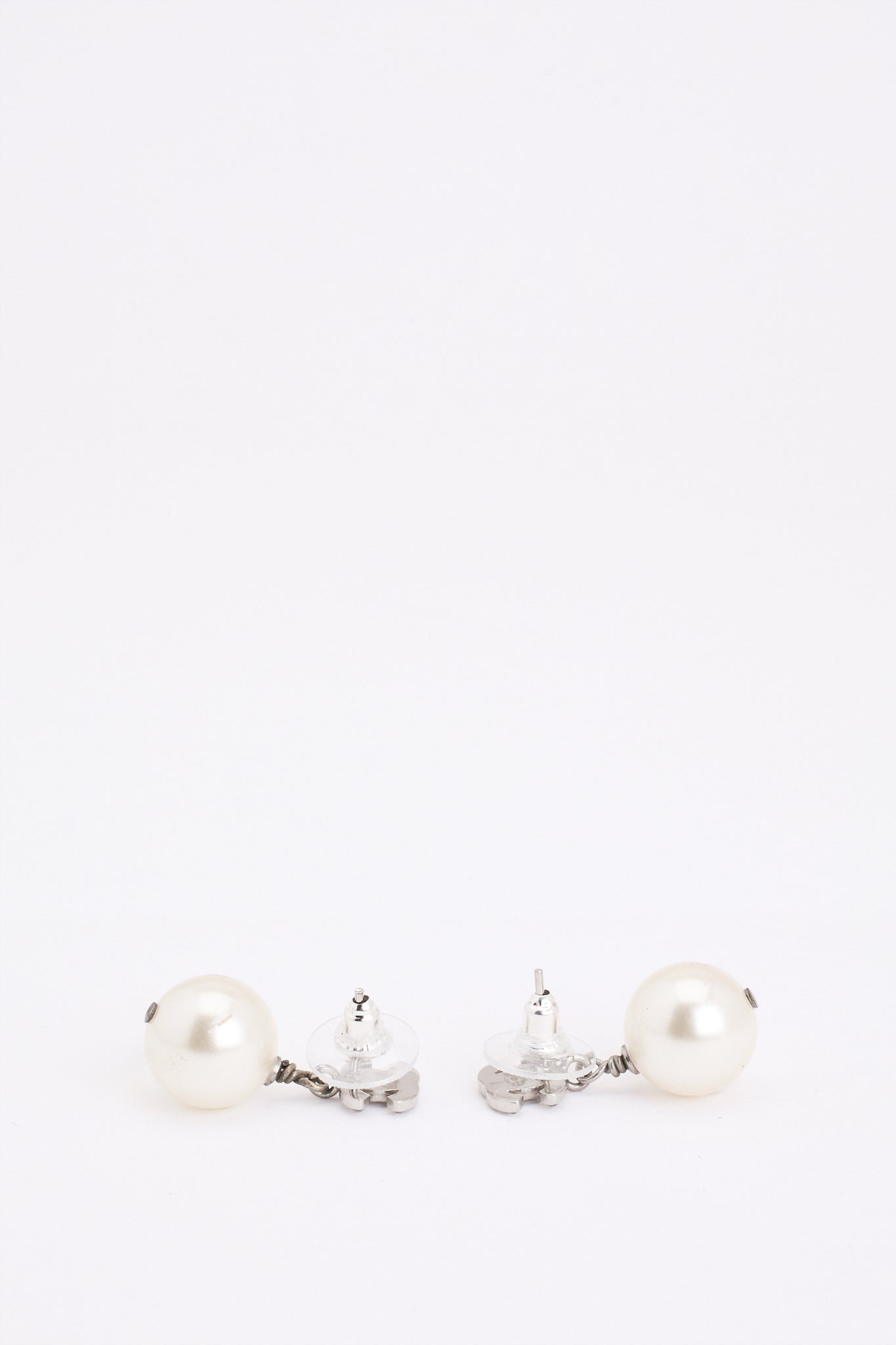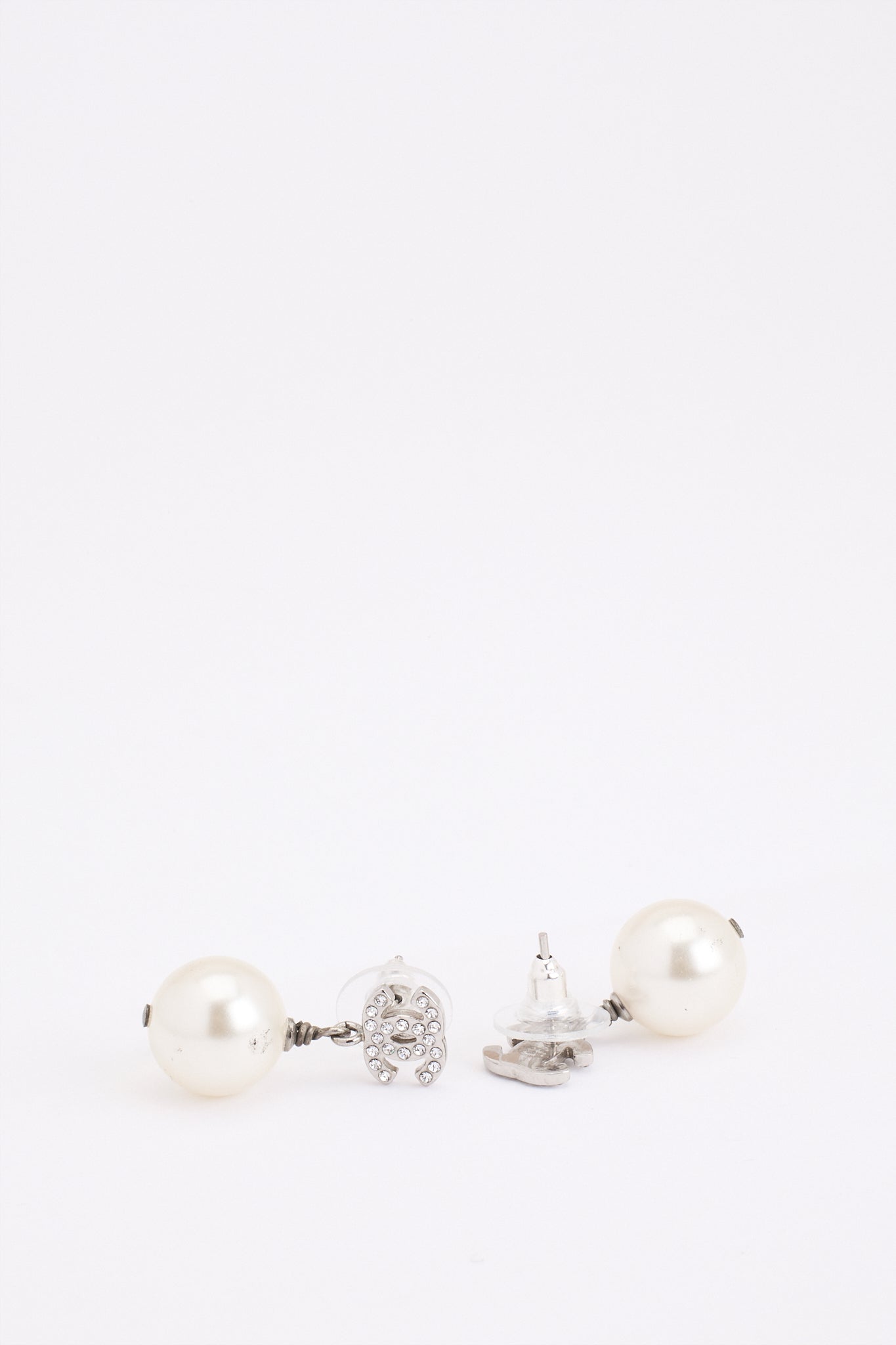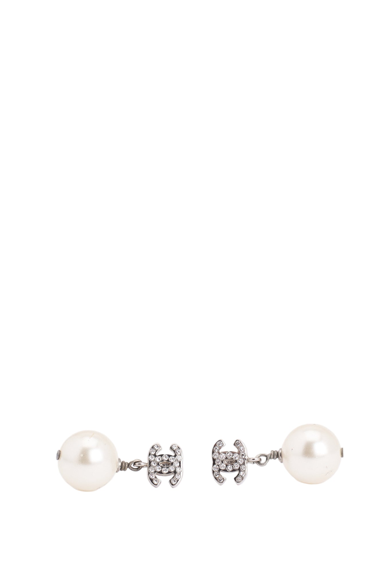 Disse Chanel-øreringe kombinerer det ikoniske CC-logo med en elegant, hængende imiteret perle – et design, der tydeligt afspejler Chanels klassiske og feminine univers. Perler har været en fast del af modehuset siden Coco Chanel gjorde dem til et signaturmateriale, og her får de et moderne twist i samspil med det enkle logo. Øreringene er perfekte til både hverdagslooks, hvor de giver et raffineret touch, og til festlige anledninger, hvor de tilfører et luksuriøst, tidløst Chanel-udtryk.