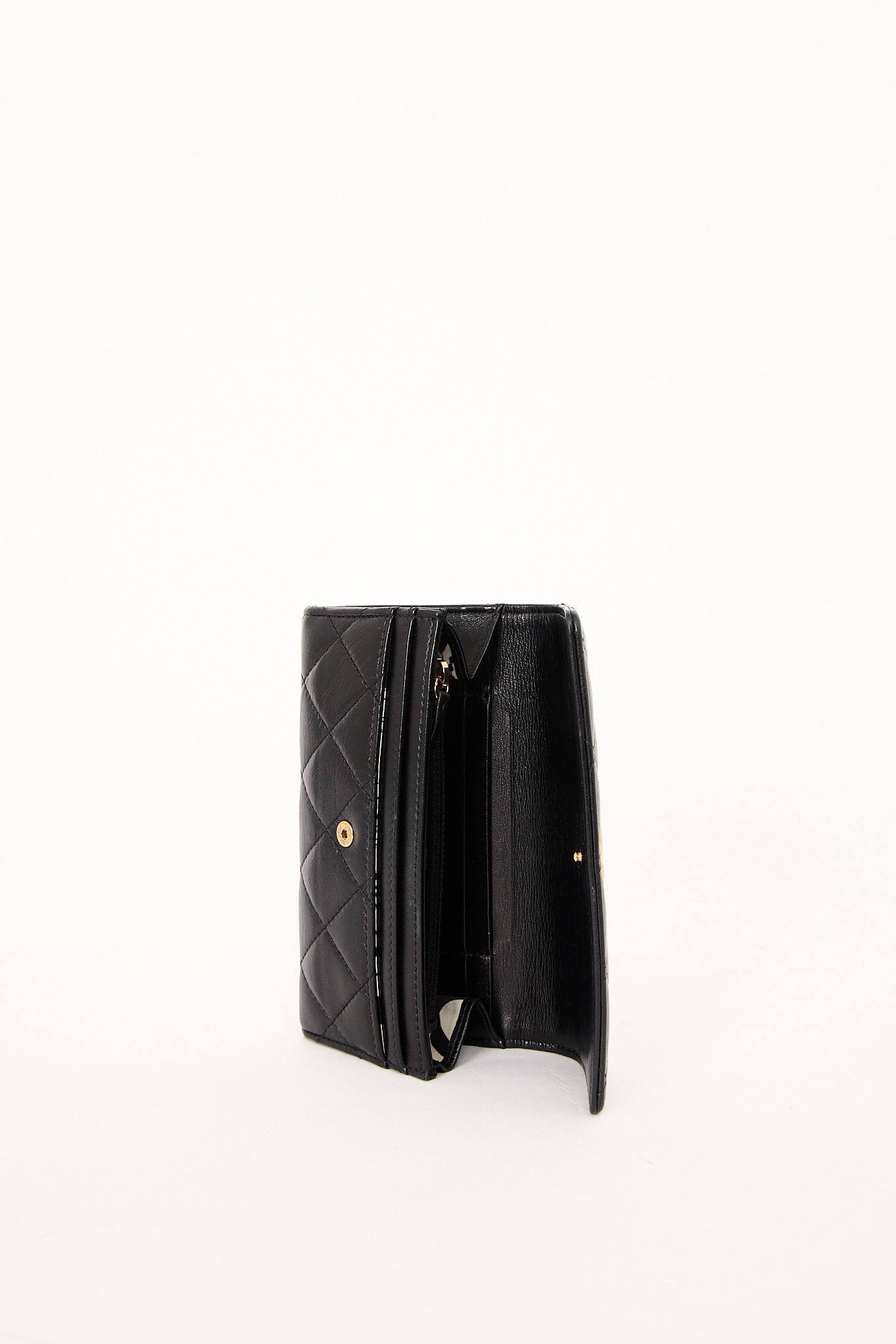 Smuk Chanel pung i det ikoniske quiltede lammeskind med klassisk CC-logo i guld. En elegant og praktisk pung med plads til kort, mønter og sedler. Den perfekte tilføjelse til enhver Chanel-samling og ideel til både hverdag og aftenbrug.
