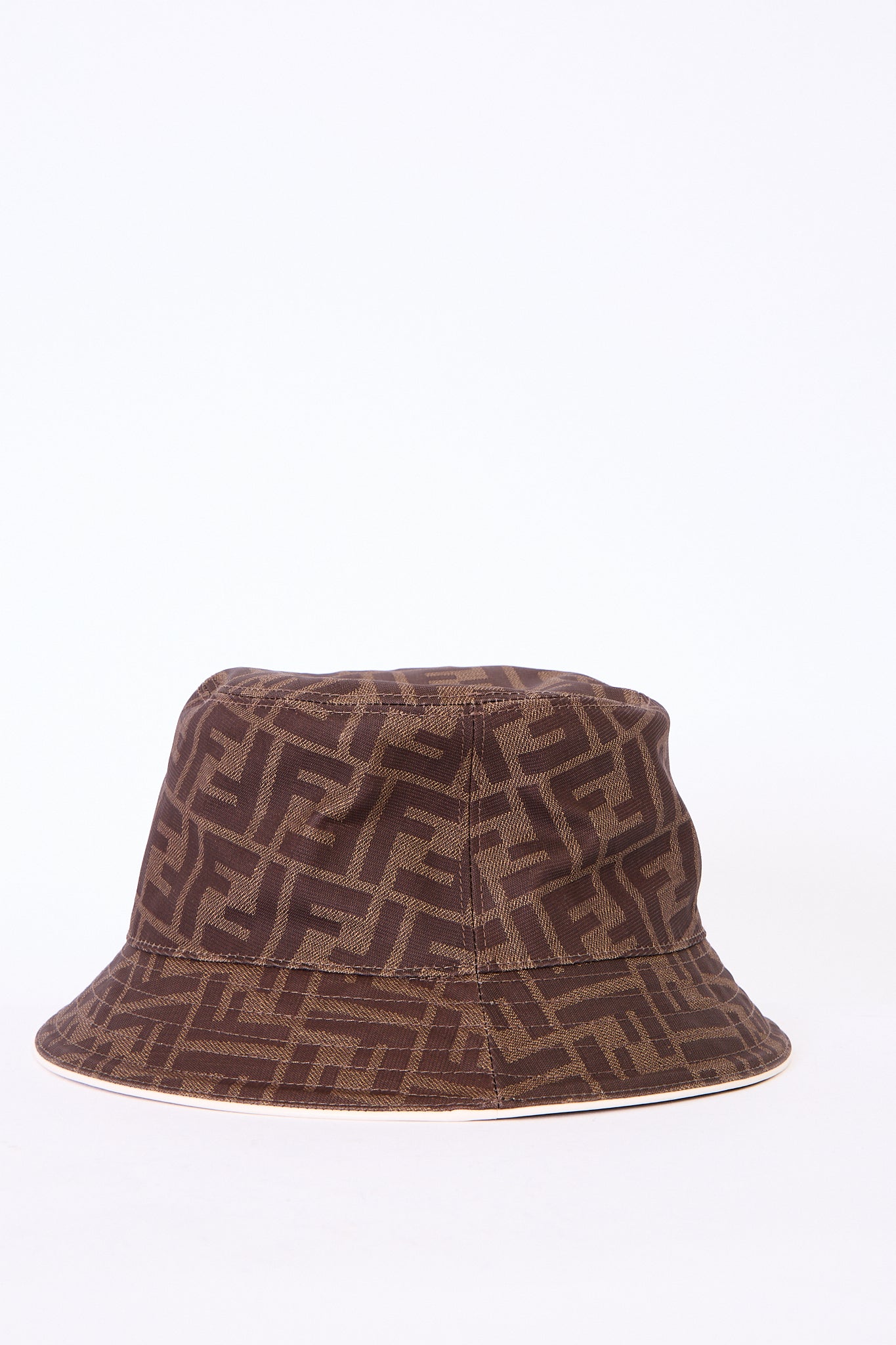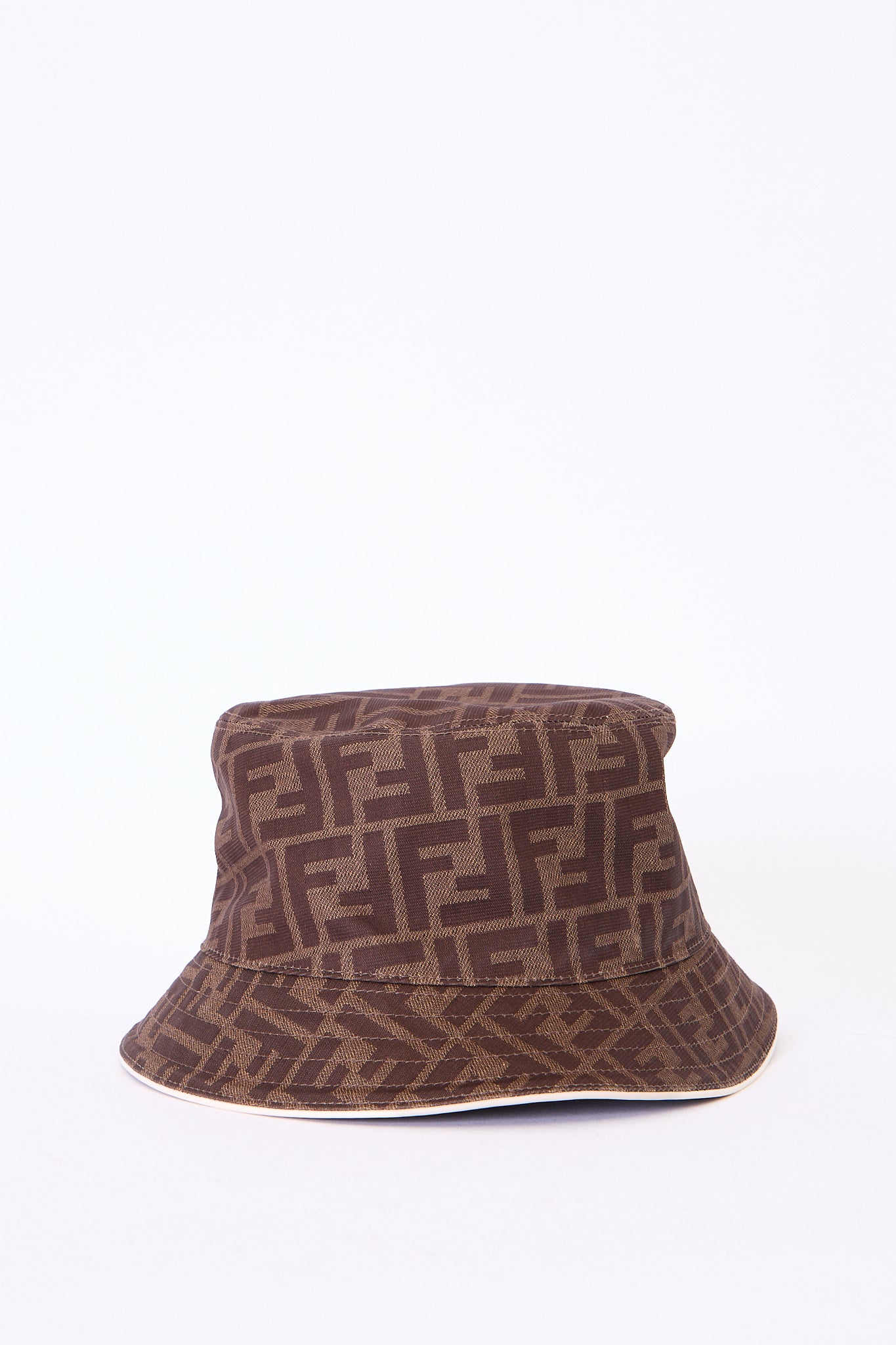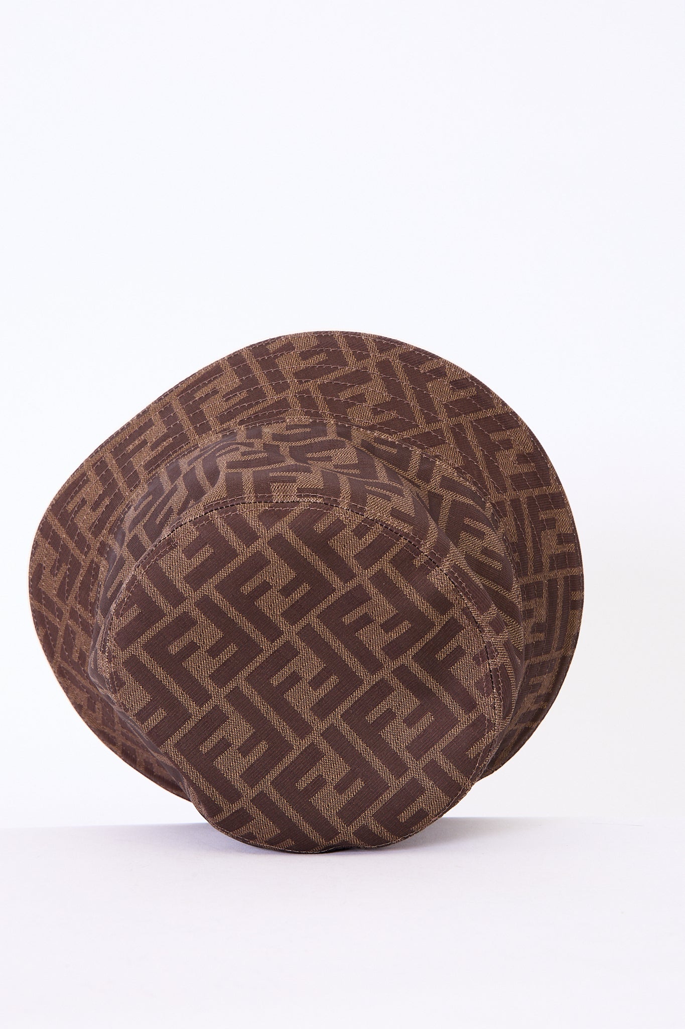 Den klassiske Fendi bucket hat i jacquardvævet bomuldscanvas prydet med det ikoniske FF-monogram i brun og sort. Designet kombinerer luksus og streetwear og er perfekt som både sommer- og overgangsaccessory. Let, struktureret og tidløs - et ægte Fendi-statement.