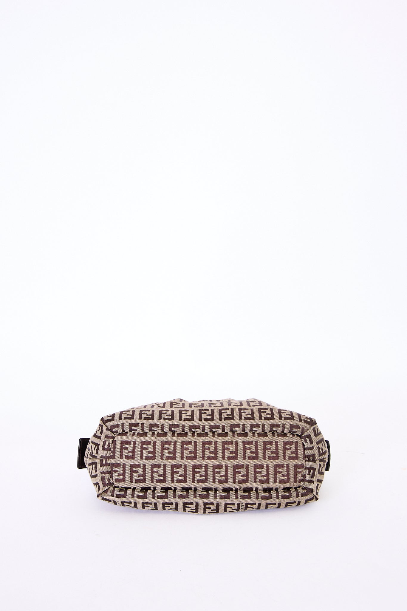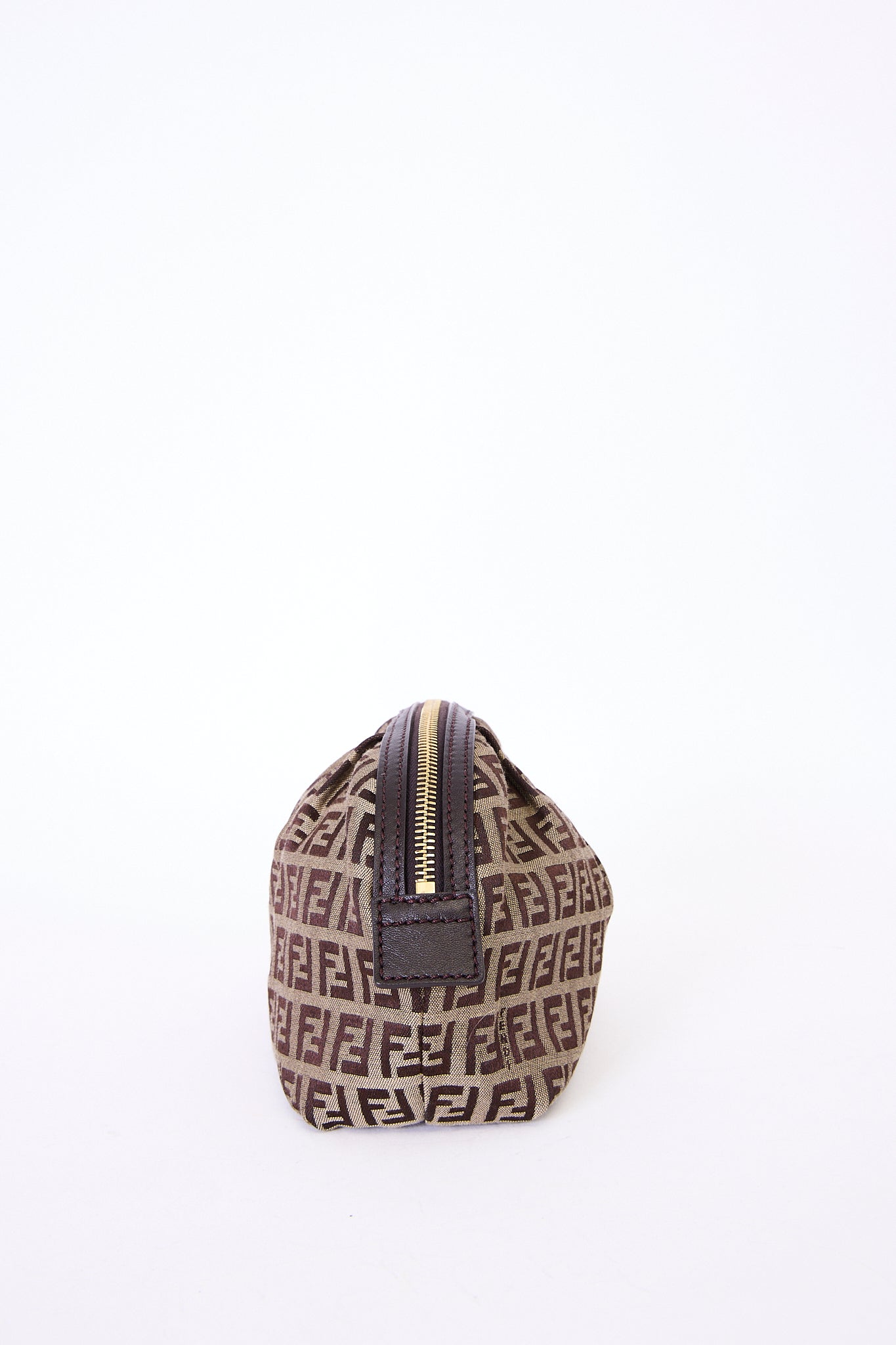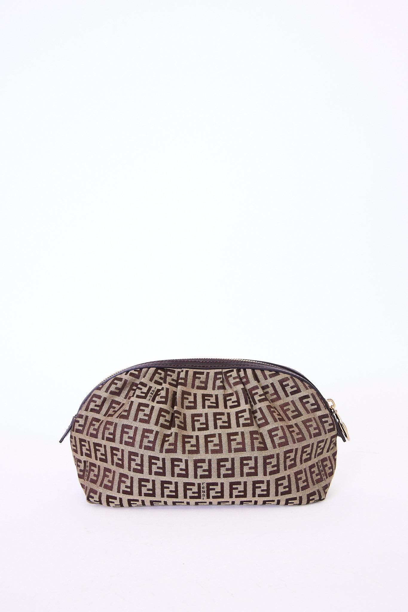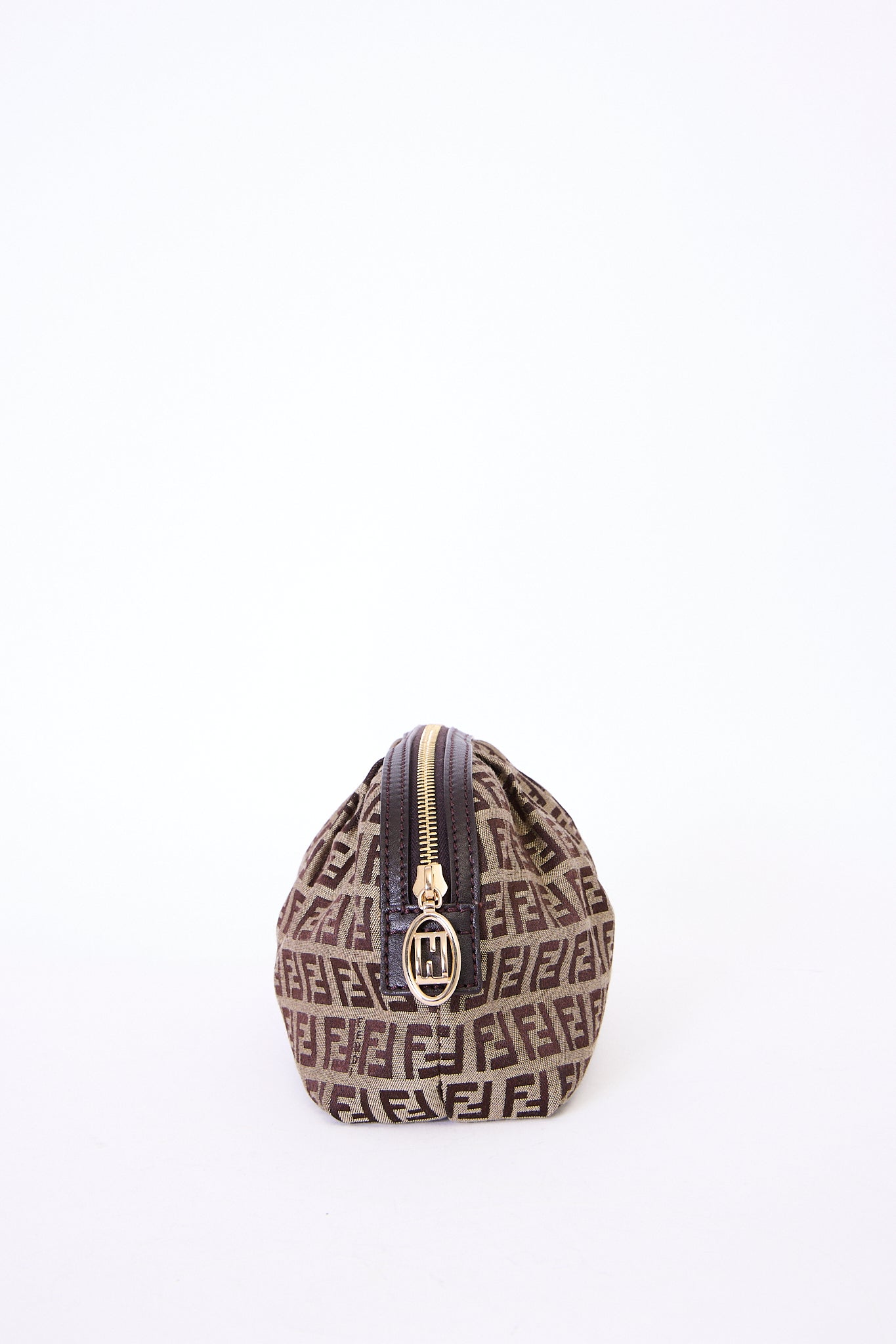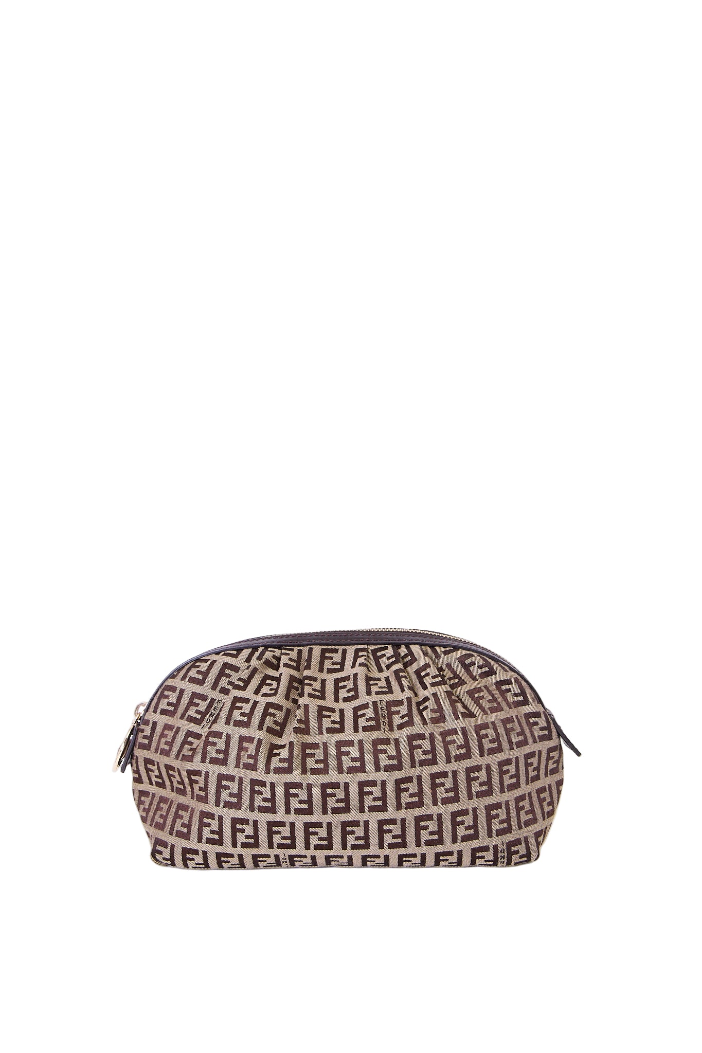 Opdag den klassiske FENDI Zucchino kosmetikpung, fremstillet i det ikoniske Zucchino canvas med det velkendte FF-monogram. Denne taske kombinerer stil og funktionalitet med læderdetaljer og en rummelig læderforing, der udstråler kvalitet. En sølvfarvet lynlås supplerer designets tidløse elegance. Passer godt med dine Fendi-tilbehør for et sofistikeret look.