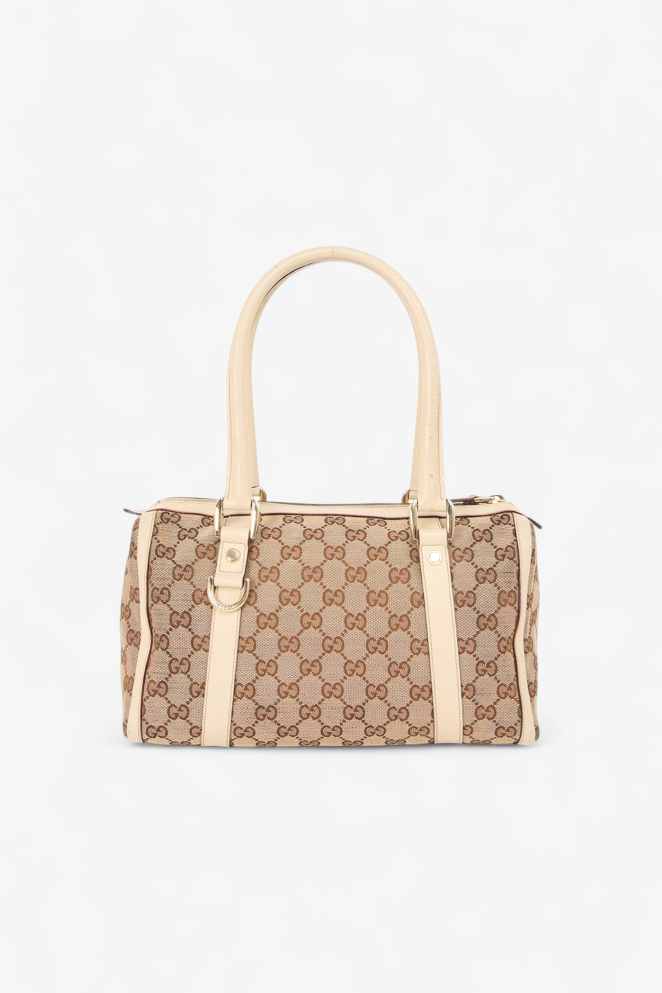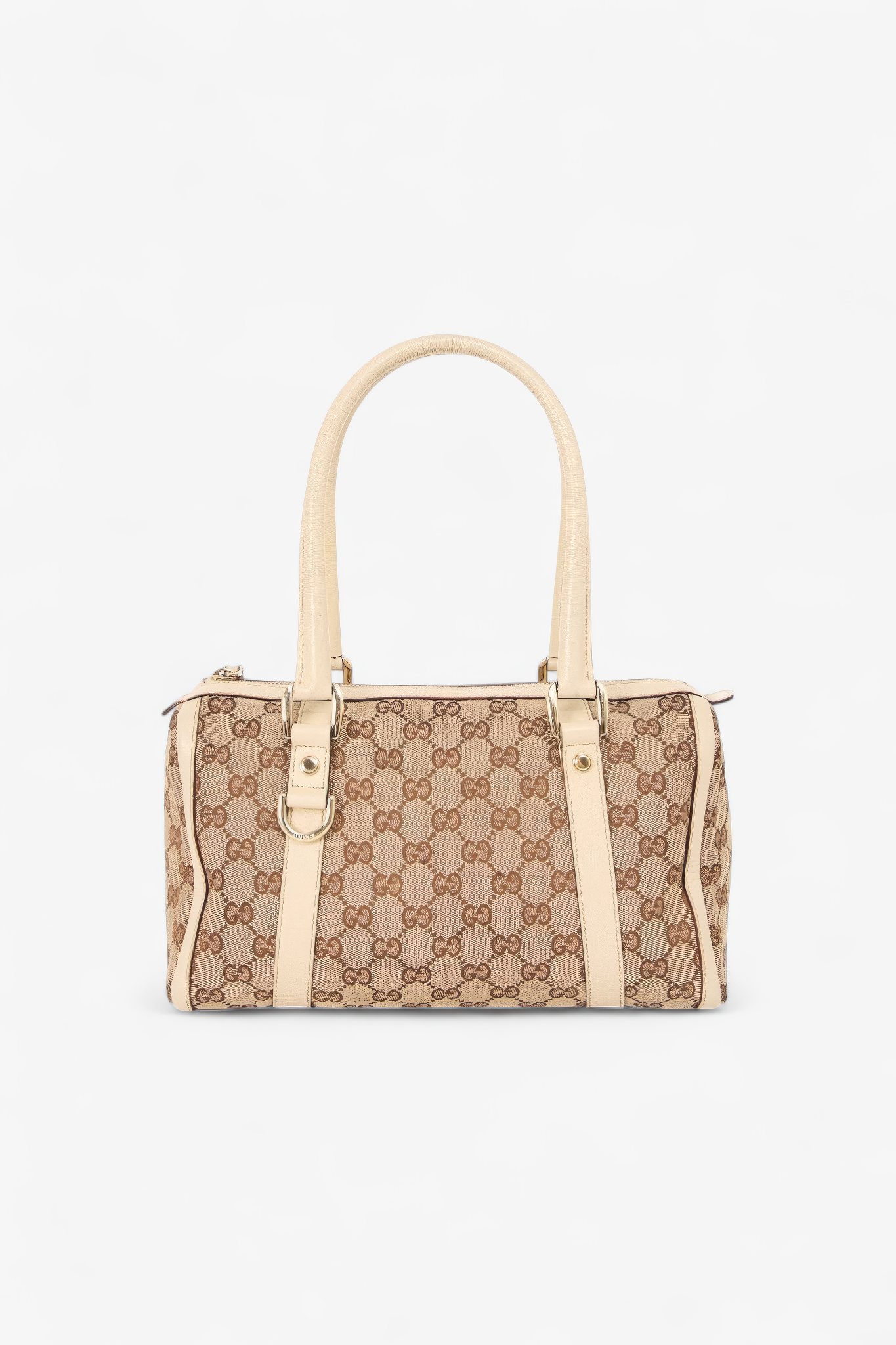 Denne Gucci Abbey er en elegant og rummelig model med det karakteristiske monogrammønster og lyse kontrastdetaljer. Den strukturerede silhuet og dobbelte hanke giver et klassisk og velafbalanceret udtryk, mens størrelsen gør den ideel til både arbejde og hverdagsbrug. En tidløs taske med et stilrent og sofistikeret design.