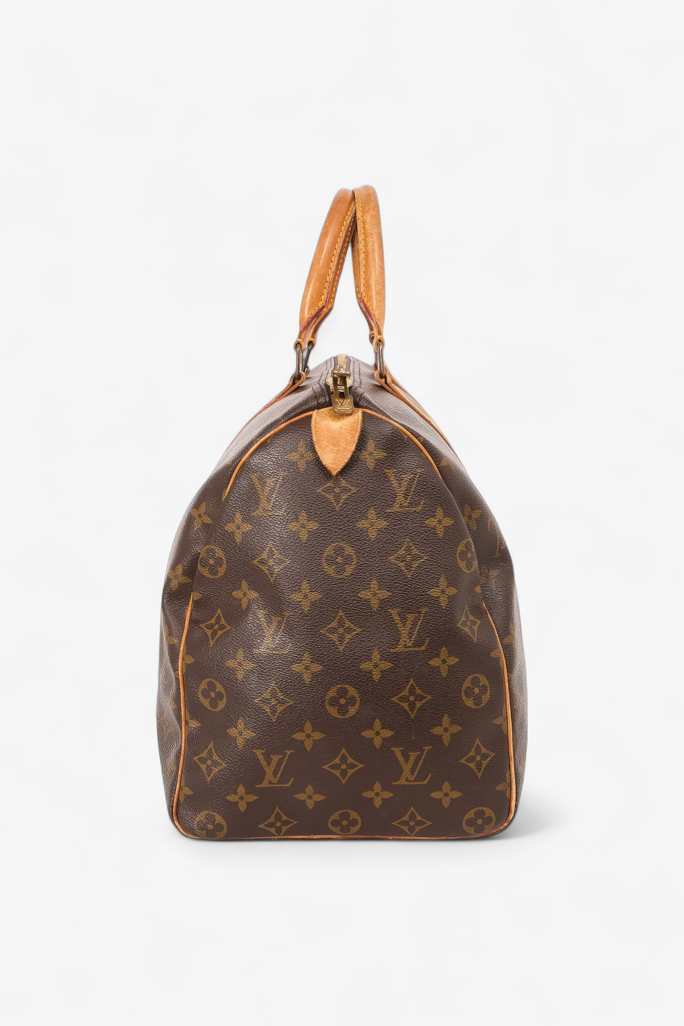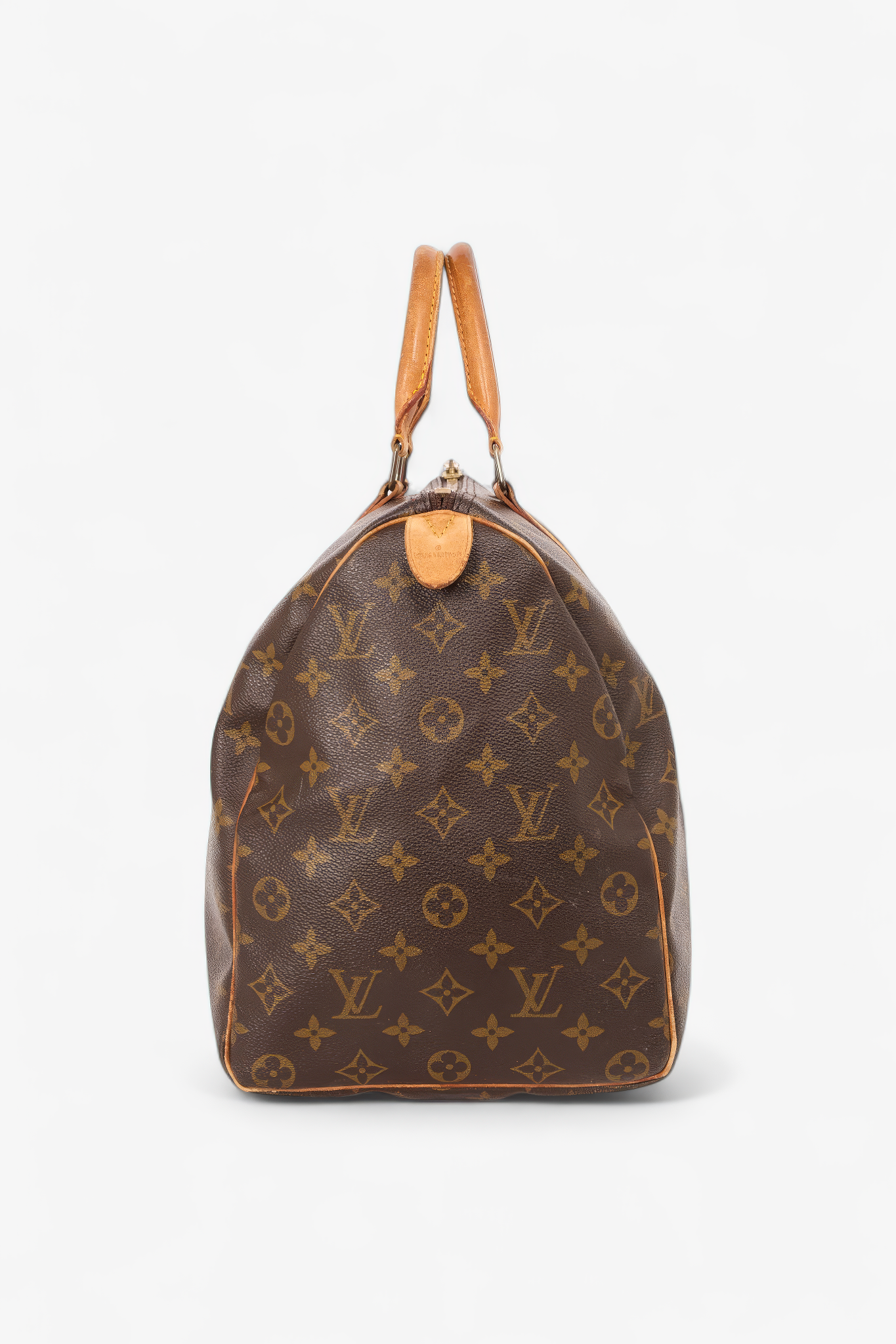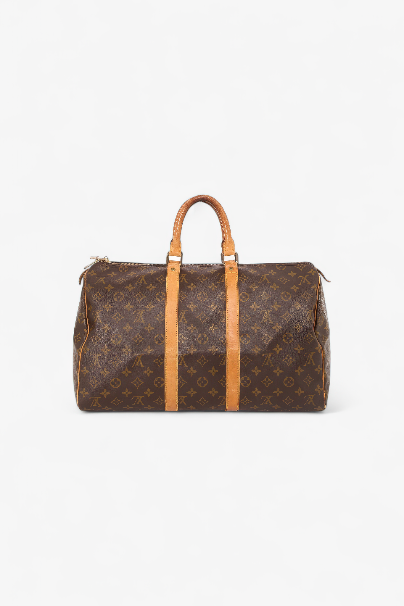 Ikonisk Louis Vuitton Keepall 45 i det tidløse Monogram Canvas med naturlige vachetta-læderdetaljer. Modellen er en af LV’s mest eftertragtede rejsetasker og fungerer perfekt som weekendtaske, håndbagage eller som stilren carry-all til hverdagsbrug. Tasken har de karakteristiske læderremme hele vejen rundt, dobbelt lynlåslukning og et klassisk, struktureret udtryk, der holder sæson efter sæson.
