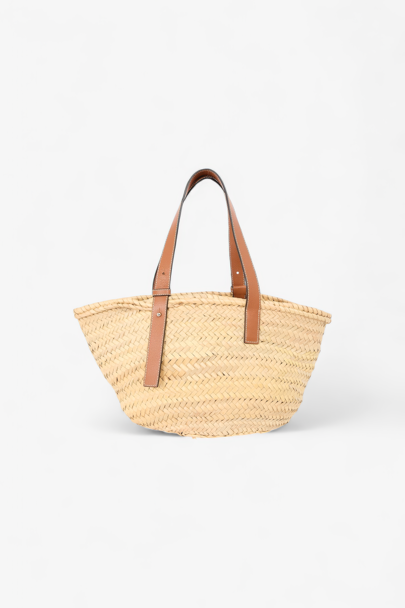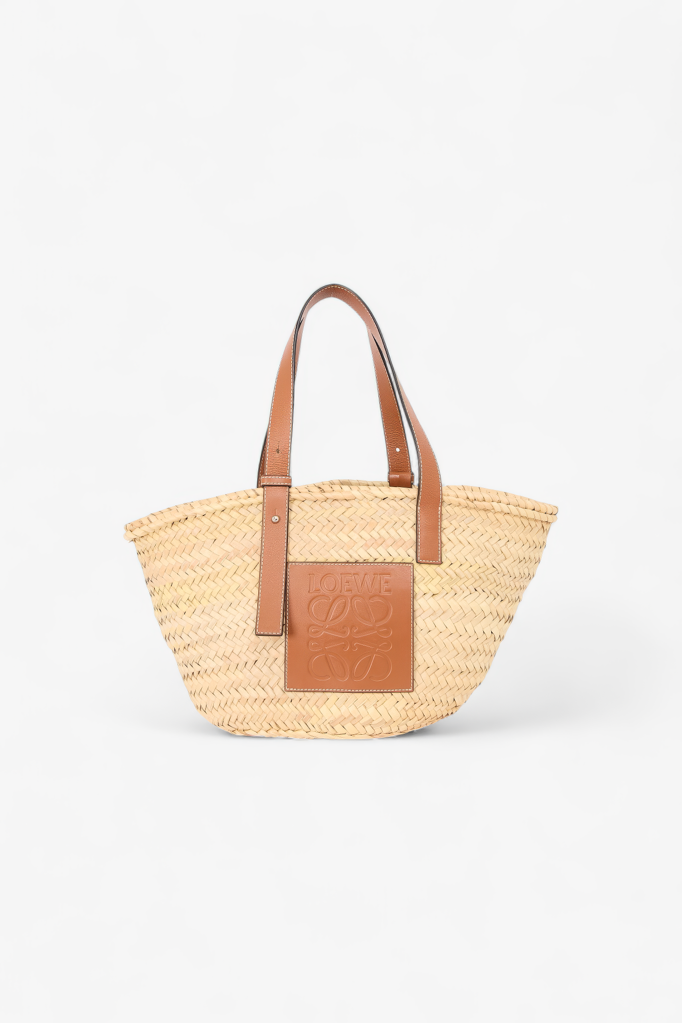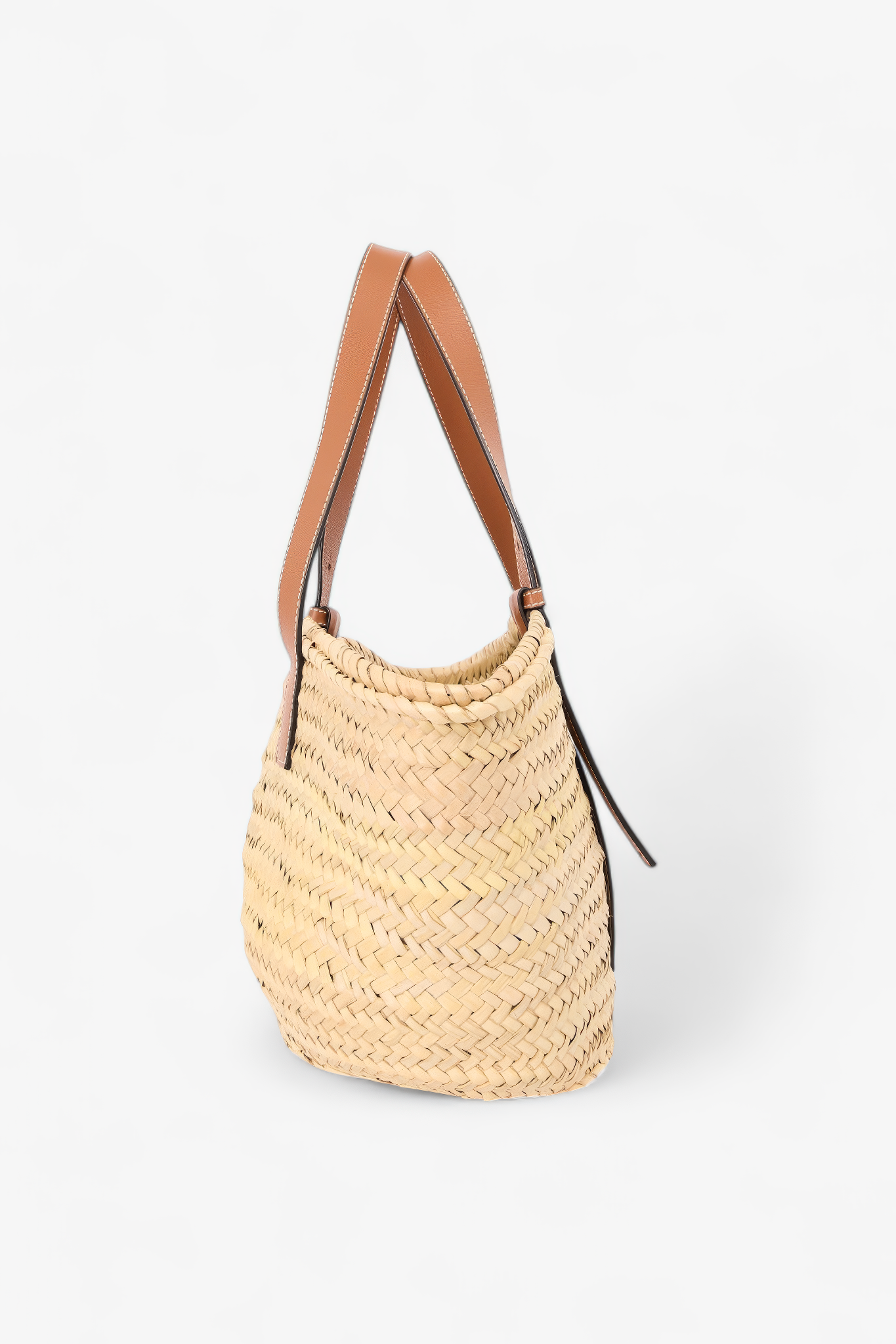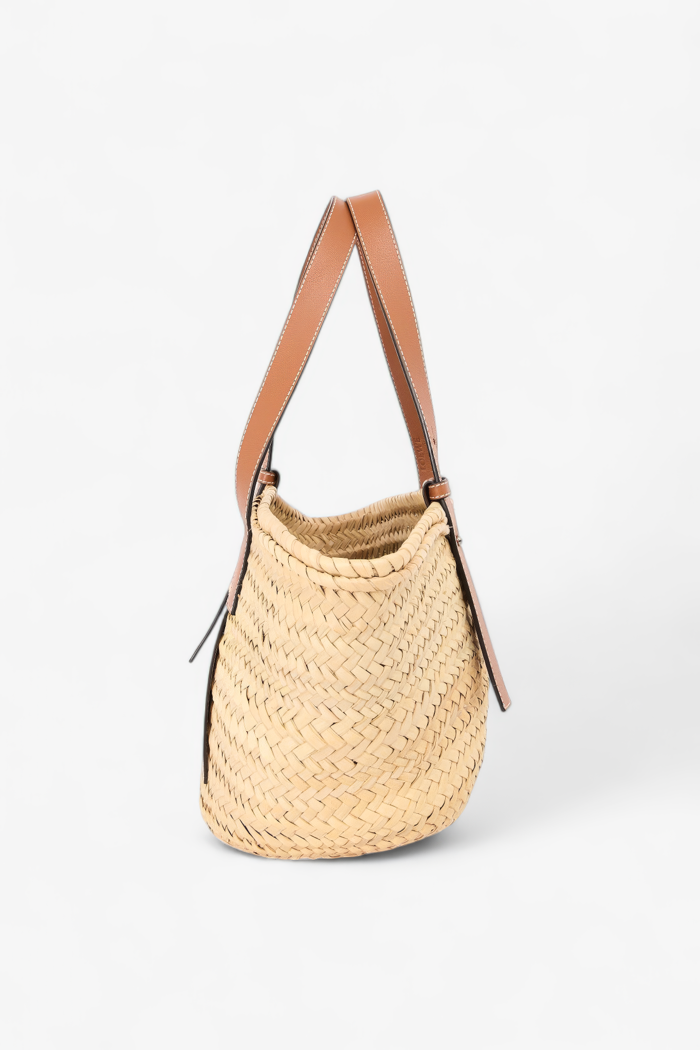 Den ikoniske Loewe Raffia Anagram er et moderne take på den klassiske fletkurv og et must-have til både sommer og hverdagsbrug. Tasken er håndflettet i naturlig palmeblad med justerbare hanke i blødt kalveskind og den velkendte Anagram-logo-patch foran. Hver taske er unik, da den er håndlavet i Spanien – et perfekt mix af håndværk og luksus i Loewe’s ånd.