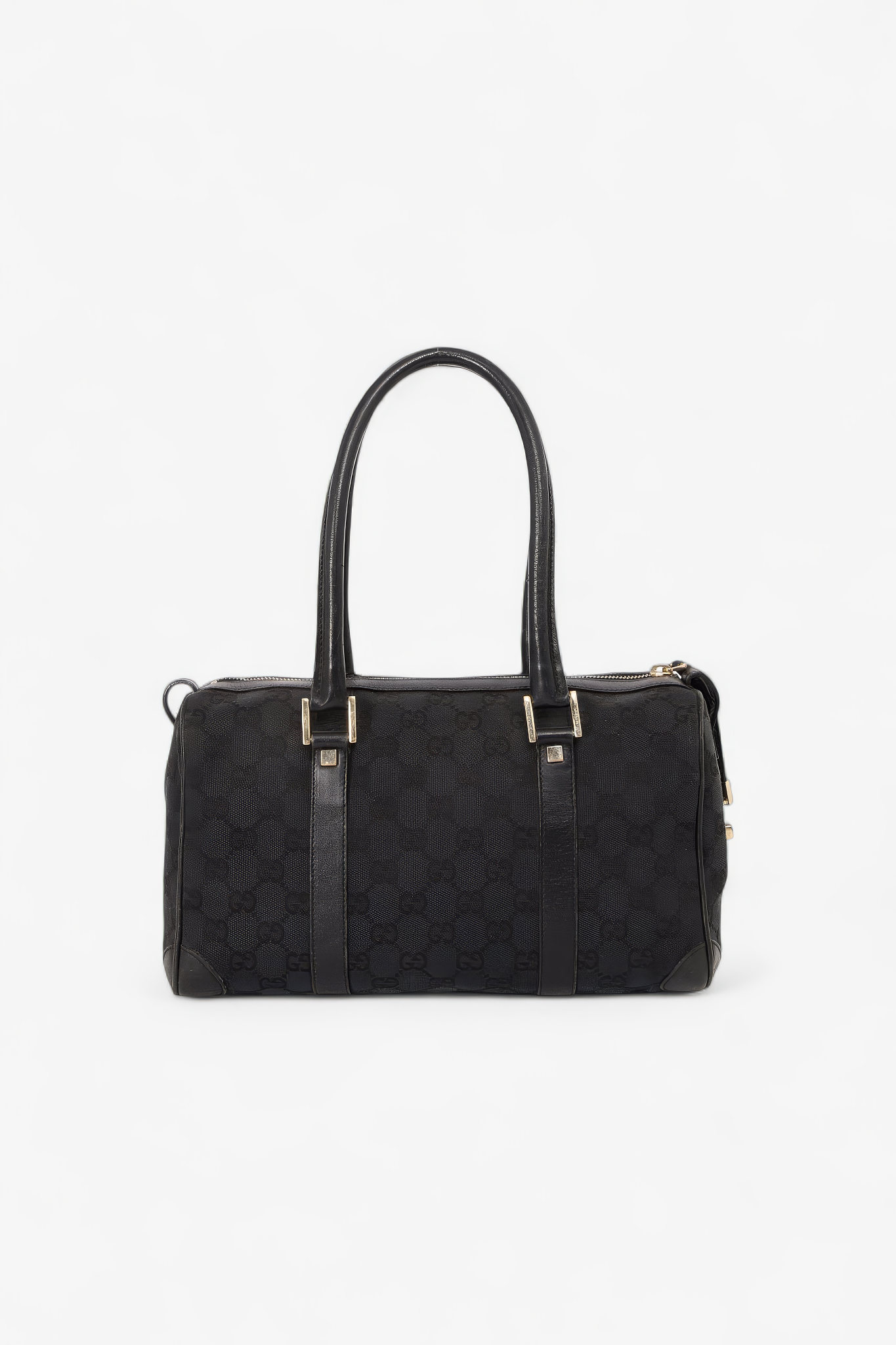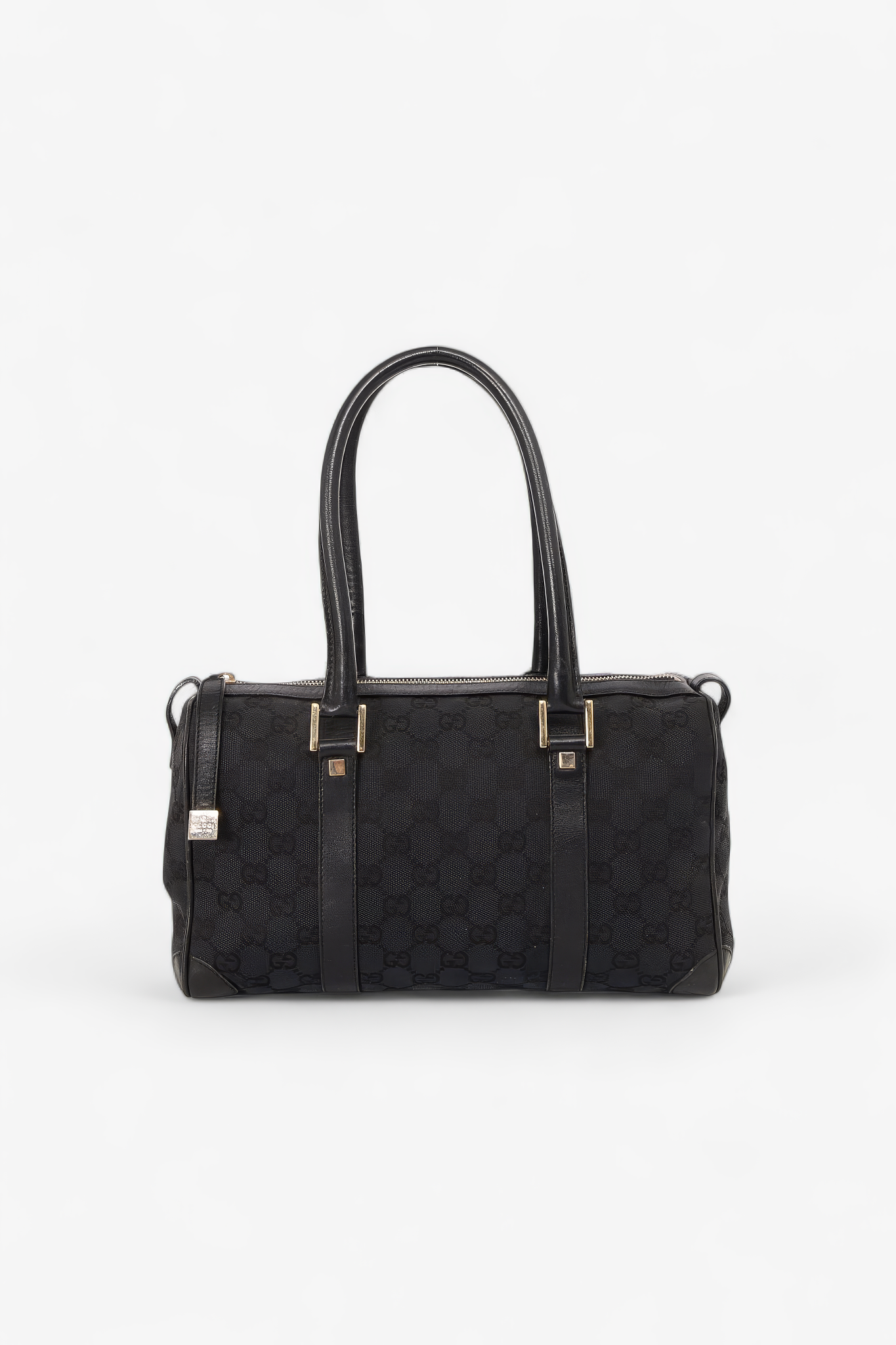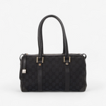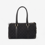 Gucci Boston taske i sort GG-canvas med sorte læderdetaljer og two-tone hardware. Den klassiske “bowling/boston” silhuet er rummelig og super anvendelig som hverdagstaske med plads til alt det nødvendige, og lynlåslukningen gør den praktisk og sikker på farten. En tidløs Gucci-model med et diskret logolook, der fungerer lige godt til work, weekend og rejser.