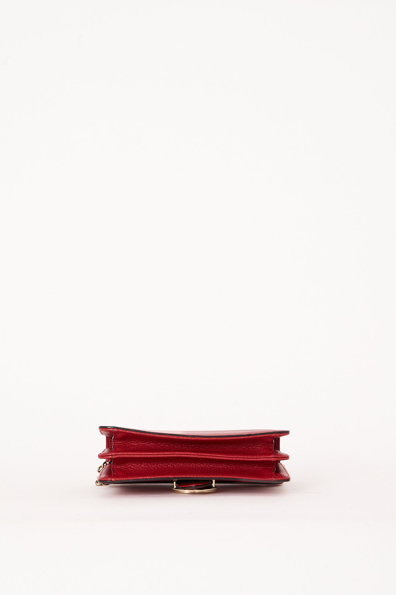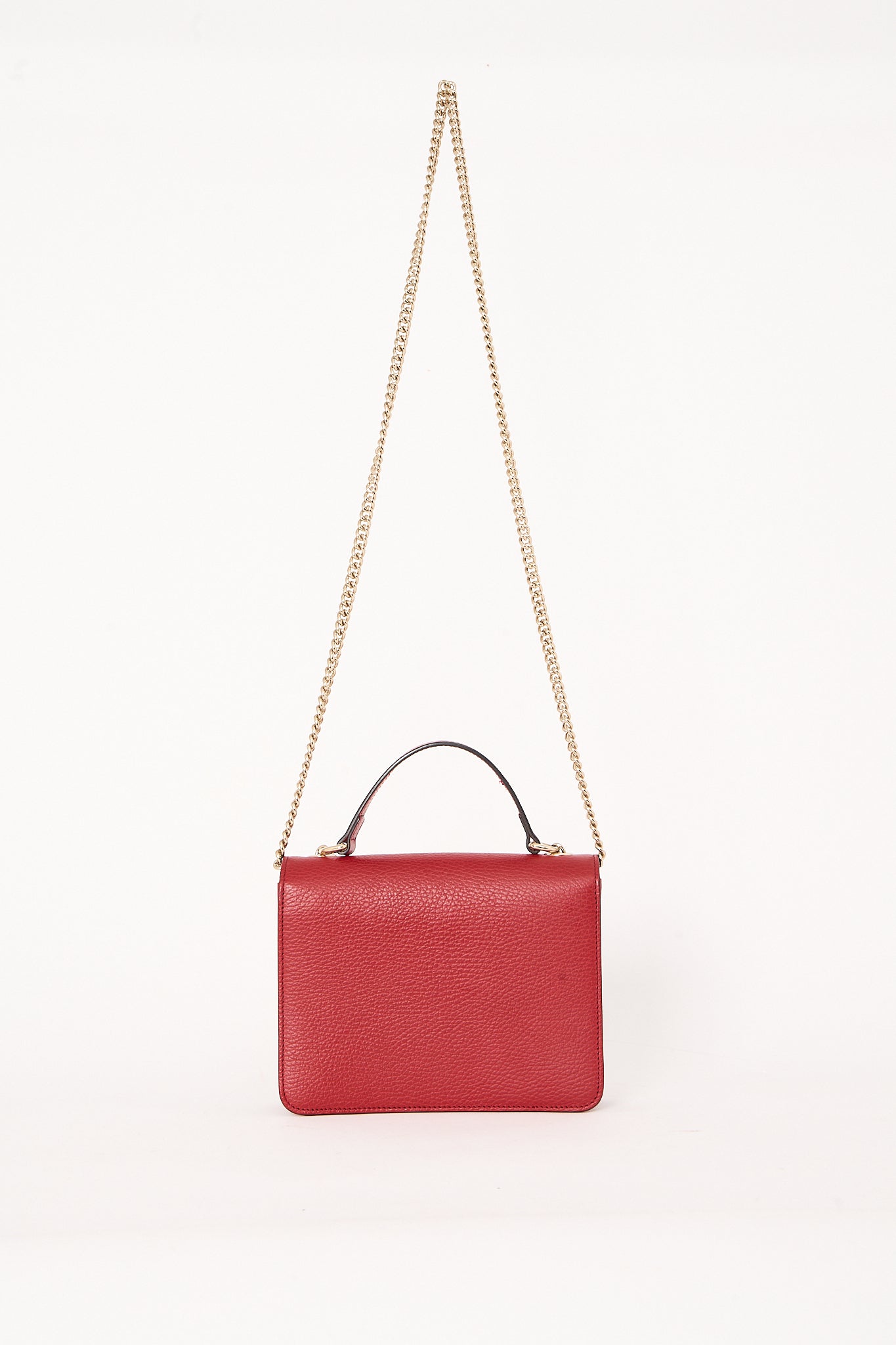 Denne Gucci taske i rød læder er et elegant statement-piece, der kombinerer et klassisk, struktureret design med den ikoniske runde GG-lås. Den dybe røde farve giver et eksklusivt og moderne udtryk, mens gulddetaljerne tilfører et varmt, luksuriøst finish. Tasken kan styles både til hverdagslooks med denim og strik eller som et farverigt element til kjoler og mere polerede outfits. En stilren taske, der giver ethvert look et tydeligt Gucci-touch.
