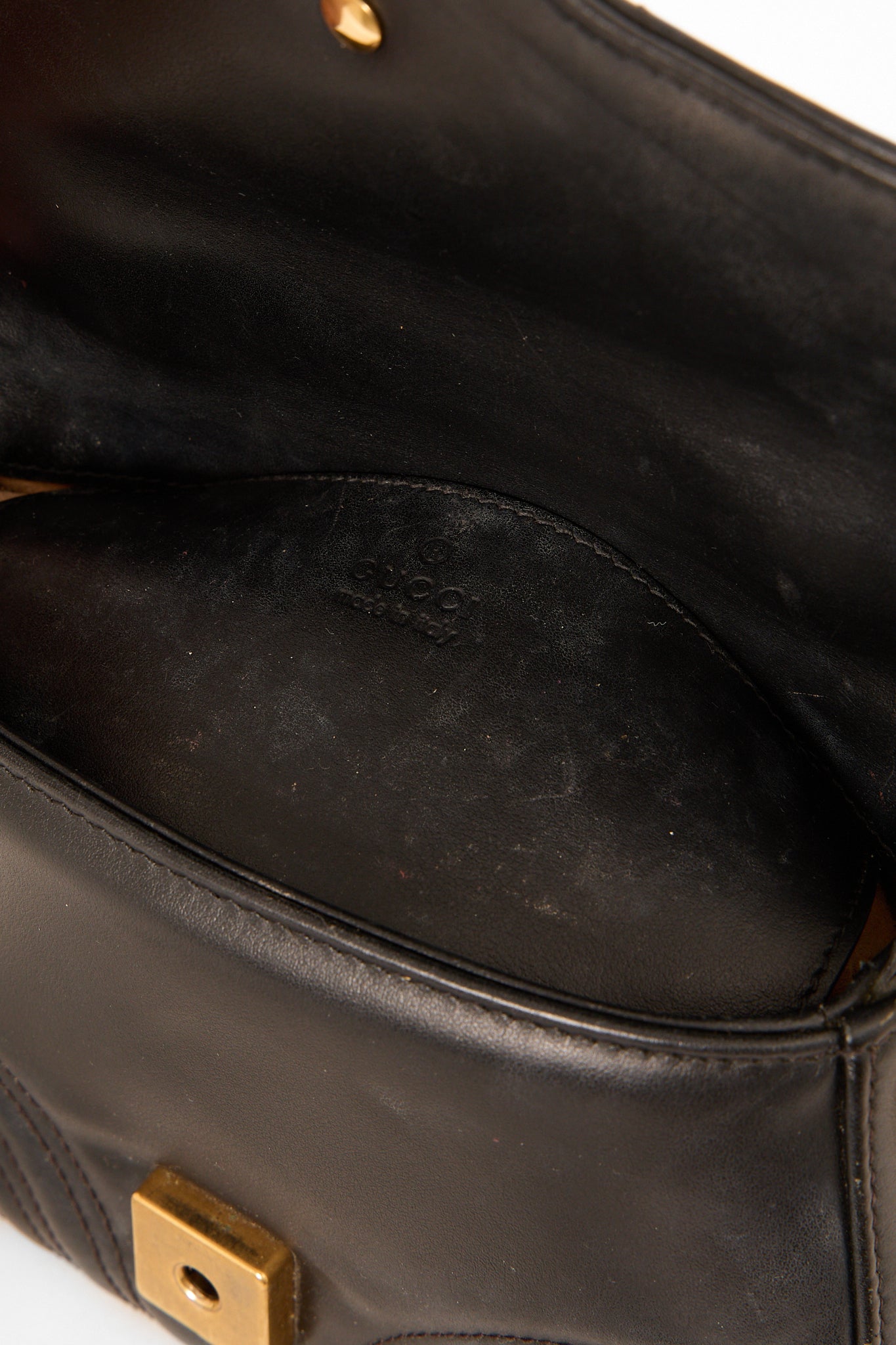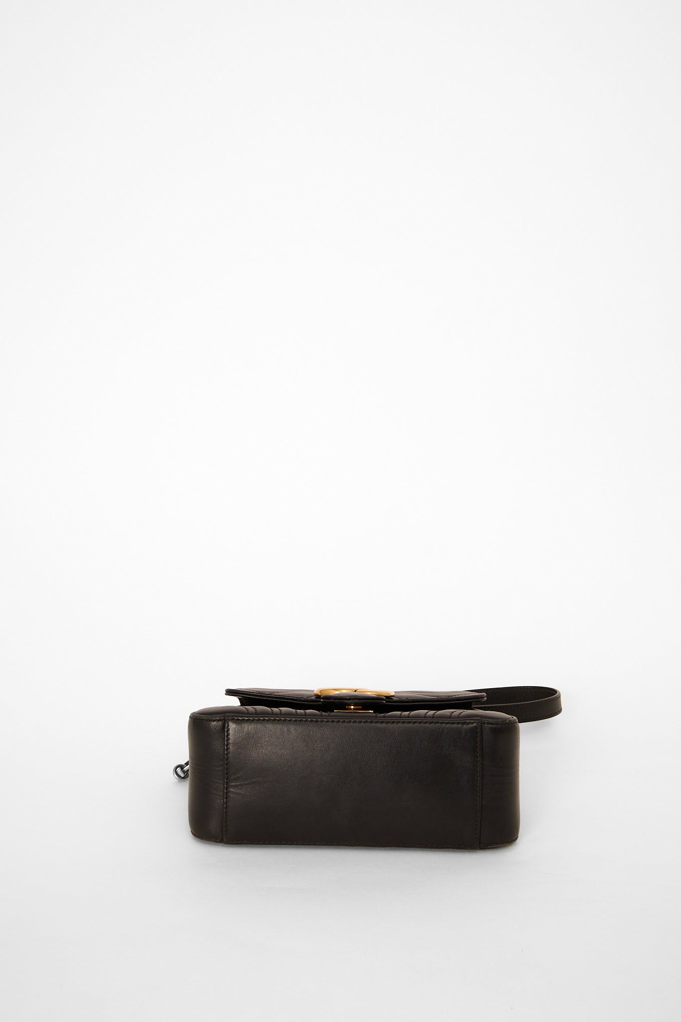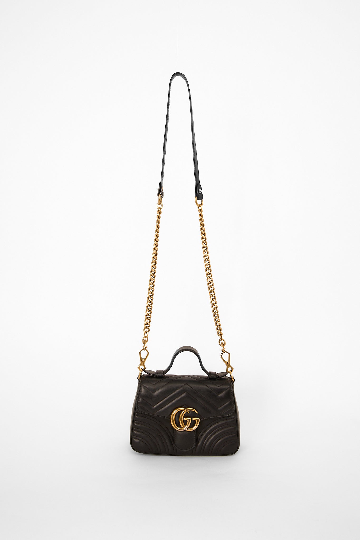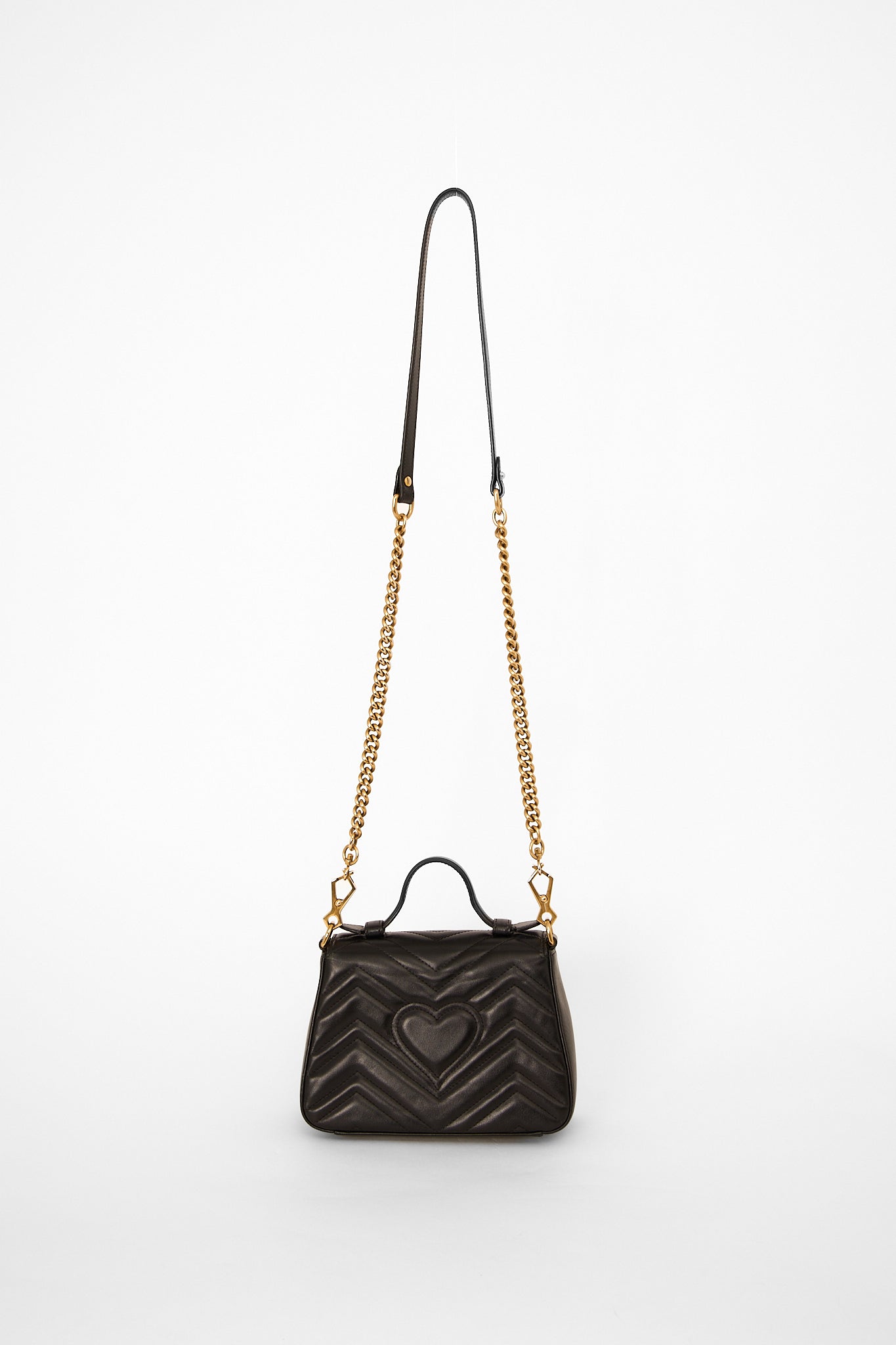 Oplev luksus med Gucci GG Marmont Top Handle, en elegant taske i quiltet matelassé chevron-læder. Taske har gyldne detaljer og det kendte dobbelt G-logo, der bringer et strejf af 70'ernes glamour ind i nutiden. Velegnet som en stilfuld følgesvend til både hverdag og festlige lejligheder. Passer godt med jeans og blazer for et komplet look.