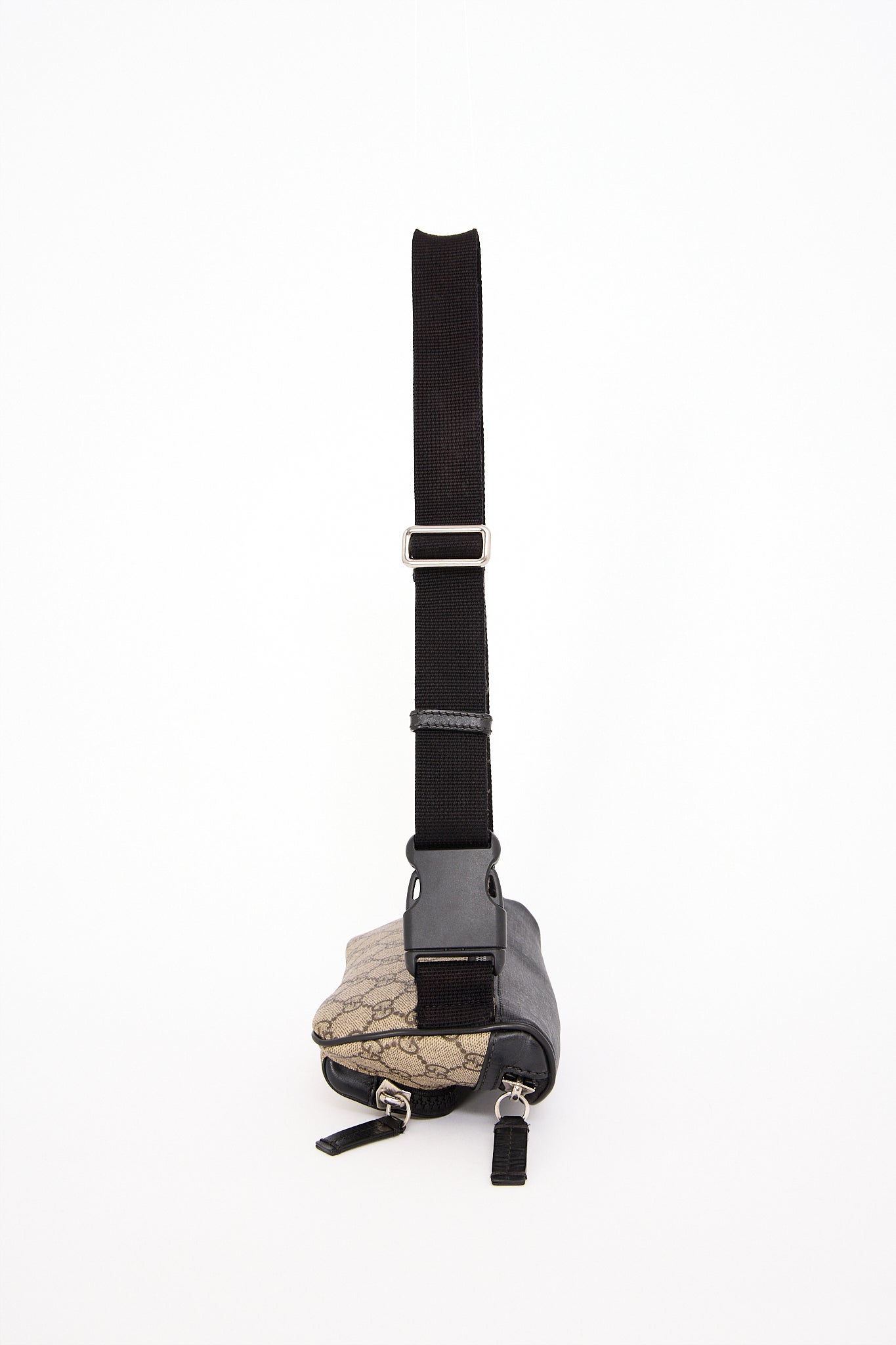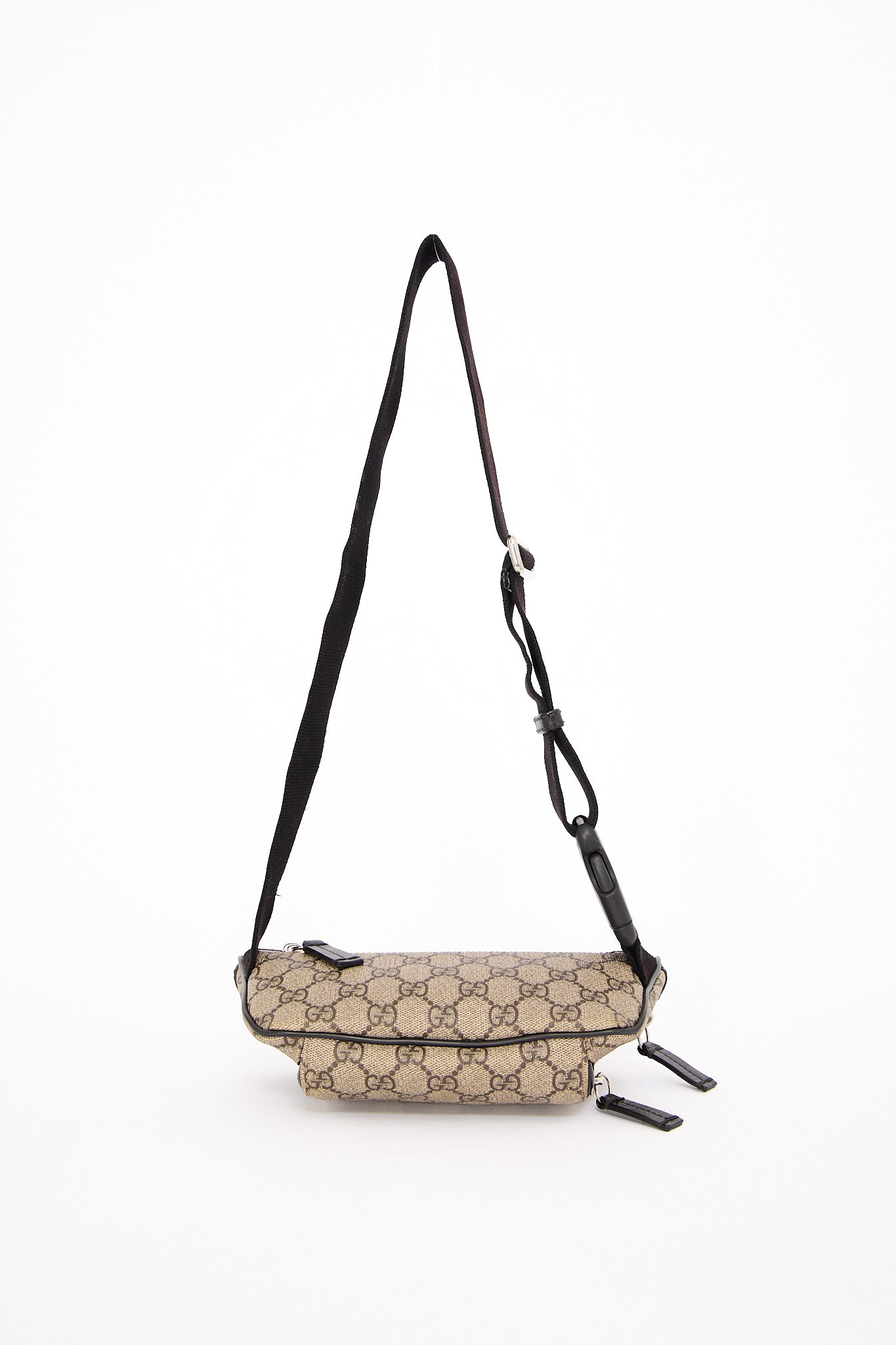 Den klassiske Gucci GG Supreme bæltetaske er et ikonisk accessory, der kombinerer funktionalitet med luksus. Udført i det slidstærke GG Supreme-canvas, som er et signaturmateriale for huset Gucci, og detaljeret med sorte læderkanter og sølvfarvet hardware. Tasken har en sporty, men elegant silhuet, perfekt til både rejse, hverdagsbrug eller en cool streetstyle-look.