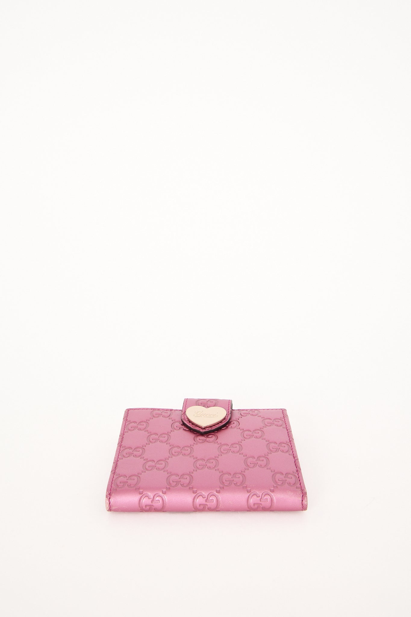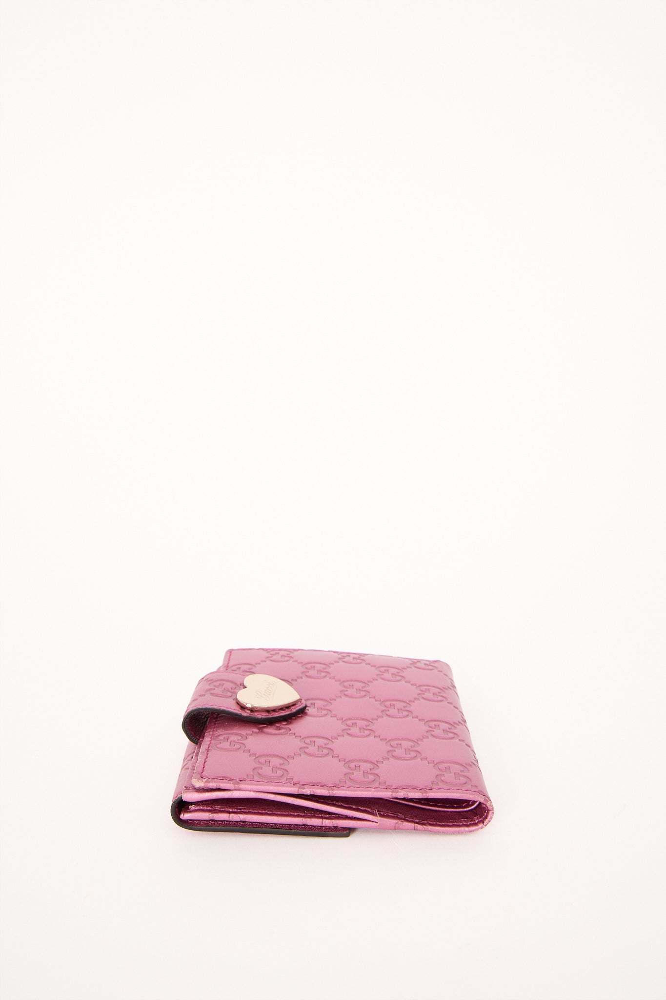 Gucci Guccissima Heart er en feminin klassiker med et strejf af vintage-charme. Fremstillet i præget Guccissima-læder i en smuk rosa nuance, kombinerer denne pung luksus og legesyge på ægte Gucci-manér. Det lille hjerteformede metalspænde med det indgraverede Gucci-logo tilføjer et romantisk og genkendeligt touch. Pungen rummer flere kortlommer og en møntlomme, hvilket gør den både praktisk og elegant. Den kompakte størrelse gør den ideel til hverdagsbrug, samtidig med at farven og detaljerne tilfører personlighed og varme.