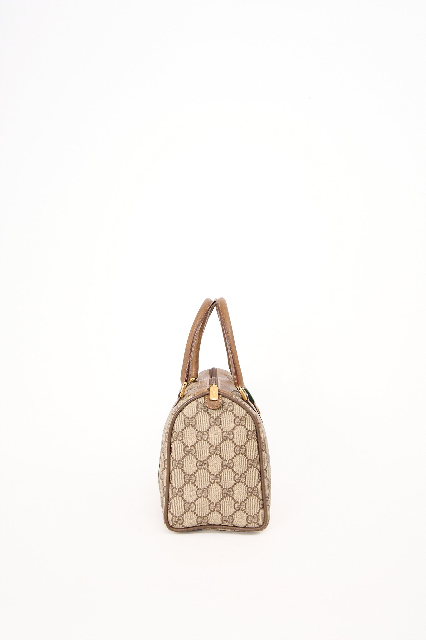 Klassisk Gucci Boston i det ikoniske GG Supreme Canvas med de velkendte grøn-røde webstriber og brune læderdetaljer. Tasken emmer af vintage charme og italiensk luksus med sin tidløse bowlingform, der har gjort modellen til en favorit gennem årtier. Et alsidigt design, perfekt til både hverdagsbrug og rejser, hvor du ønsker et elegant, men funktionelt statement piece.