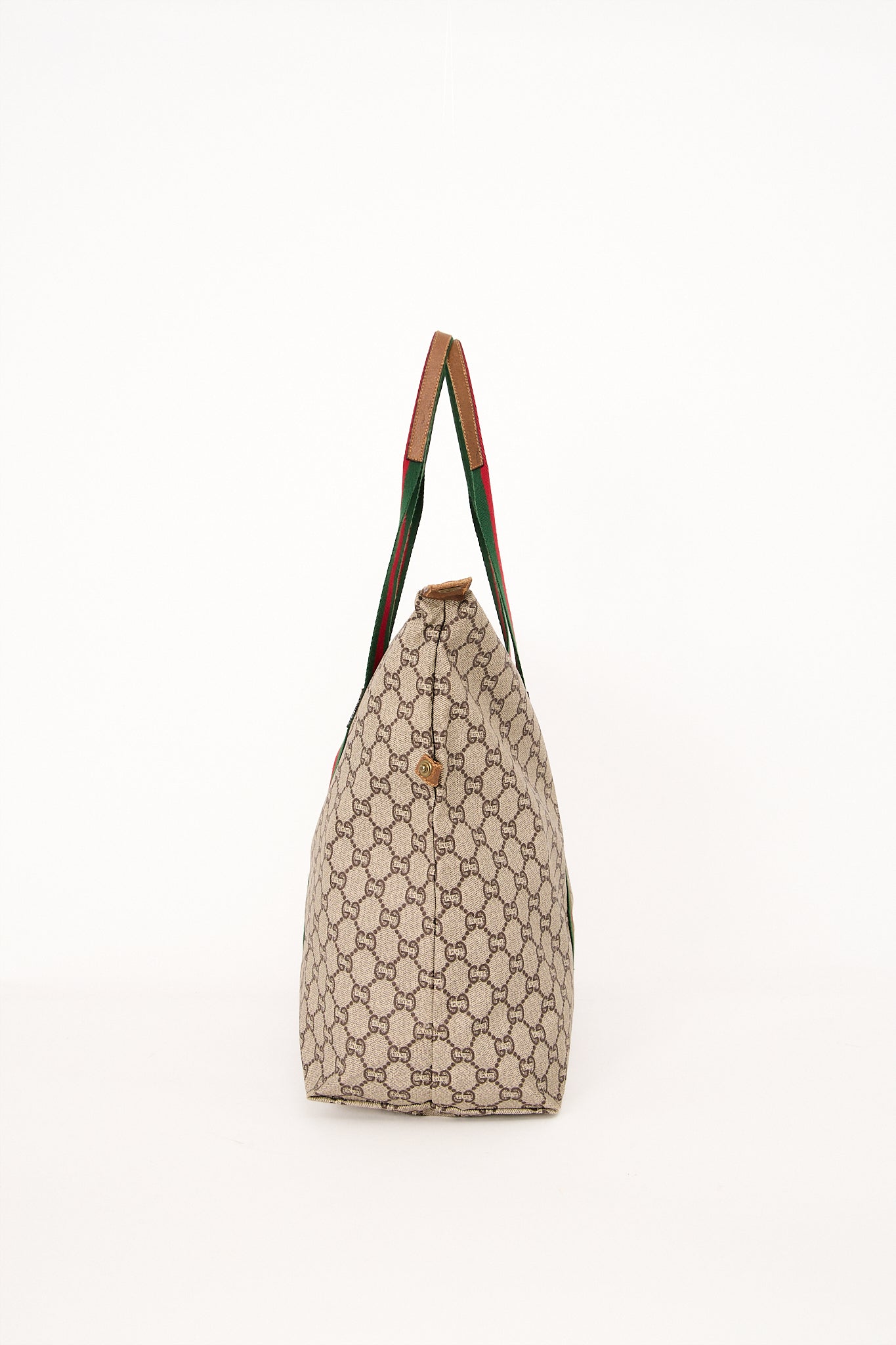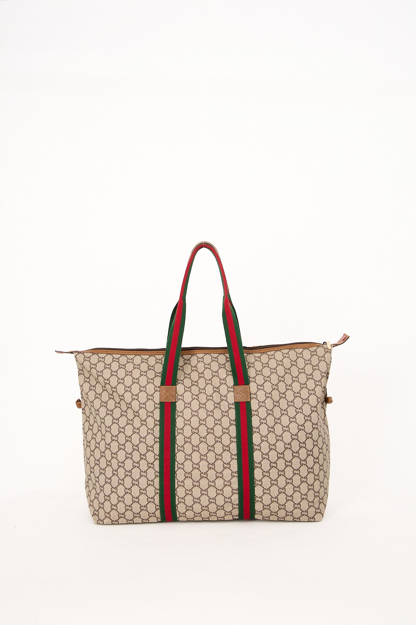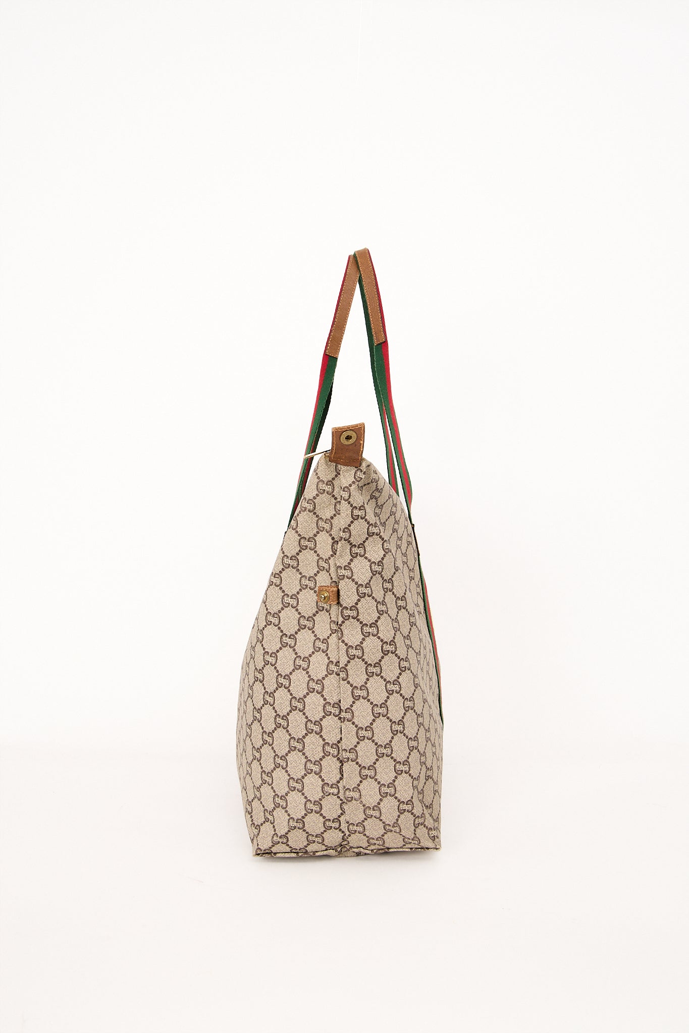 Stor og rummelig Gucci Plus Tote i det ikoniske GG Supreme coated canvas med karakteristiske rød-grønne webstriber og brune læderdetaljer. Tasken har det ikoniske Gucci Plus-emblem på fronten – et sjældent vintage-symbol, som kun blev brugt på udvalgte modeller i 1980’erne og 1990’erne. Perfekt som rejse- eller hverdagstaske, med god plads til computer, dokumenter eller weekend-essentials. Tasken forener klassisk Gucci-håndværk med et sporty og tidløst udtryk.