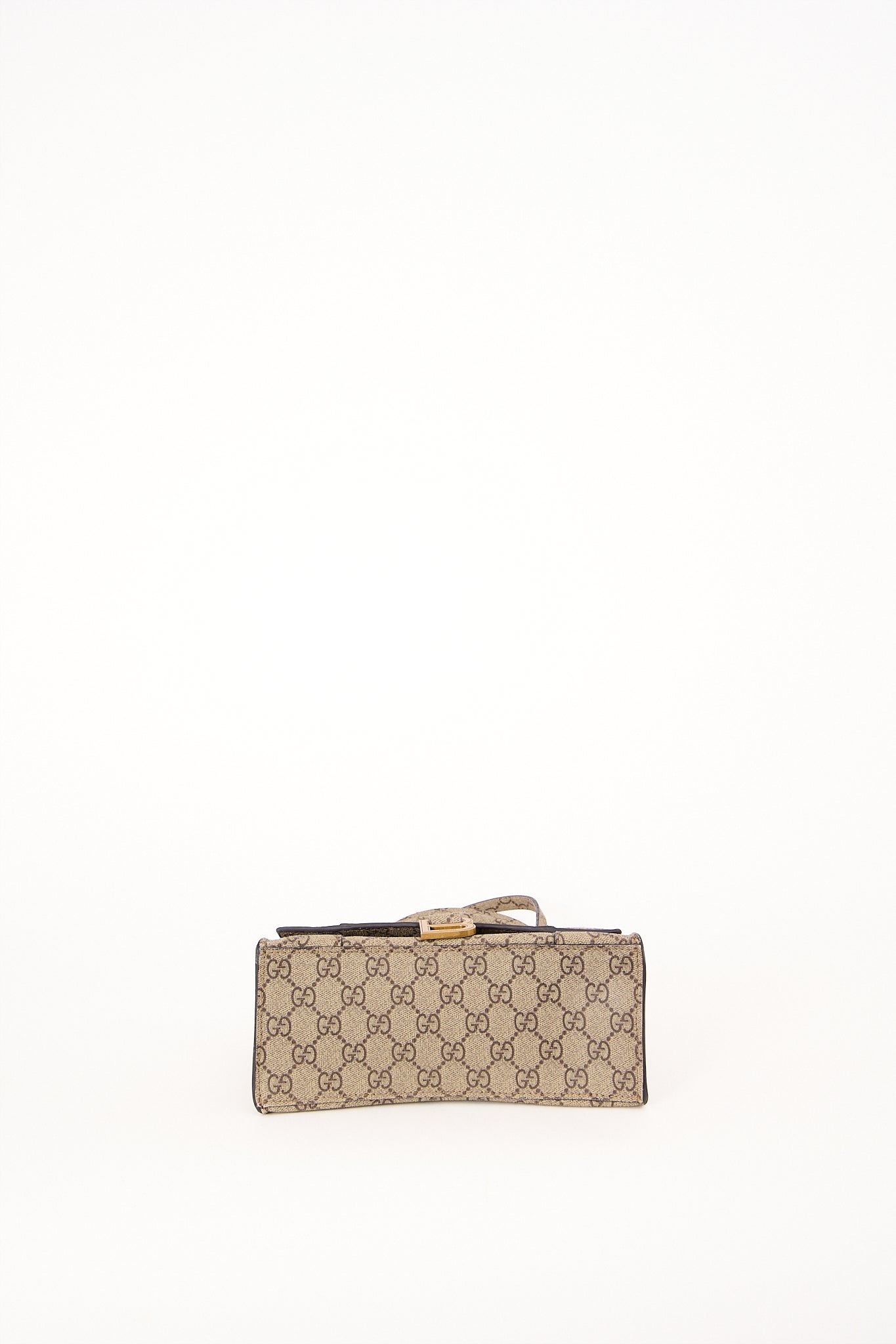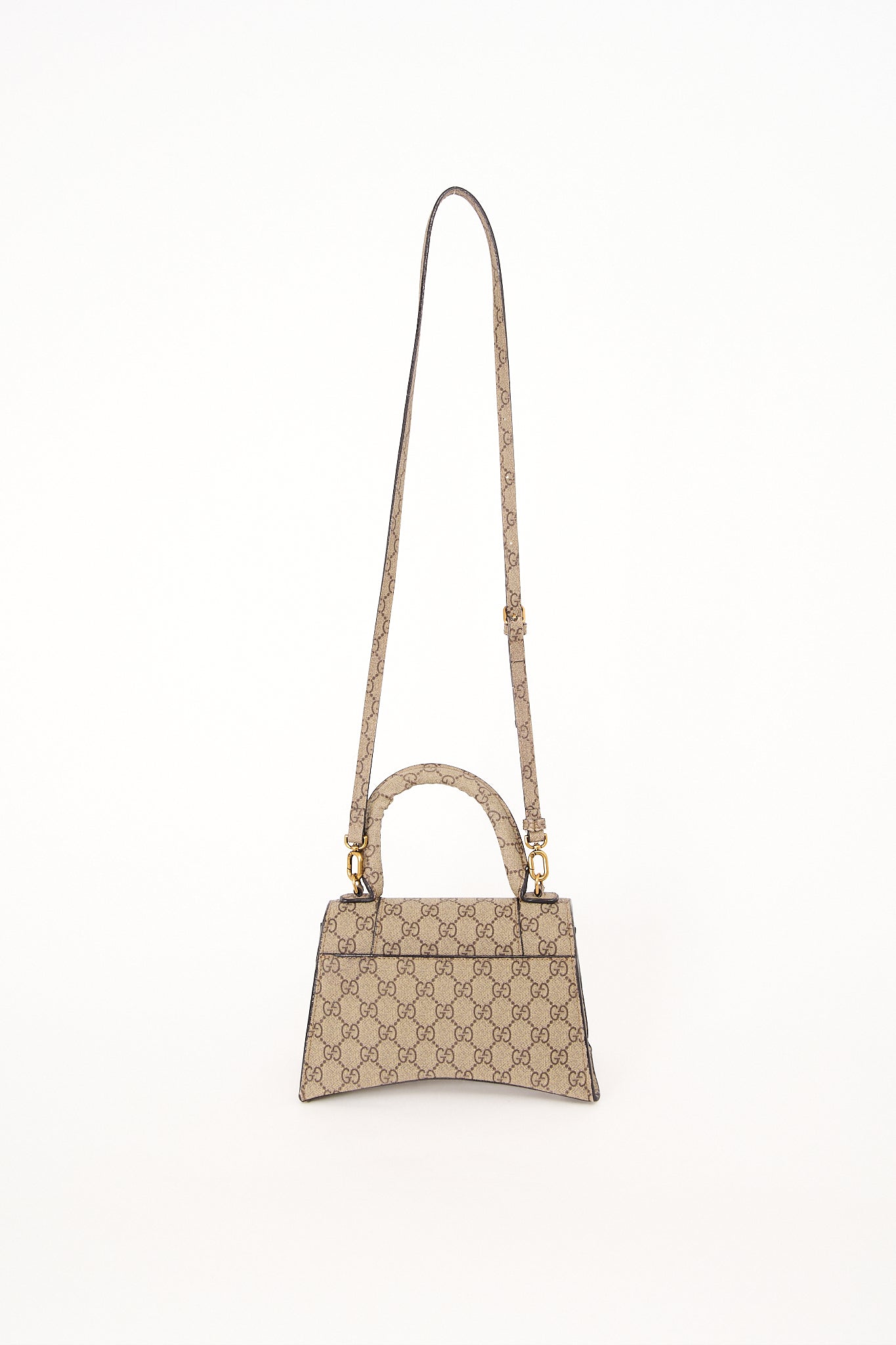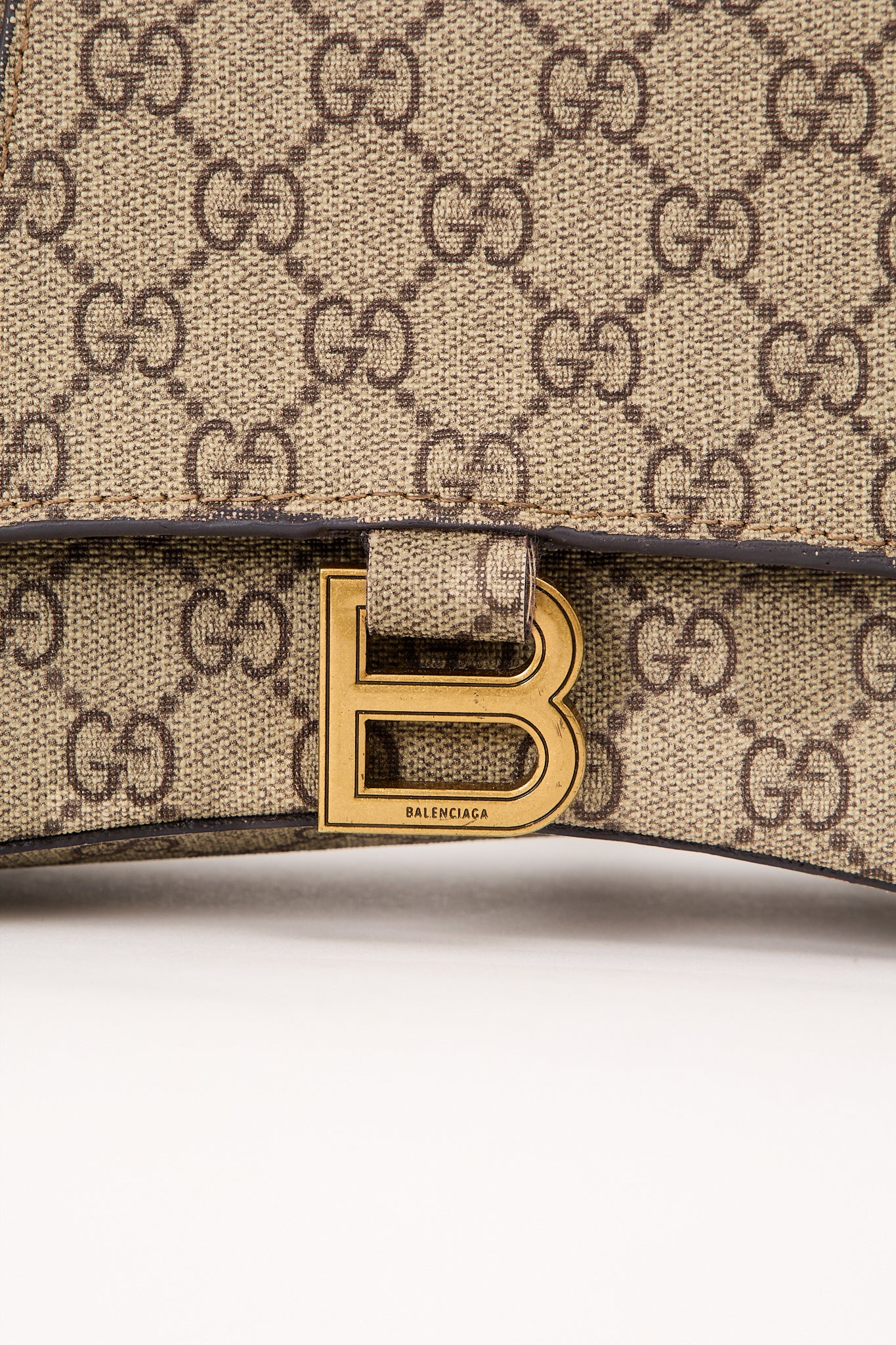 Gucci x Balenciaga Hourglass Bag er et af modeverdenens mest ikoniske samarbejder – en fusion mellem to huse, der hver især har defineret luksus og avantgarde design. Tasken forener Balenciagas karakteristiske Hourglass-silhuet med Guccis ikoniske GG Supreme Canvas, og skaber et unikt samlerobjekt for ægte modeelskere. Detaljer som det buede design, top-håndtaget og det markante “B”-logo i guld understreger Balenciagas skulpturelle formsprog, mens Guccis print tilfører klassisk italiensk arv. Tasken kan bæres både crossbody og som håndtaske takket være den aftagelige skulderrem.