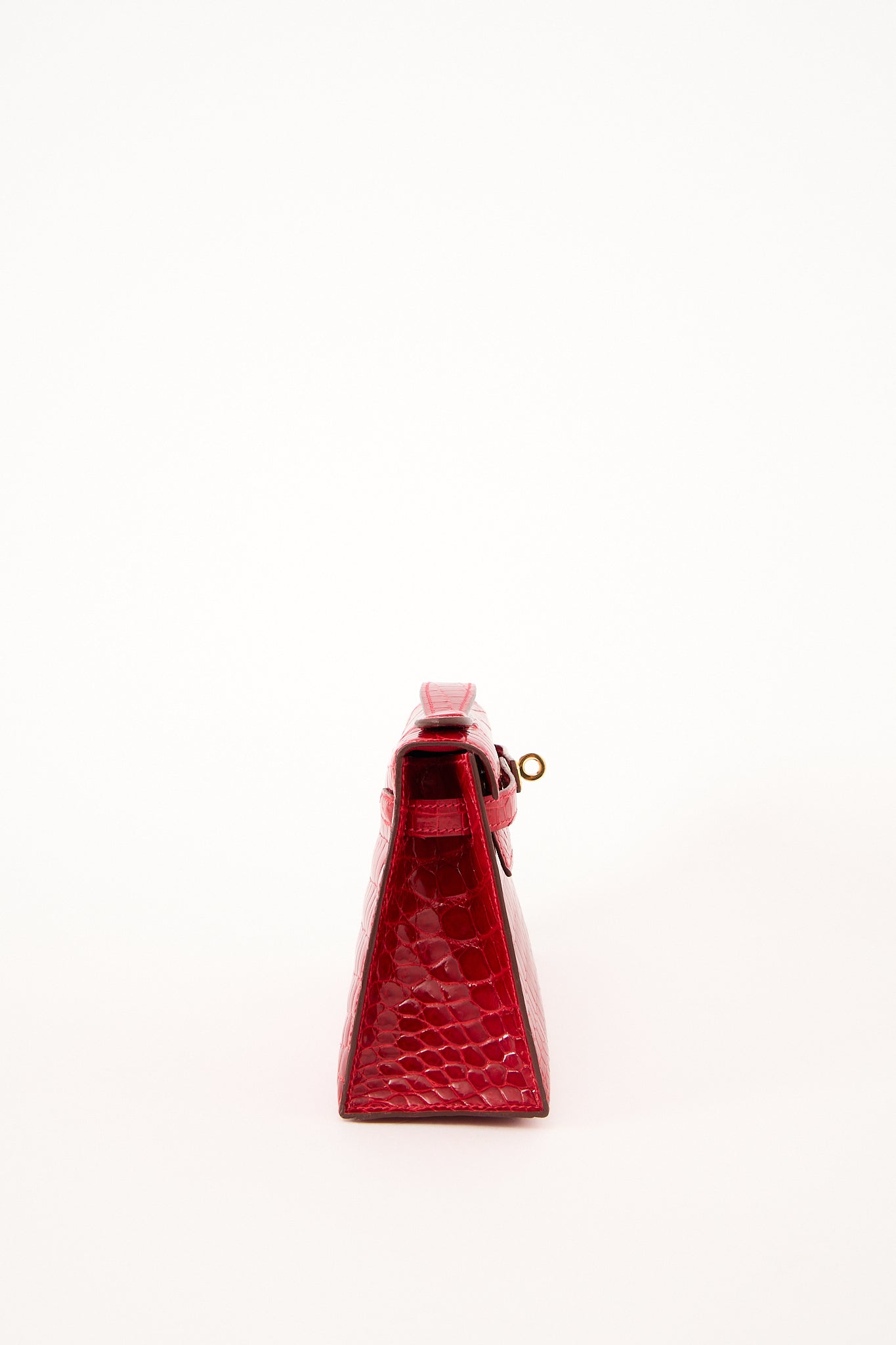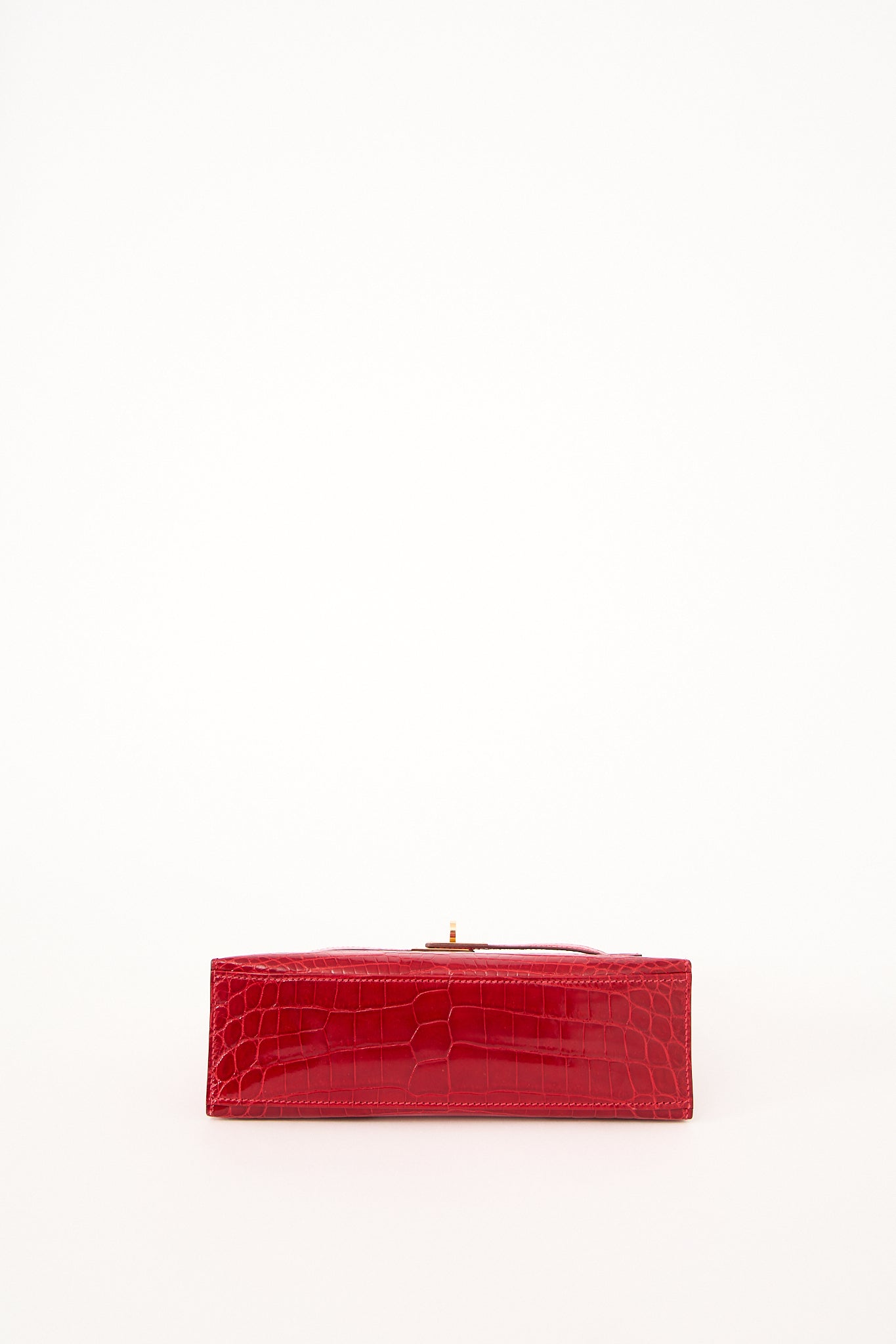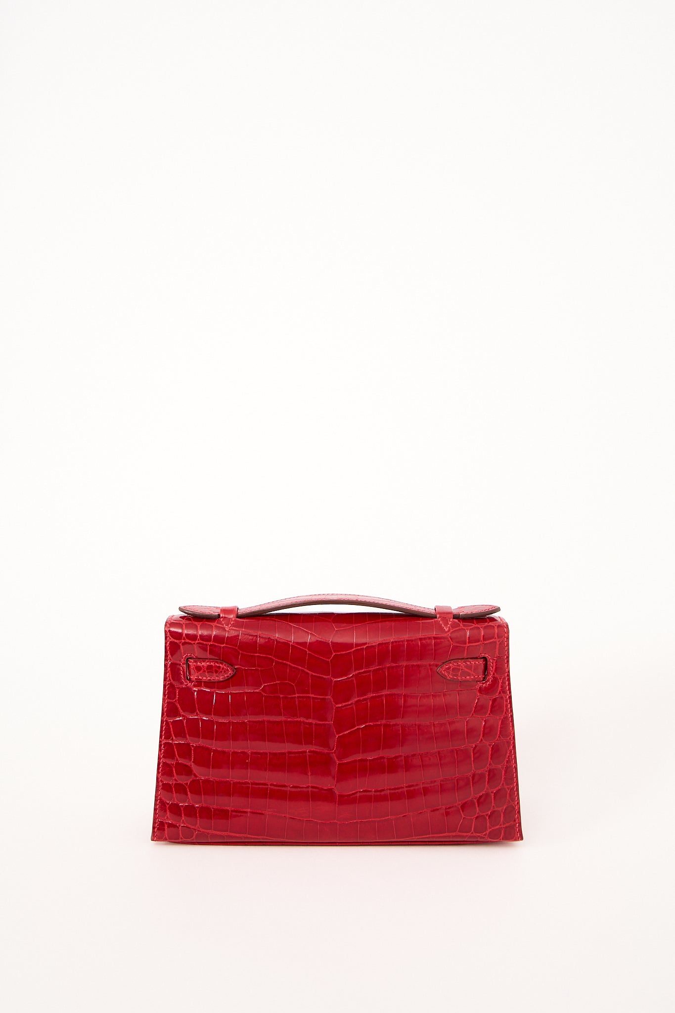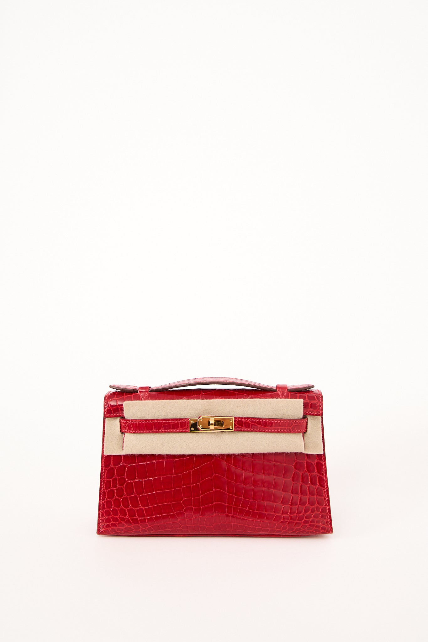Her får du et sjældent sæt bestående af en Hermès Mini Kelly Pochette fra 2008 i Crocodile Niloticus og et Constance bælte fra 2007 i Crocodile Porosus - begge farven Braise med varmt guld hardware.