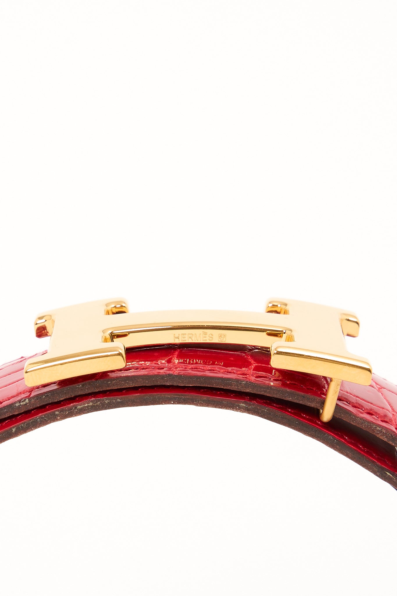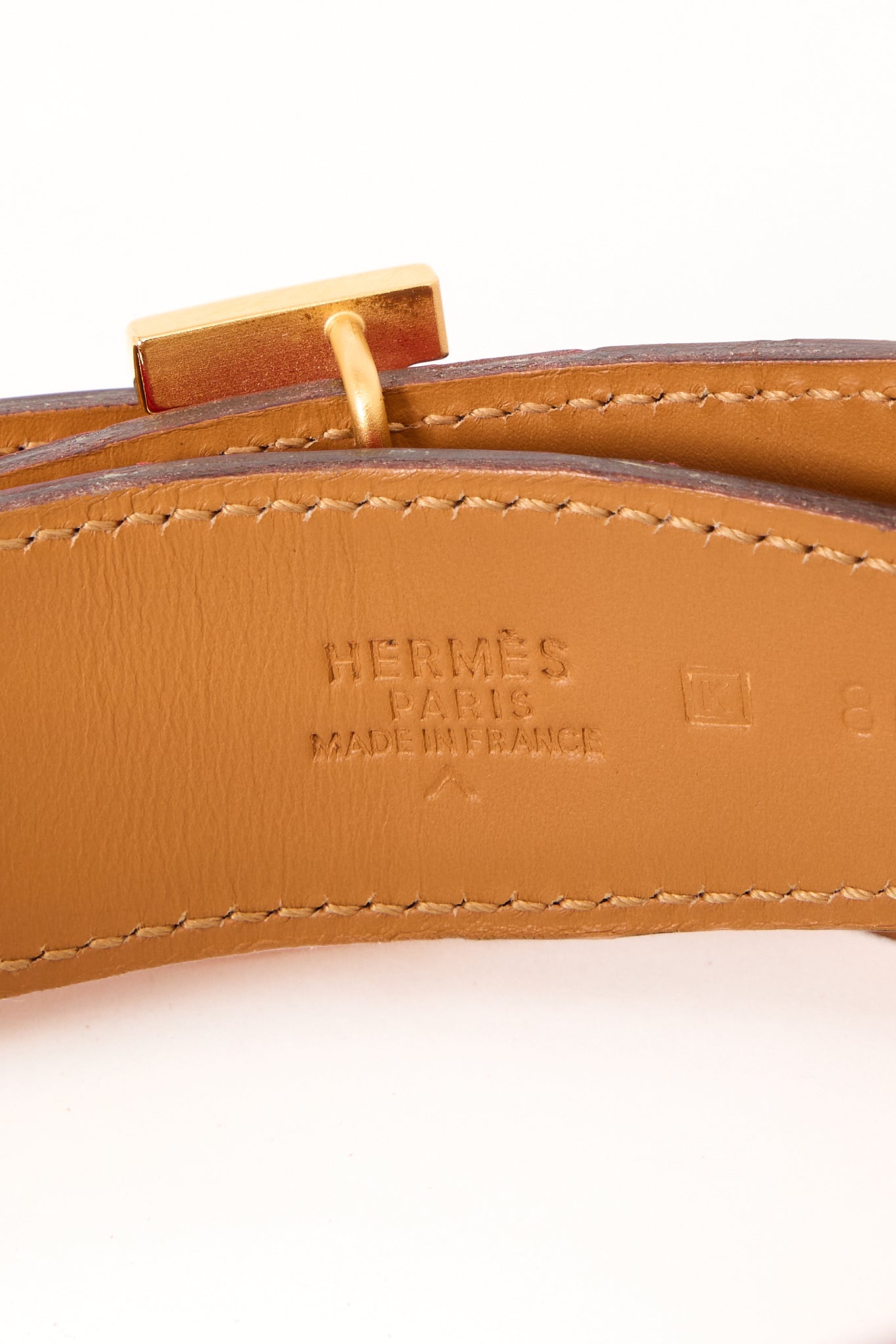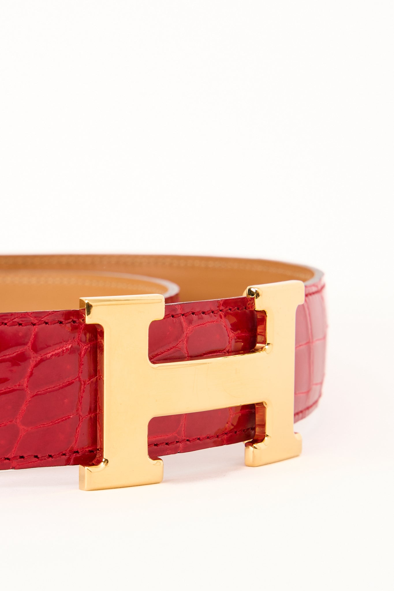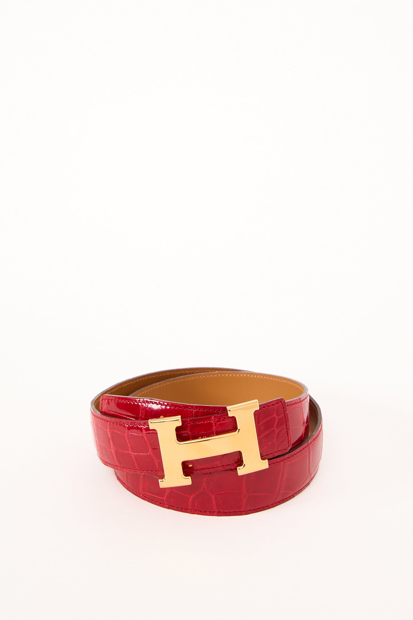 Her får du et sjældent sæt bestående af en Hermès Mini Kelly Pochette fra 2008 i Crocodile Niloticus og et Constance bælte fra 2007 i Crocodile Porosus - begge farven Braise med varmt guld hardware.