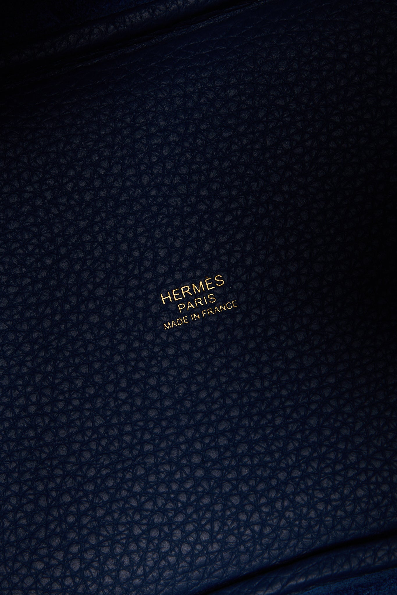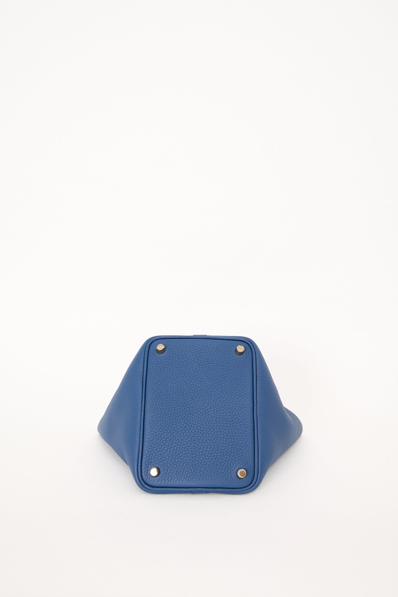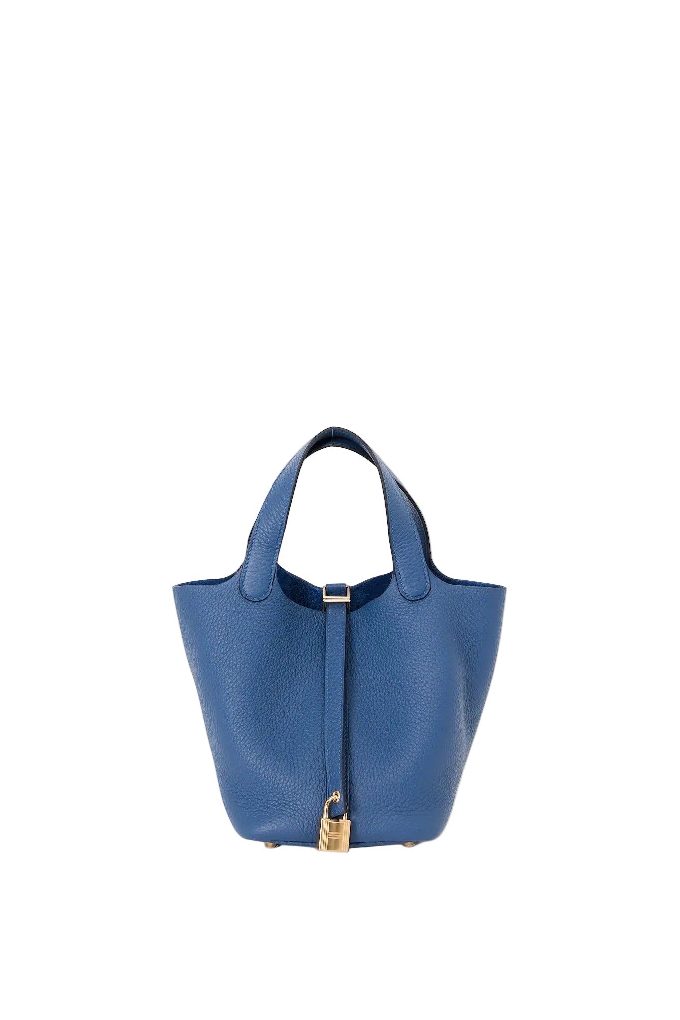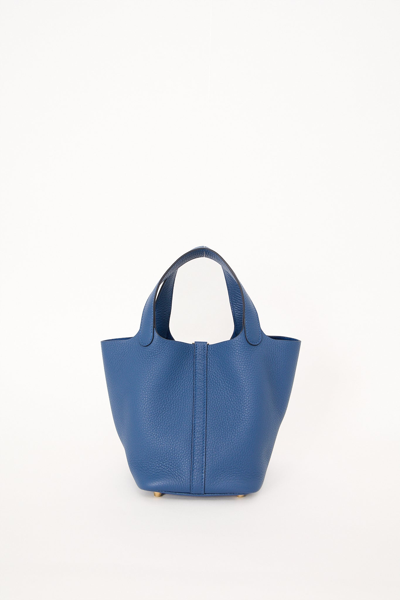 Eksklusiv Hermès Picotin Lock 18 i den smukke farve Blue Tie, udført i blødt og holdbart Clemence-læder med guld hardware. Tasken er kendetegnet ved sit minimalistiske og raffinerede design, der balancerer luksus og funktionalitet på fineste vis. Den ikoniske Picotin-model har et åbent design med lås og nøgle som elegant detalje, og bæres let i hånden eller på underarmen. Et tidløst Hermès-design, der tilføjer et strejf af diskret luksus til enhver garderobe. Der medfølger original æske, dustbag samt lås og nøgle.