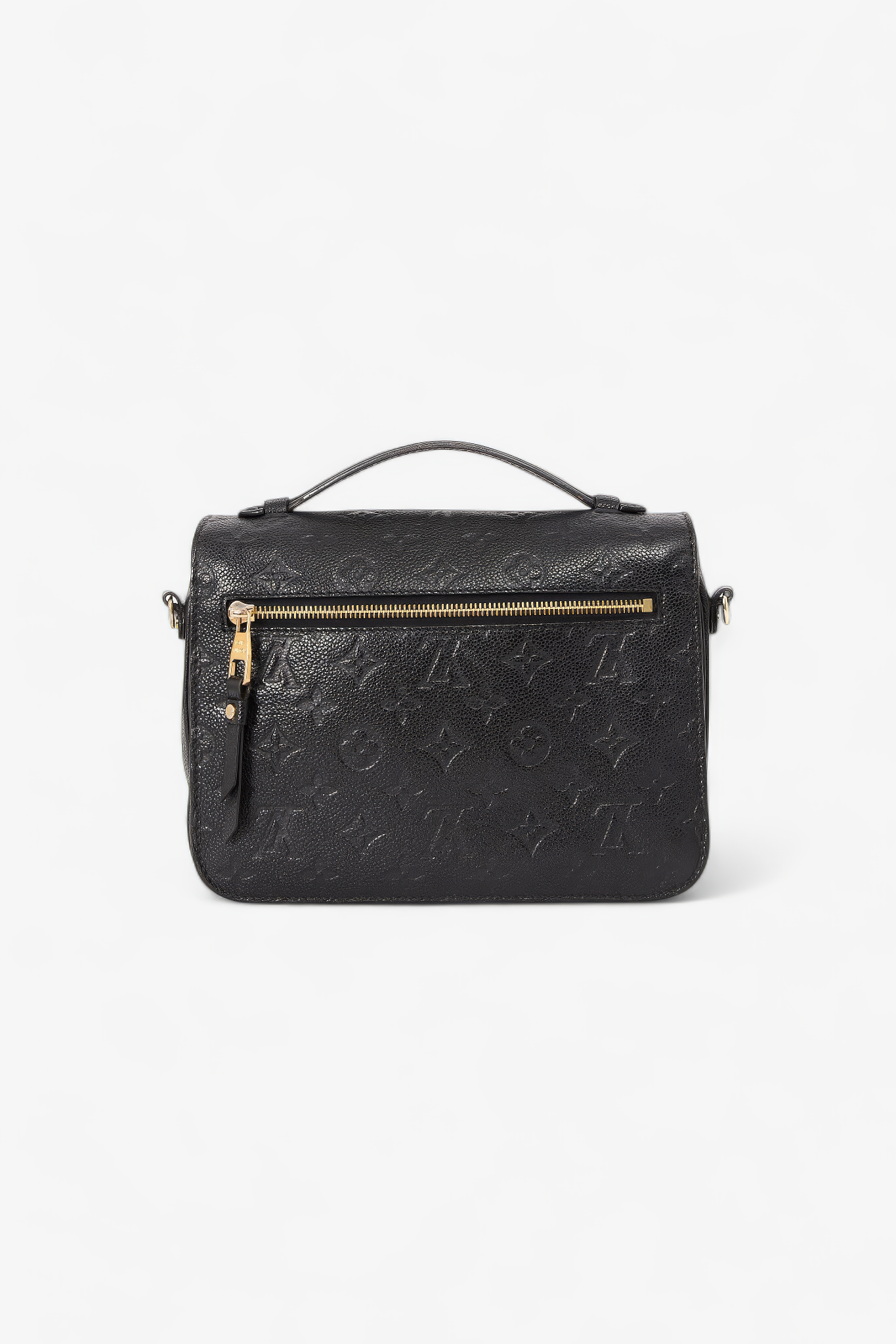 Denne Louis Vuitton Pochette Métis i Monogram Empreinte-læder er en af LV’s mest eftertragtede modeller. Det sorte, prægede læder giver et eksklusivt og moderne udtryk, mens den ikoniske S-lock i guld tilføjer et elegant, klassisk LV-finish. Taskens strukturerede form gør den perfekt til både hverdags- og aftenbrug, og den kan styles med alt fra trenchcoat og jeans til kjoler og mere polerede looks. En tidløs favorit med et luksuriøst Louis Vuitton-touch.