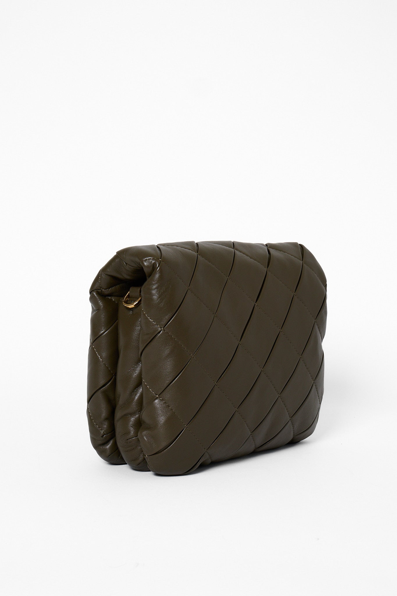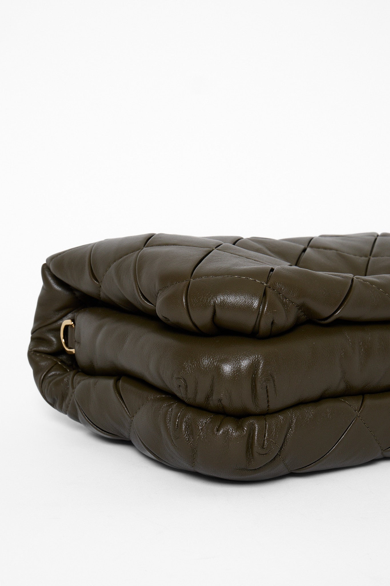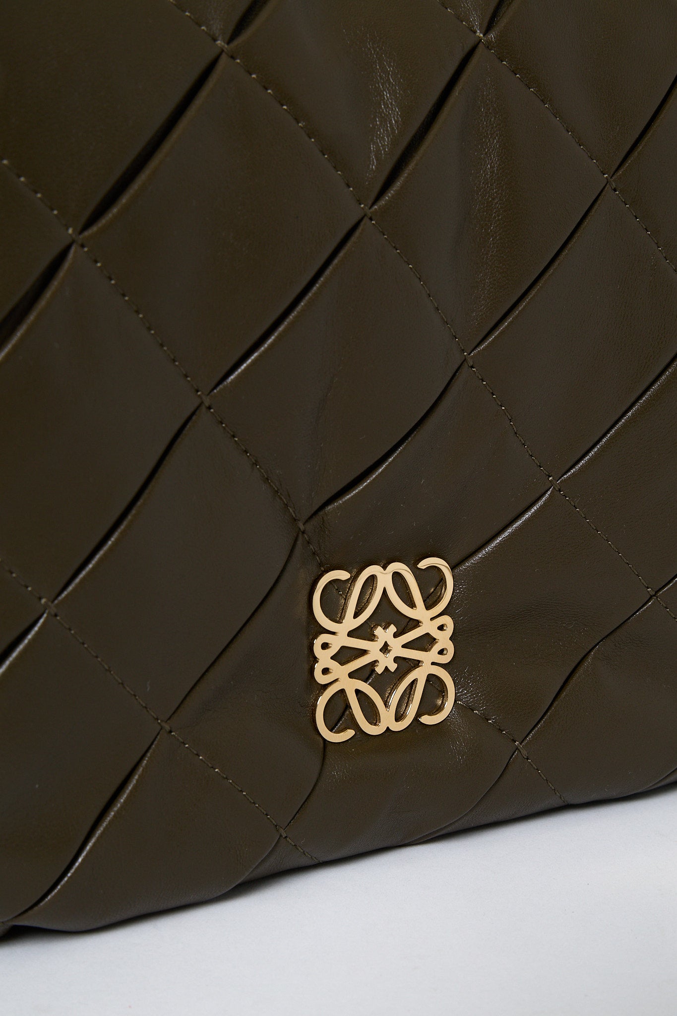 Blød luksus og moderne elegance mødes i Loewe Goya Puffer i olivengrønt nappalæder. Den quiltede silhuet og kæderemmen i guldfarvet metal giver tasken et sofistikeret, men samtidig afslappet udtryk. Forsynet med det ikoniske Anagram-logo foran – et symbol på Loewe’s håndværk og tidløse design. Perfekt som crossbody eller skuldertaske til både dag og aften.