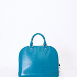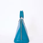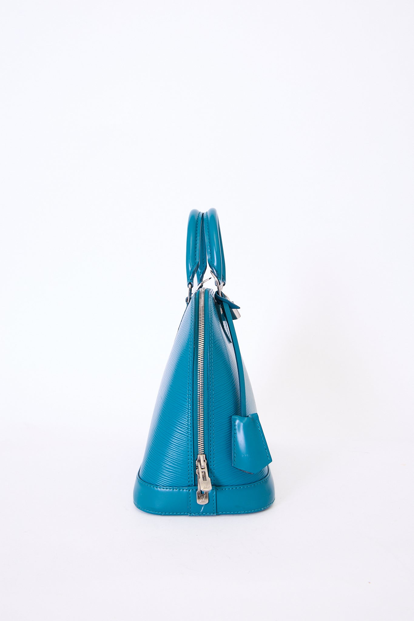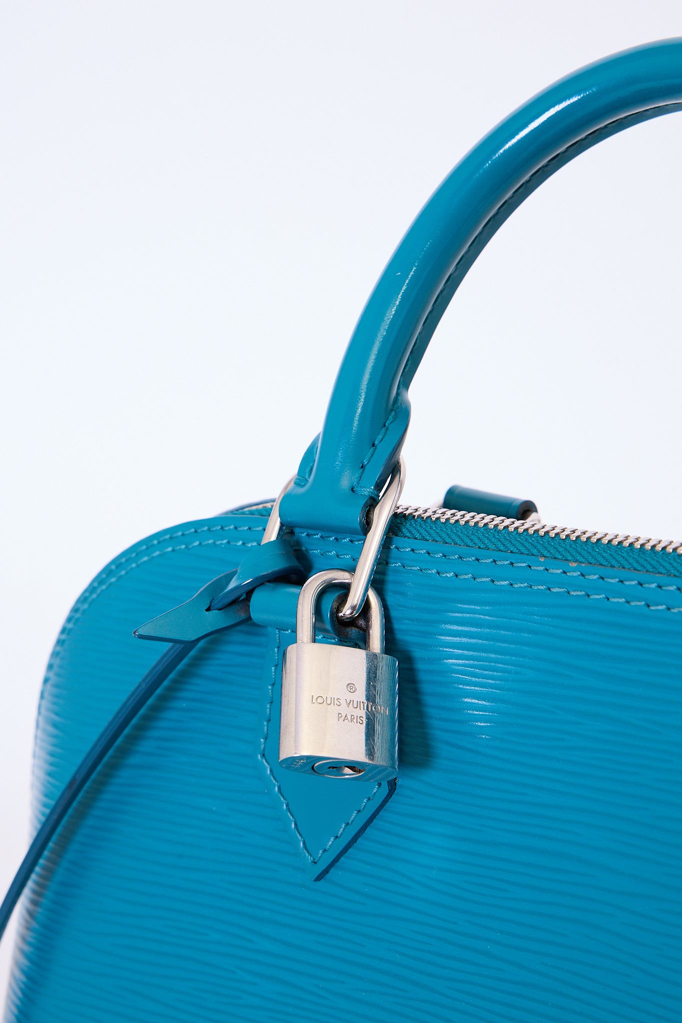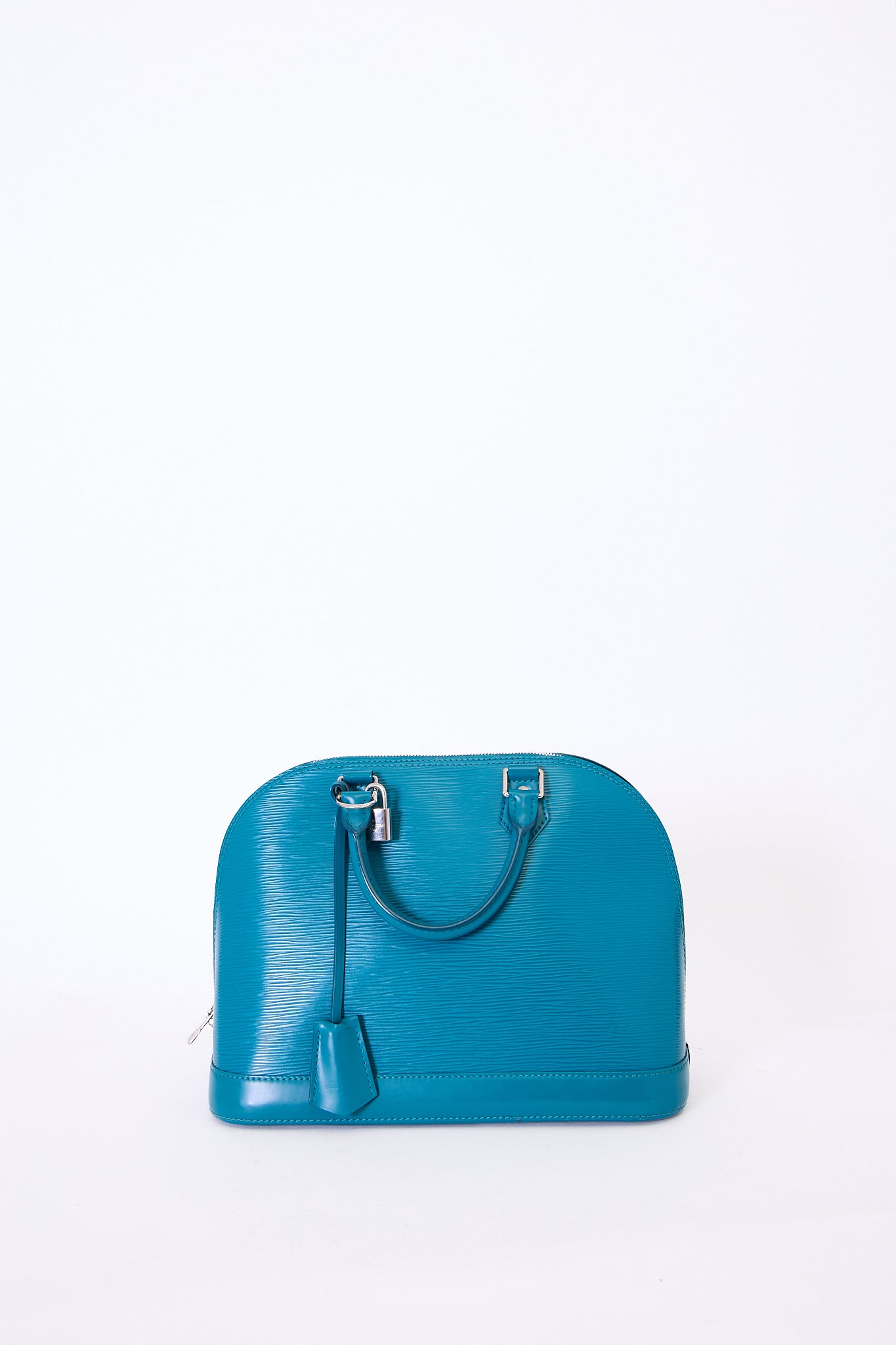 Den klassiske Louis Vuitton Alma PM i smuk turkis Epi-læder er et frisk pust af farve i enhver garderobe. Med sin ikoniske, strukturerede form og blanke sølvhardware kombinerer den elegance med et moderne twist. Perfekt som en statement-taske til hverdagslooket eller som farverigt luksusindslag til en enkel kjole. Et stilfuldt valg for dig, der ønsker et design, der både skiller sig ud og holder år efter år.