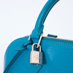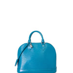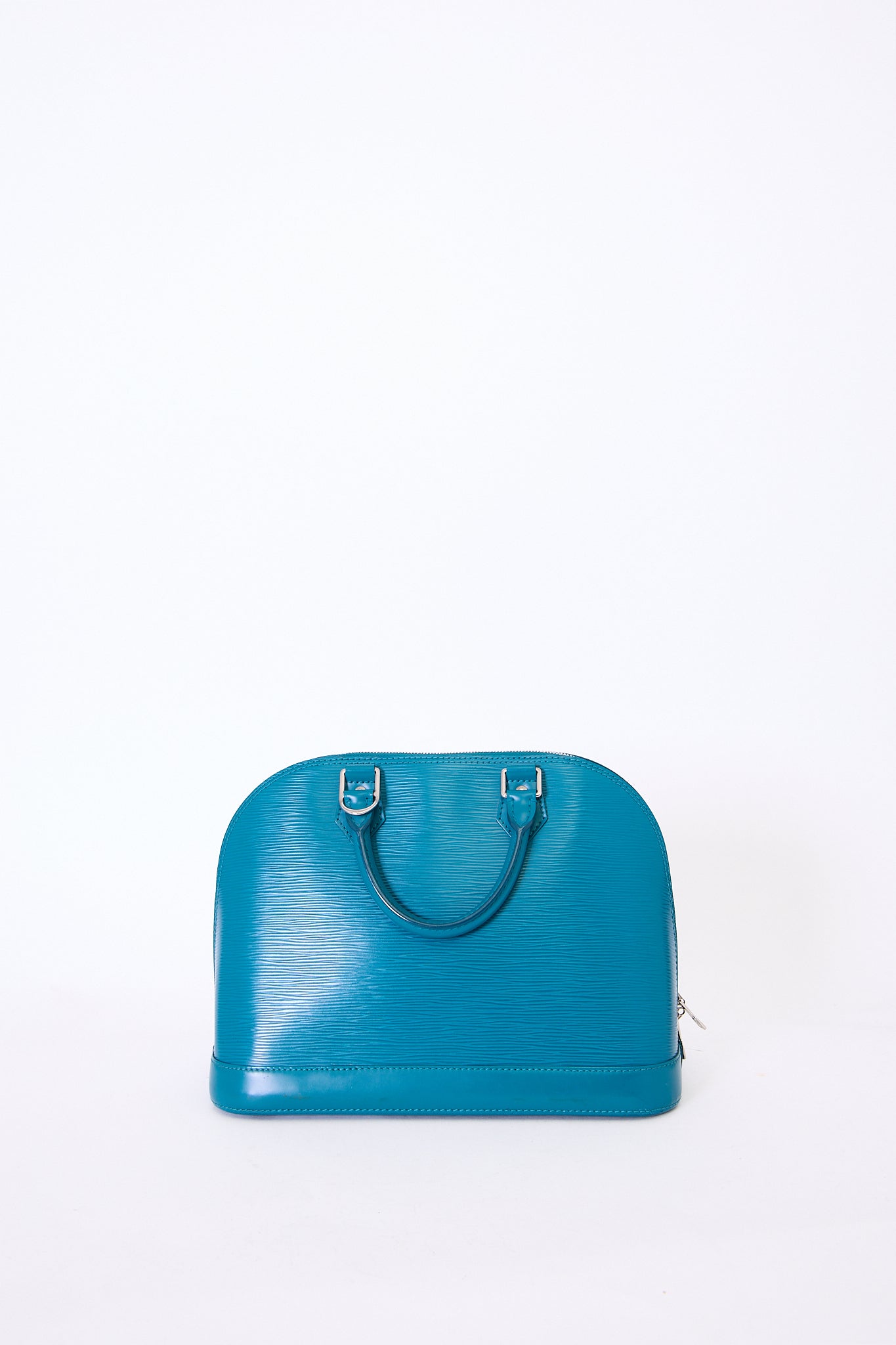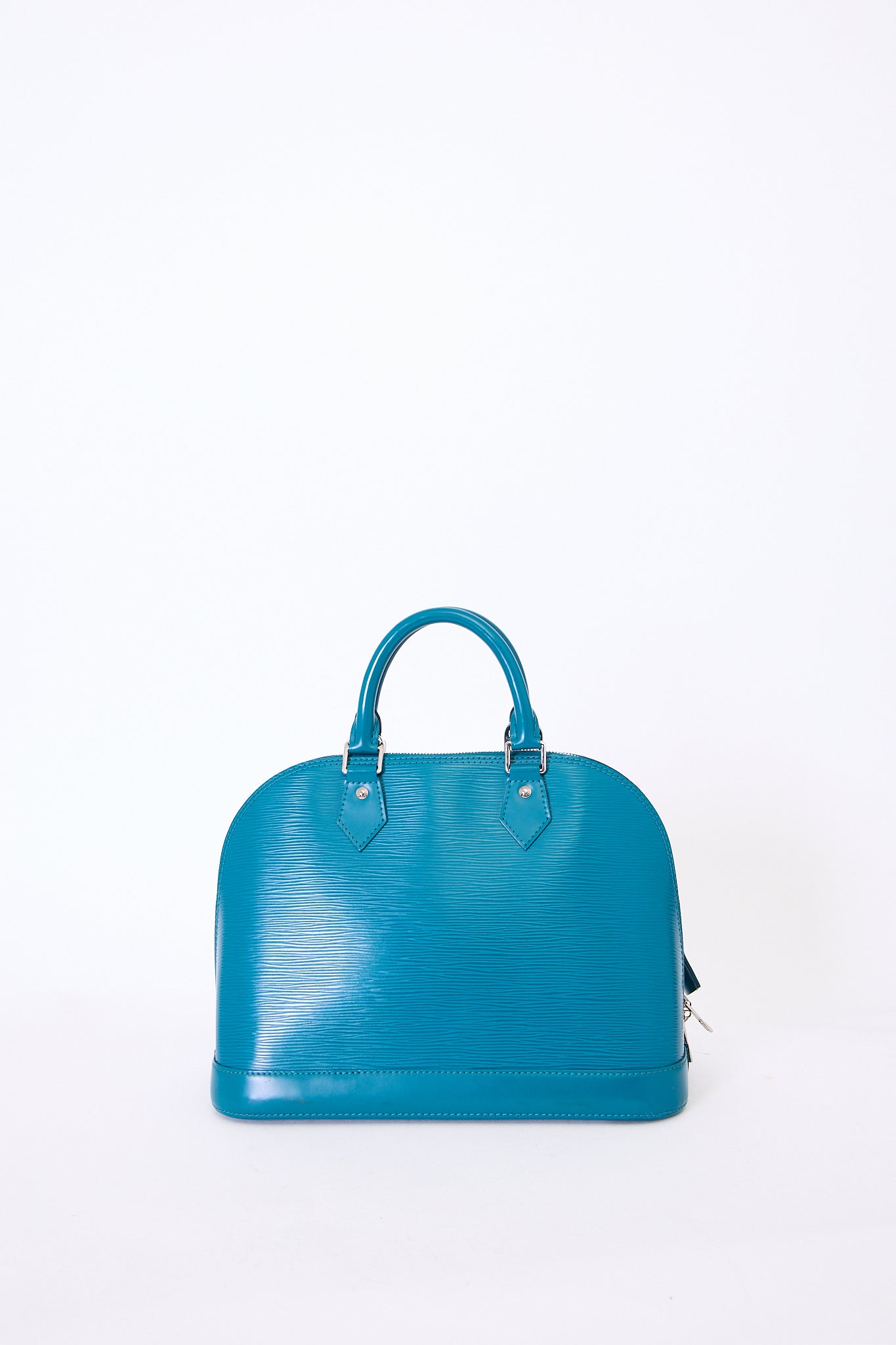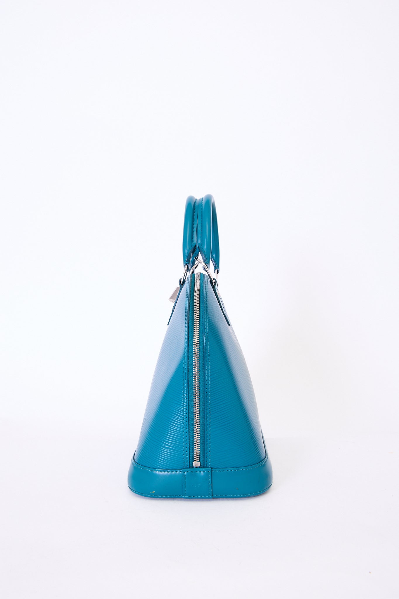 Den klassiske Louis Vuitton Alma PM i smuk turkis Epi-læder er et frisk pust af farve i enhver garderobe. Med sin ikoniske, strukturerede form og blanke sølvhardware kombinerer den elegance med et moderne twist. Perfekt som en statement-taske til hverdagslooket eller som farverigt luksusindslag til en enkel kjole. Et stilfuldt valg for dig, der ønsker et design, der både skiller sig ud og holder år efter år.