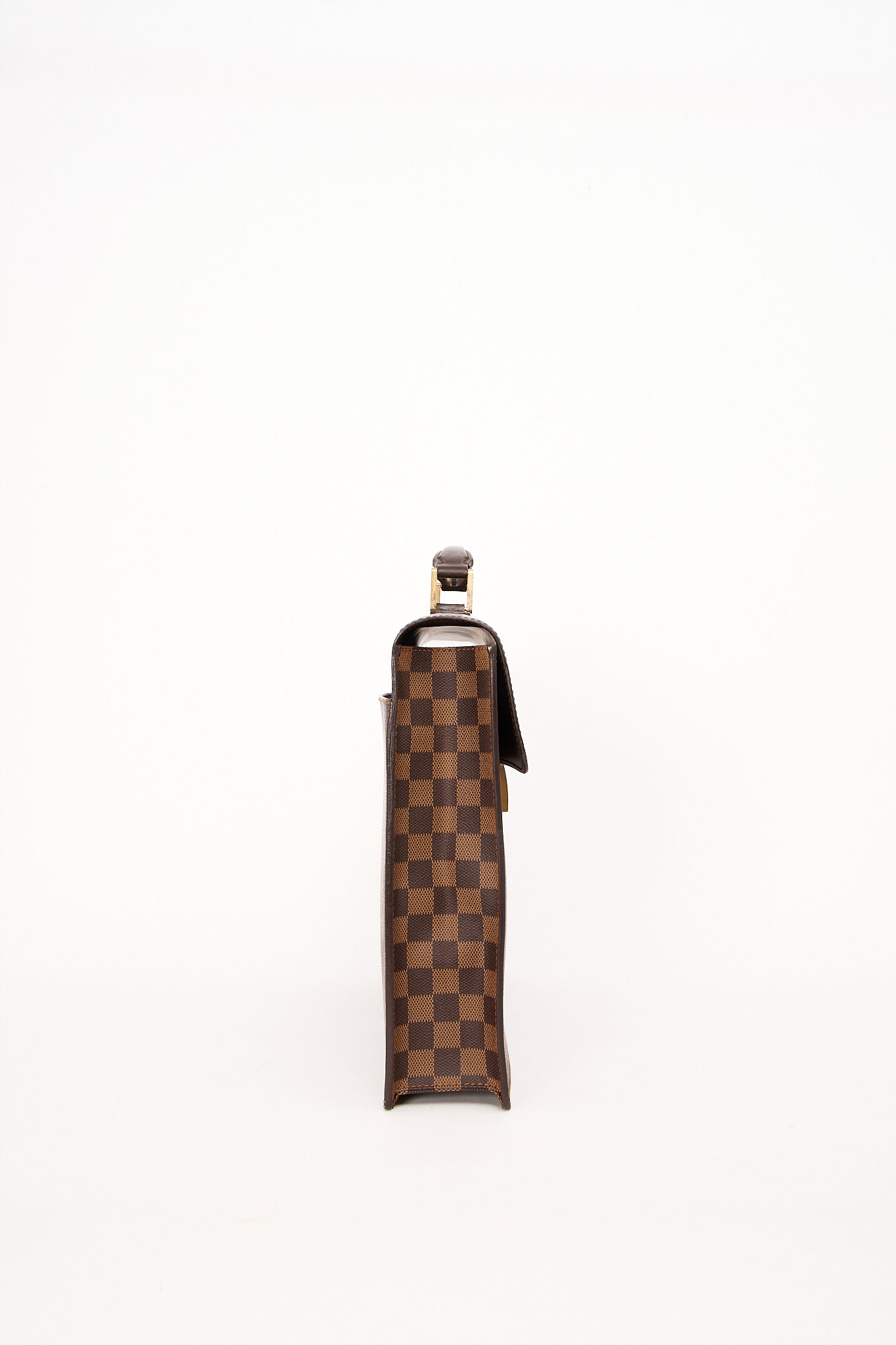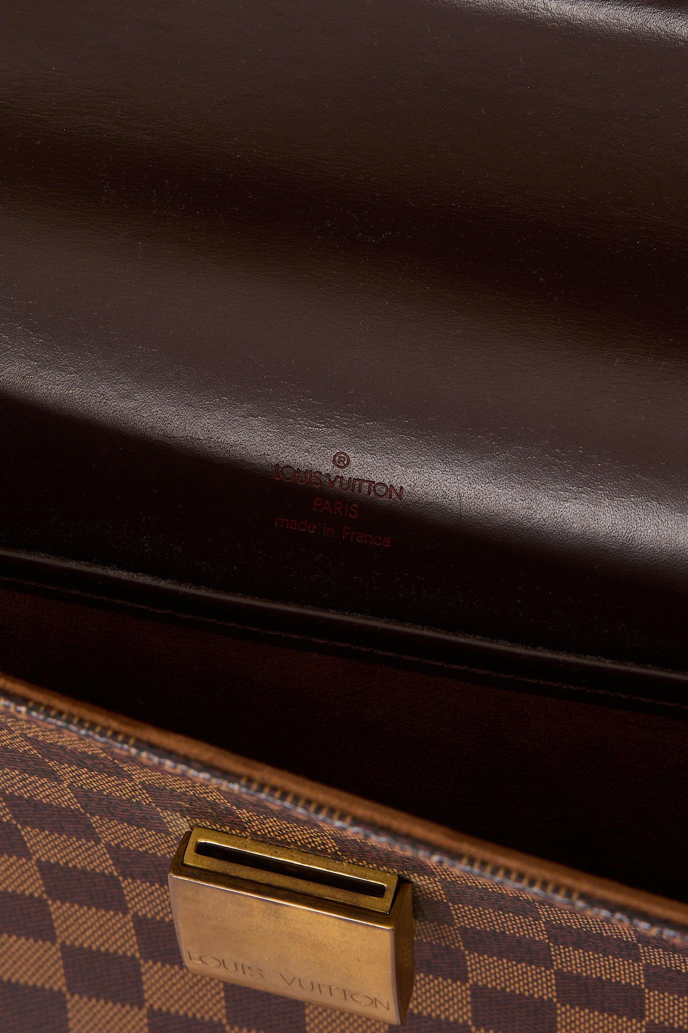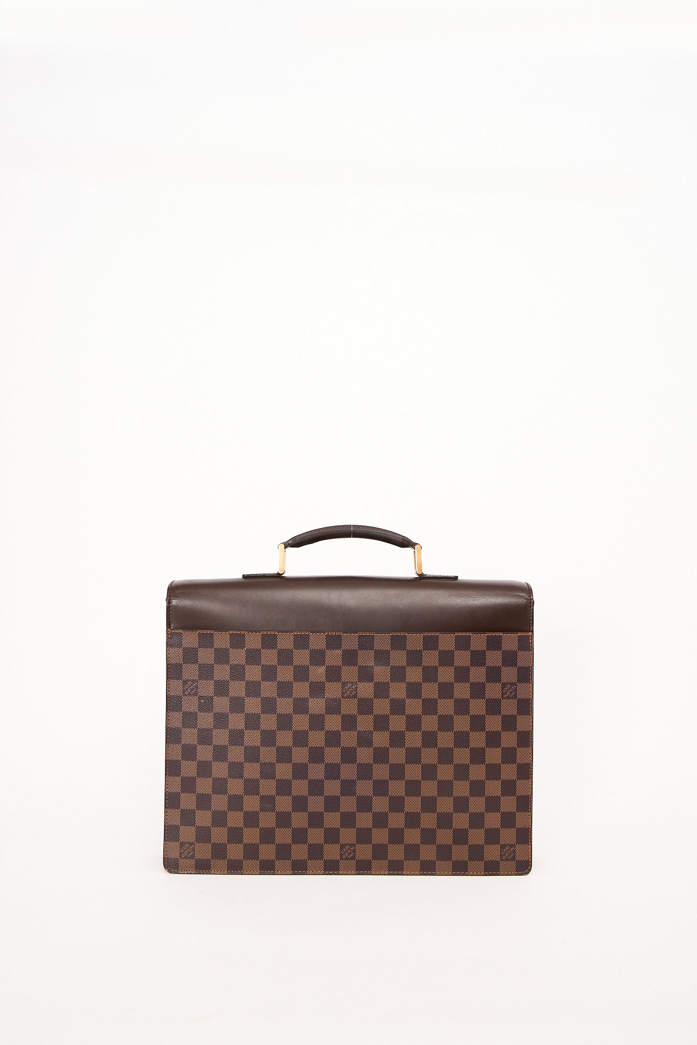 Oplev tidløs elegance med Louis Vuitton Altona. Tasken er fremstillet af Damier Ebene coated canvas, kombineret med brunt læder og gyldne detaljer. Praktisk og stilfuld til enhver lejlighed. Overvej at kombinere den med en trenchcoat for et klassisk look.