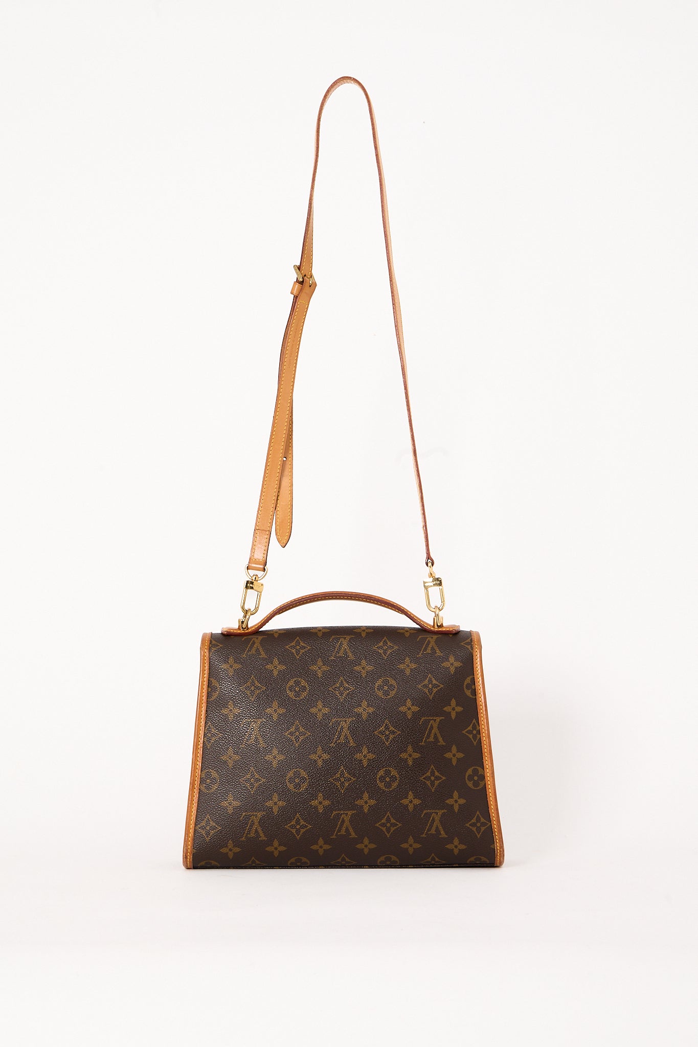 Oplev den tidløse elegance med Louis Vuitton Bel Air. Fremstillet i det ikoniske monogrammønster med naturlige vachetta-læderdetaljer. Den vandafvisende struktur sikrer holdbarhed, og det gyldne hardware tilfører et luksuriøst præg.