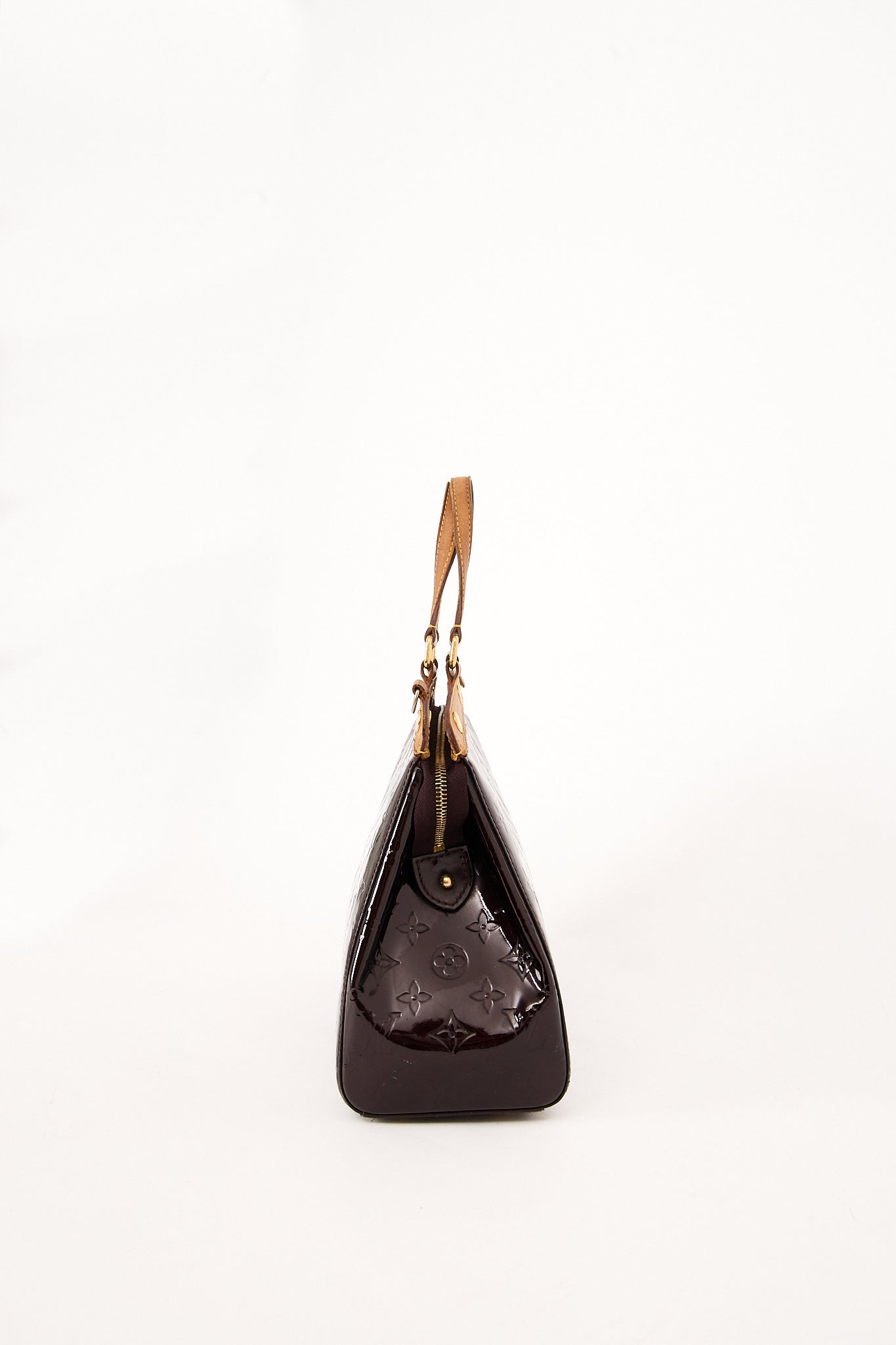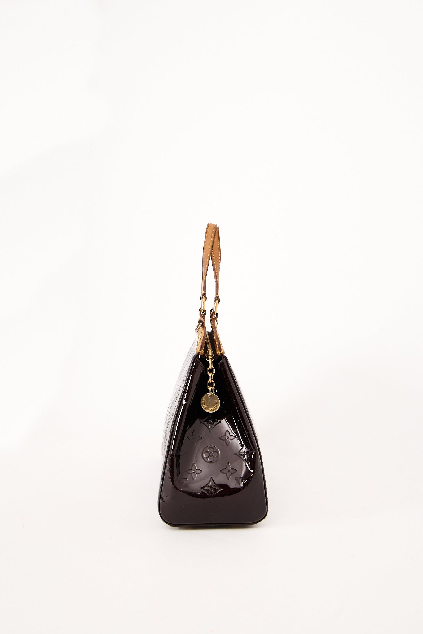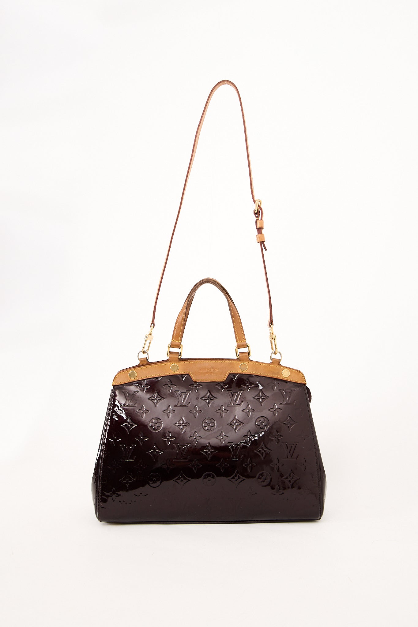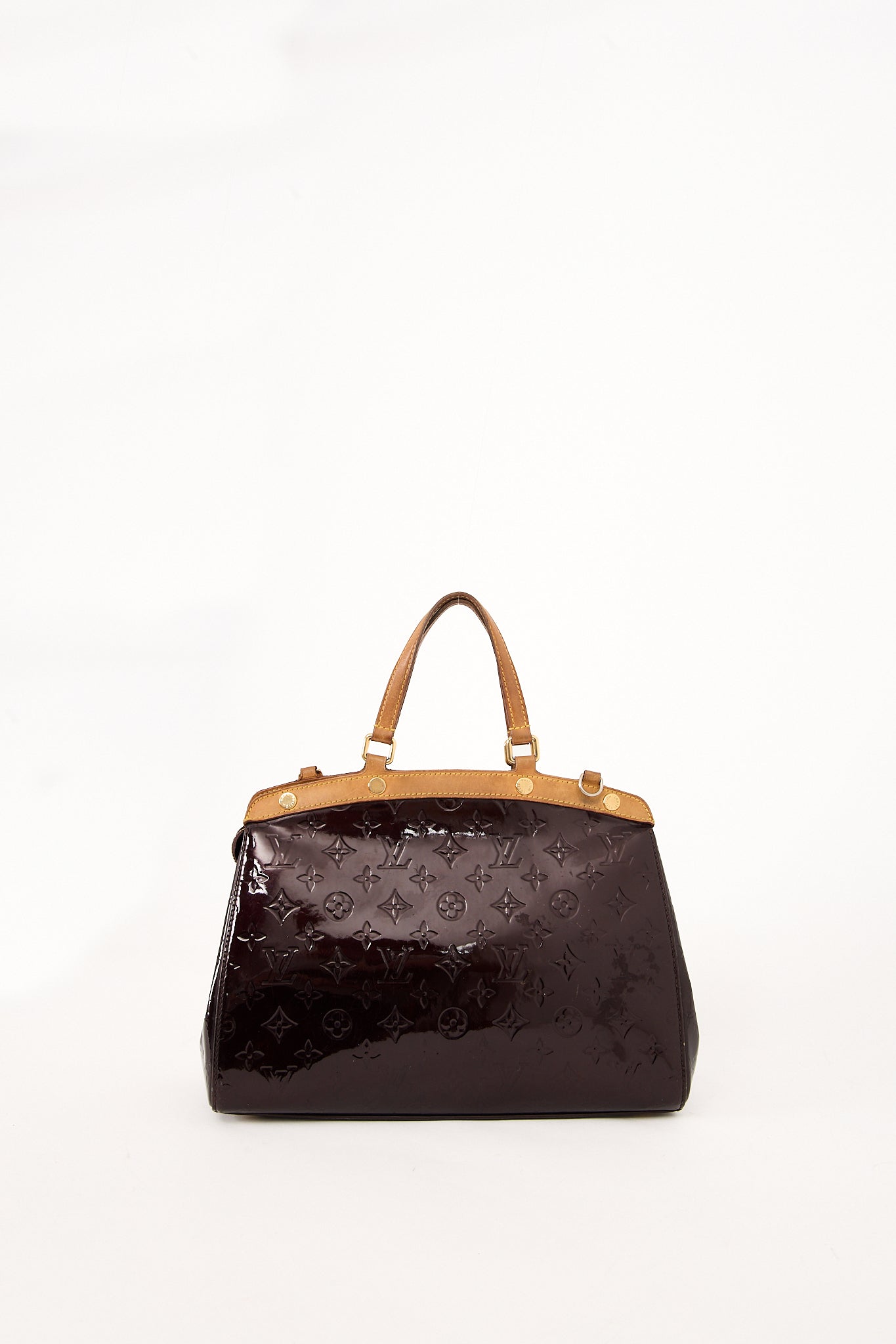 Elegant Louis Vuitton Brea i mørk bordeaux Vernis-læder med naturlige læderdetaljer og guld hardware. Tasken har et klassisk og feminint udtryk med blank overflade, dobbelt hank og rummeligt interiør – perfekt både til hverdagsbrug og mere formelle anledninger.