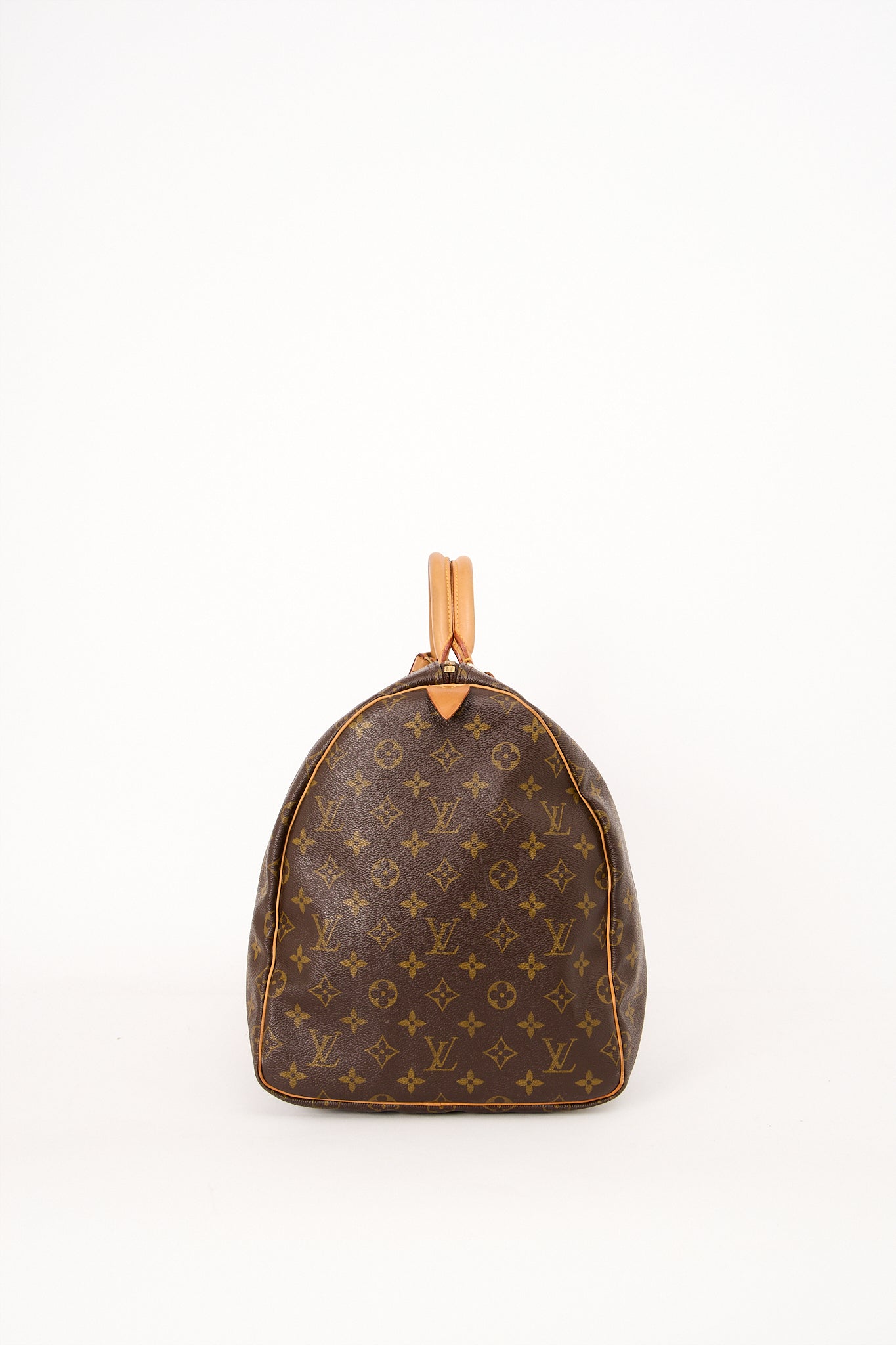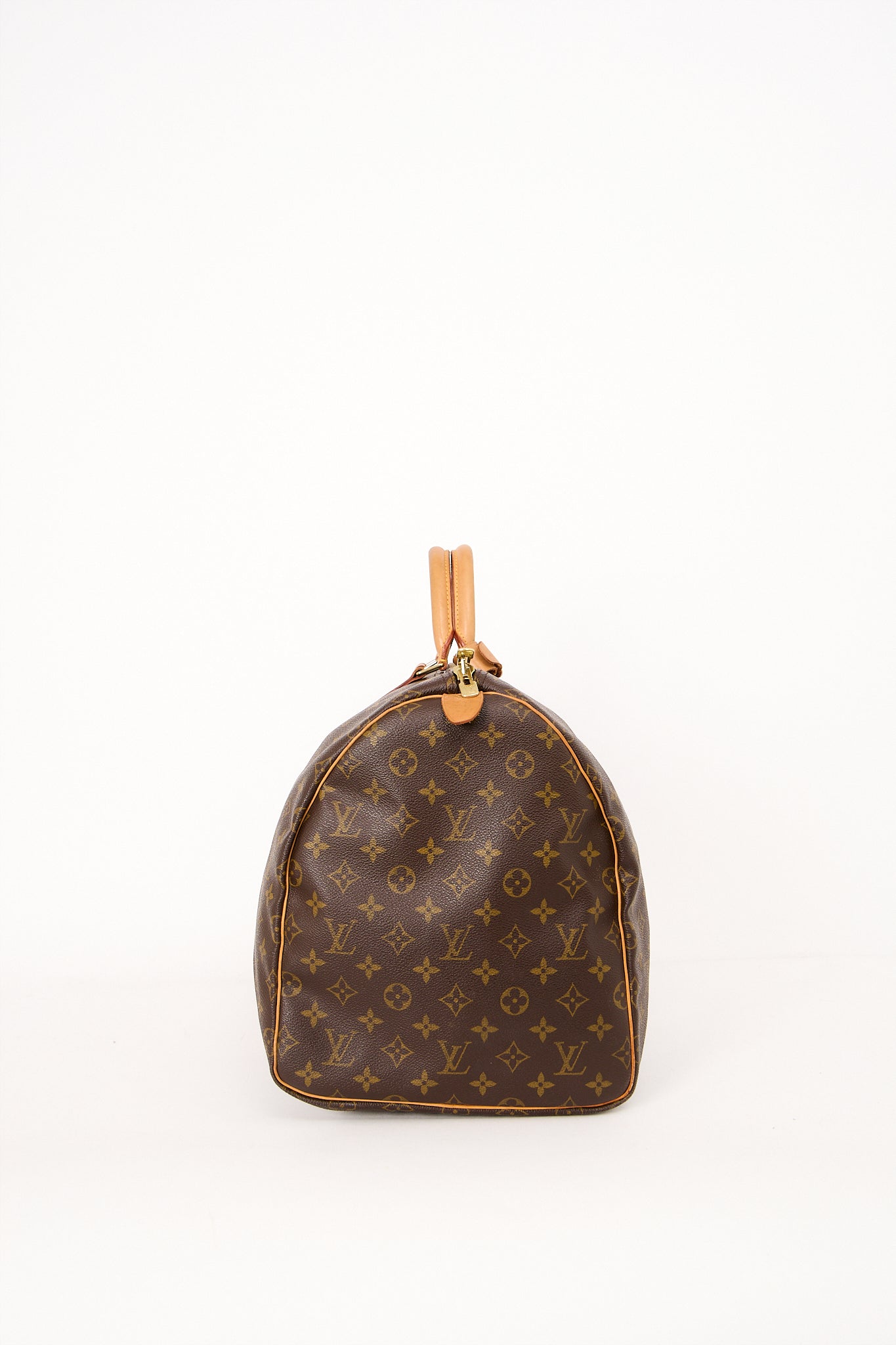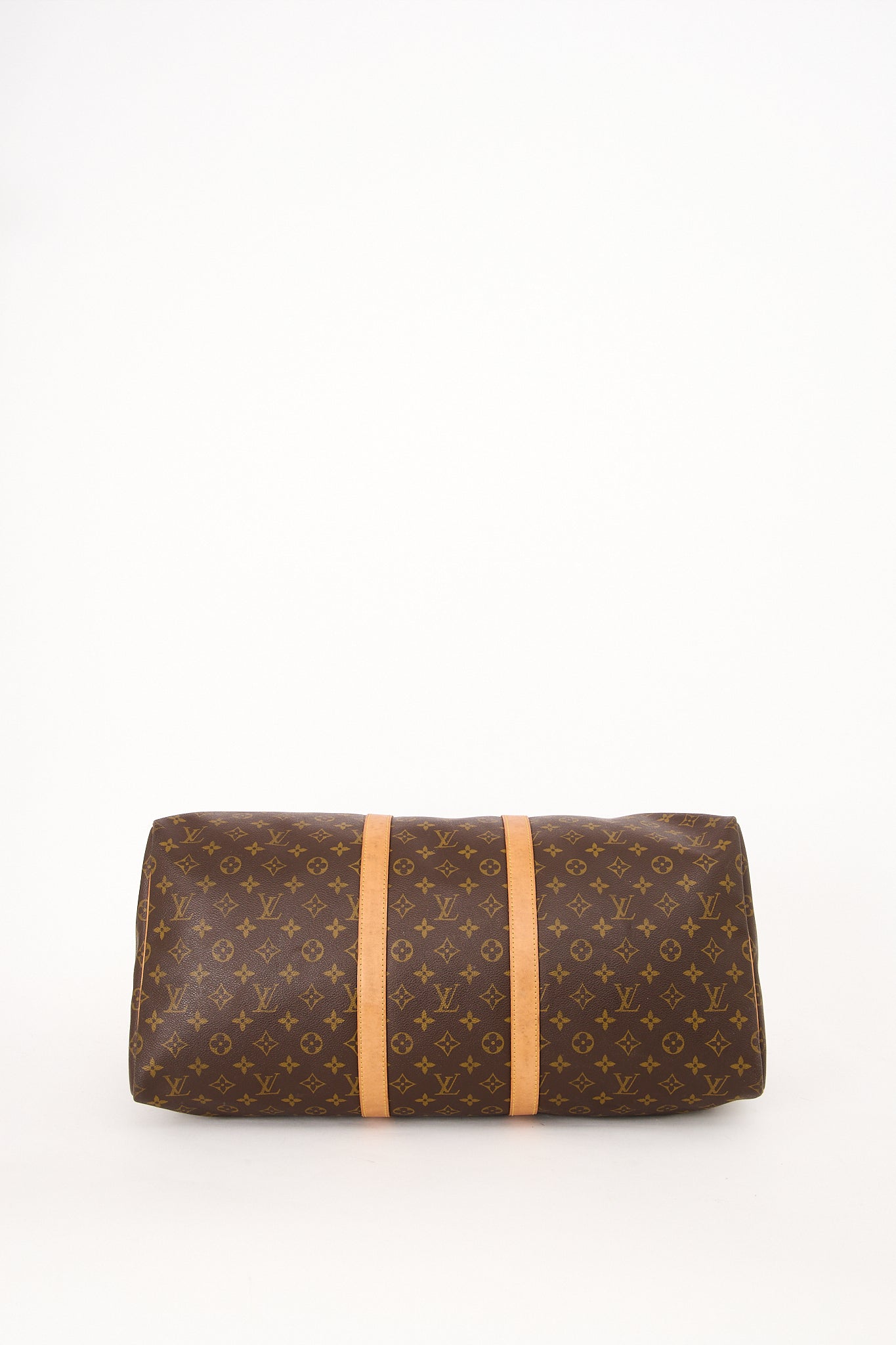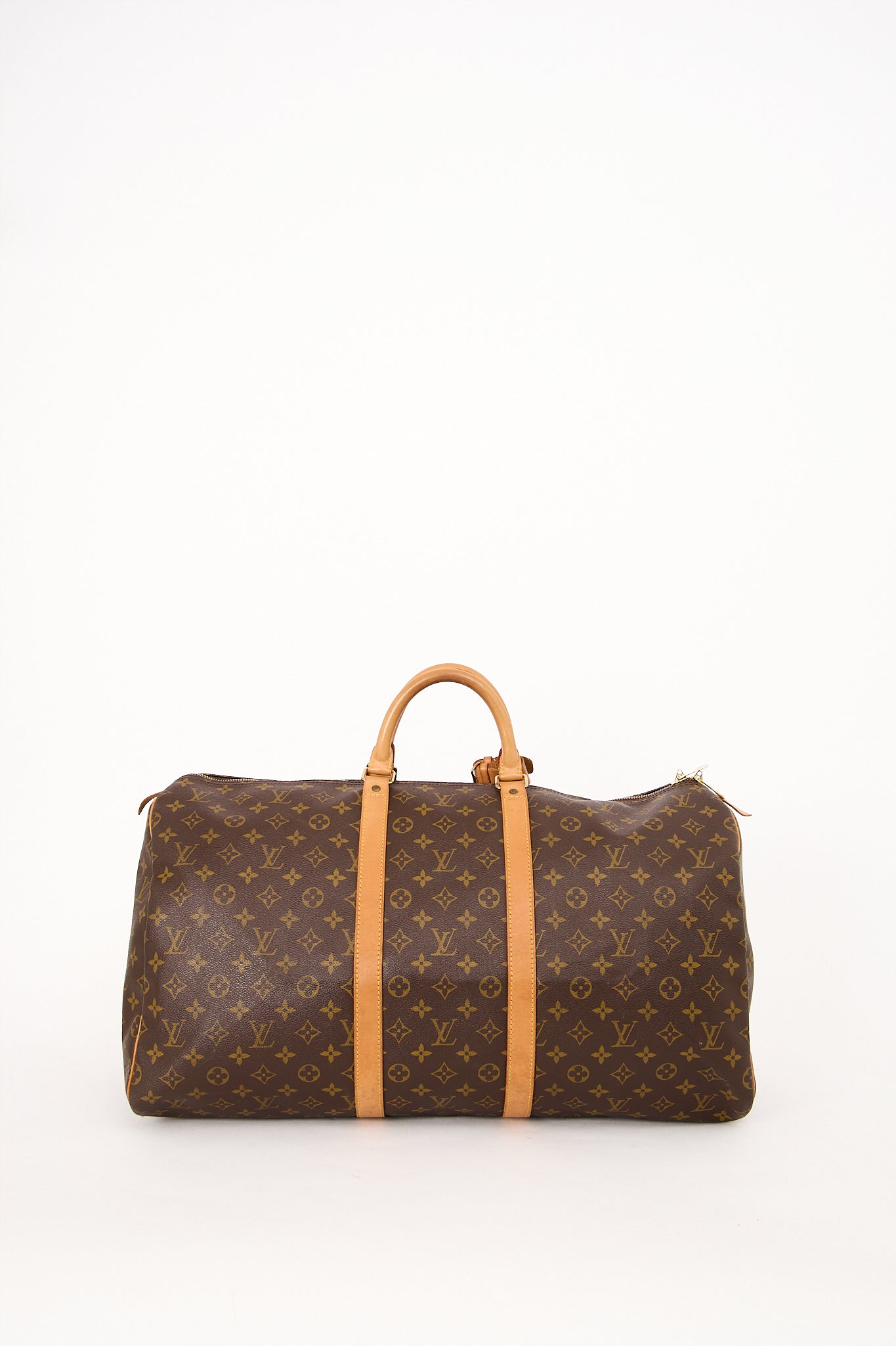 Den klassiske Louis Vuitton Keepall 55 i det ikoniske Monogram Canvas med naturfarvet vachetta-læder og guldfarvet hardware. Tasken er den ultimative rejsemakker – rummelig, let og tidløs i sit design. Denne størrelse er perfekt som håndbagage og er elsket for sin kombination af luksus og funktionalitet. Et ægte symbol på Louis Vuittons rejsearv og håndværk.
