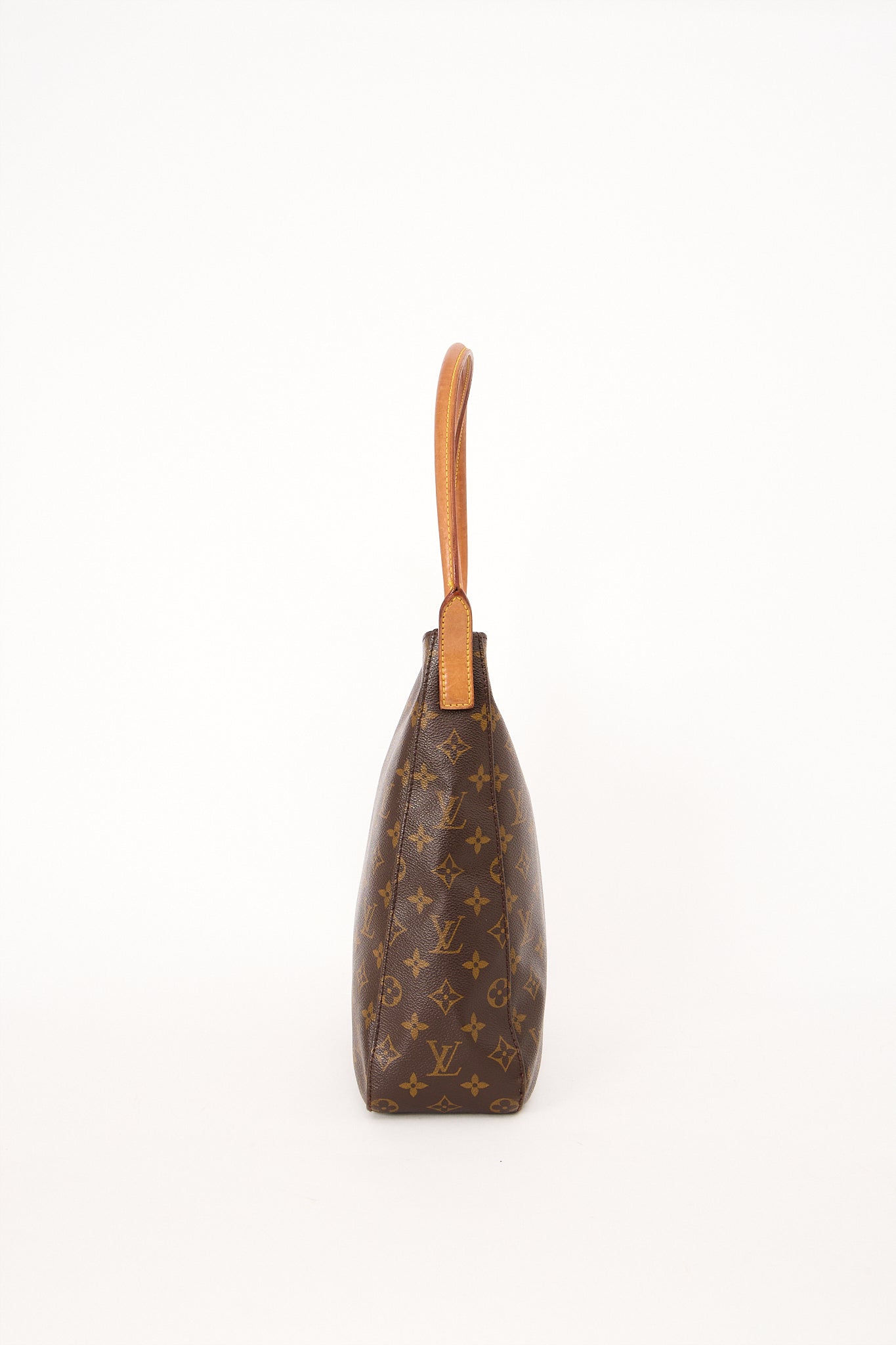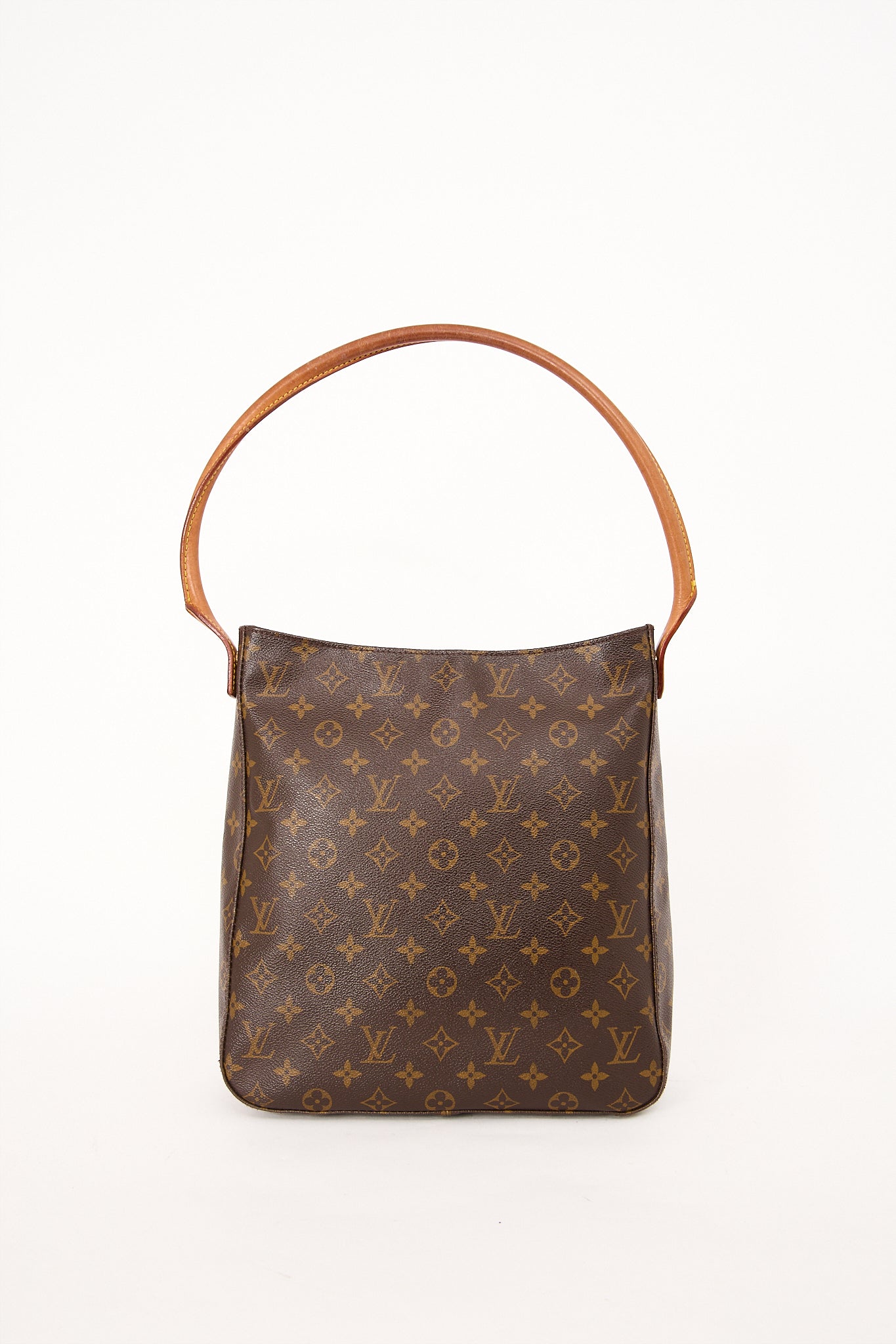 Oplev Louis Vuitton Looping GM, en klassisk taske i det ikoniske Monogram coated canvas med naturlige Vachetta læderdetaljer og gyldent metal. Taskens bløde mikrofiberforing tilføjer et strejf af luksus. Velegnet til både hverdag og aften, denne taske kan kombineres med en kjole og høje hæle for et elegant udtryk.