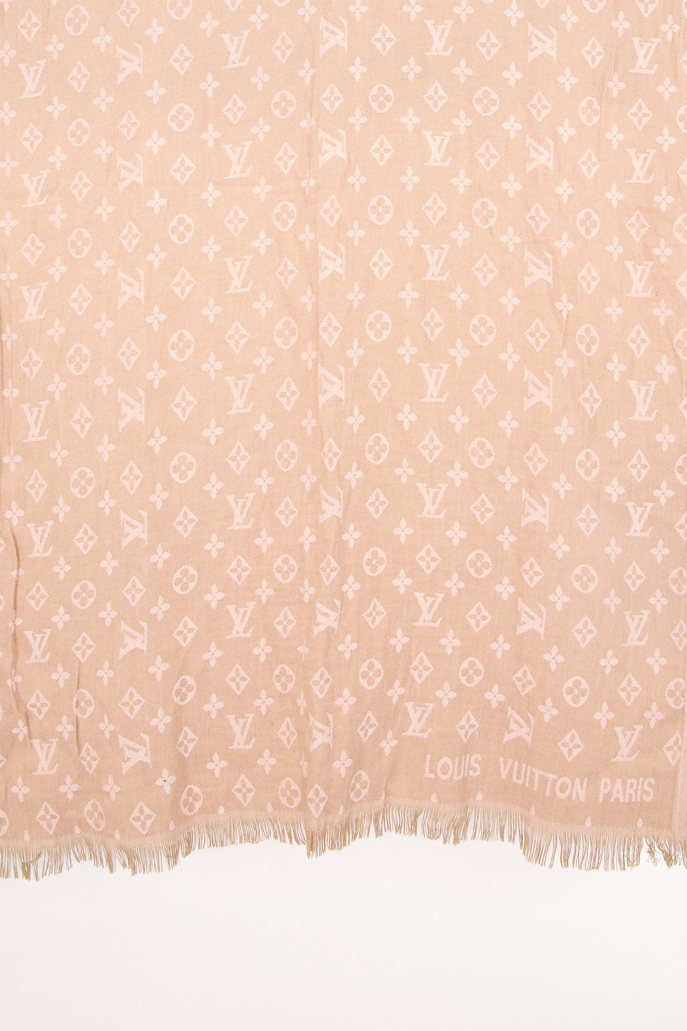 Elegant Louis Vuitton halstørklæde i luksuriøs silke- og uldblanding. Det tone-i-tone monogram giver et klassisk og sofistikeret udtryk, mens den bløde tekstur gør det perfekt til både hverdag og aften. Et tidløst accessory, der tilføjer et strejf af parisisk elegance til ethvert outfit.