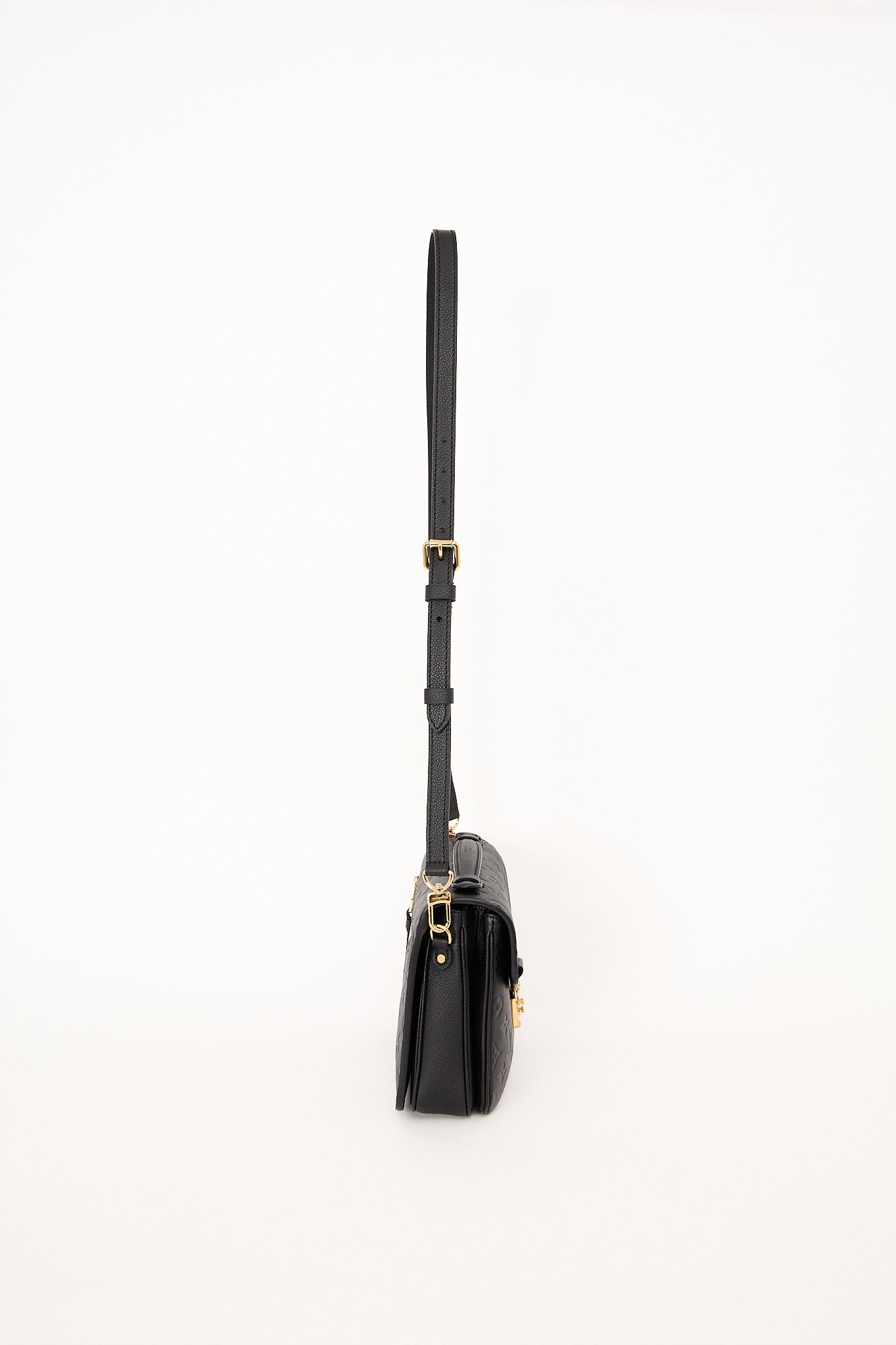 Denne Louis Vuitton Pochette Métis i Monogram Empreinte-læder er en af LV’s mest eftertragtede modeller. Det sorte, prægede læder giver et eksklusivt og moderne udtryk, mens den ikoniske S-lock i guld tilføjer et elegant, klassisk LV-finish. Taskens strukturerede form gør den perfekt til både hverdags- og aftenbrug, og den kan styles med alt fra trenchcoat og jeans til kjoler og mere polerede looks. En tidløs favorit med et luksuriøst Louis Vuitton-touch.