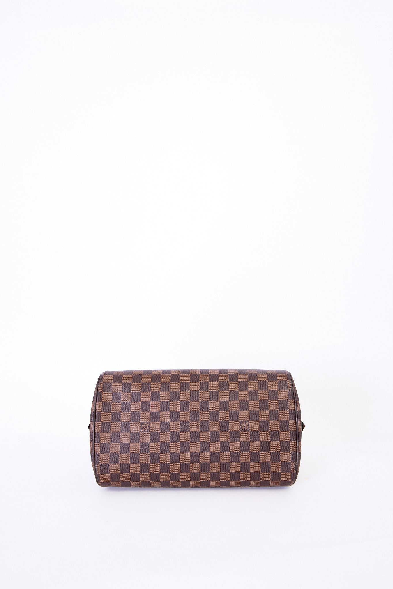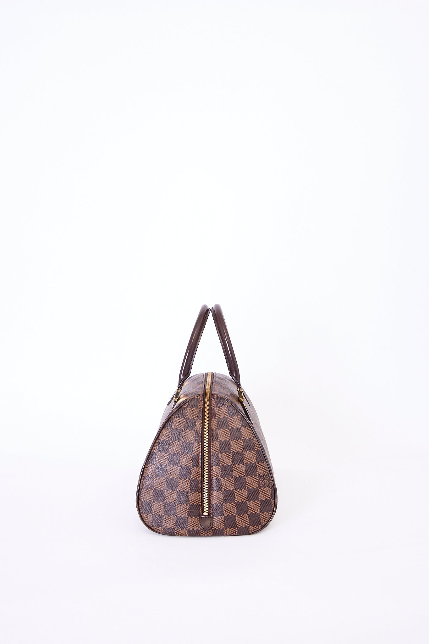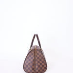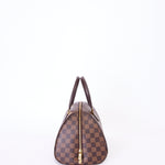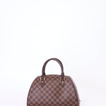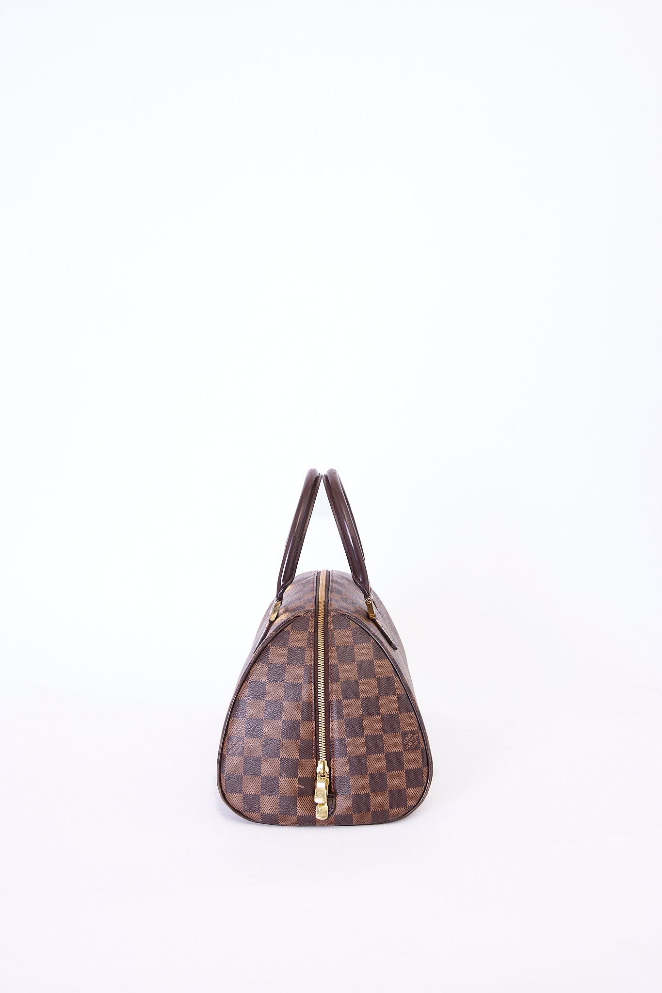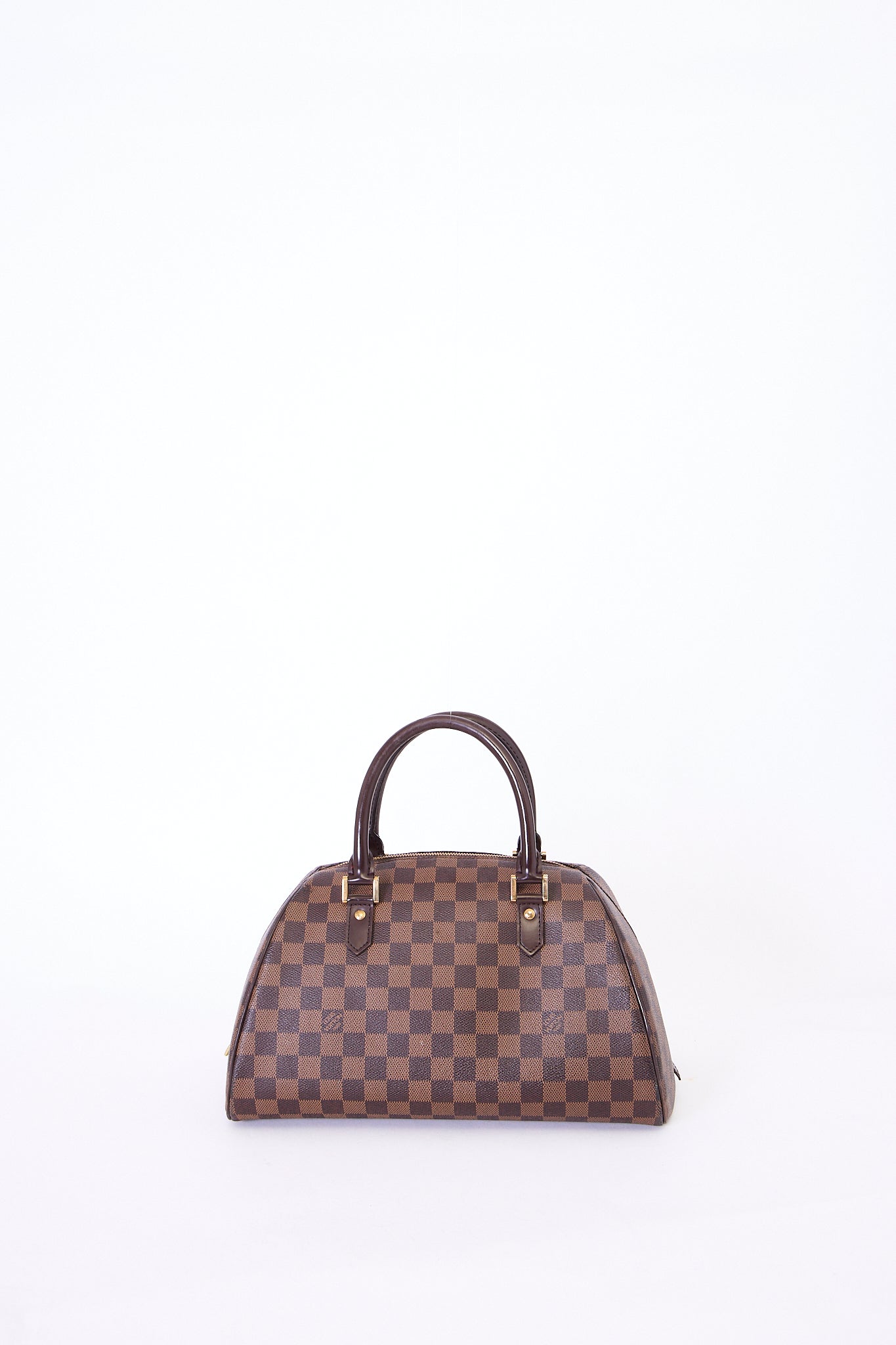 Oplev elegance med Louis Vuitton Ribera MM. Tasken er fremstillet af holdbart Damier Ebene-coated canvas med chokoladebrun læderkant og gyldne detaljer. Designet med dobbelte rullehåndtag og praktisk lynlåslukning, er den velegnet til både daglig brug og festlige anledninger. Kombinér den med et klassisk outfit for et sofistikeret look.