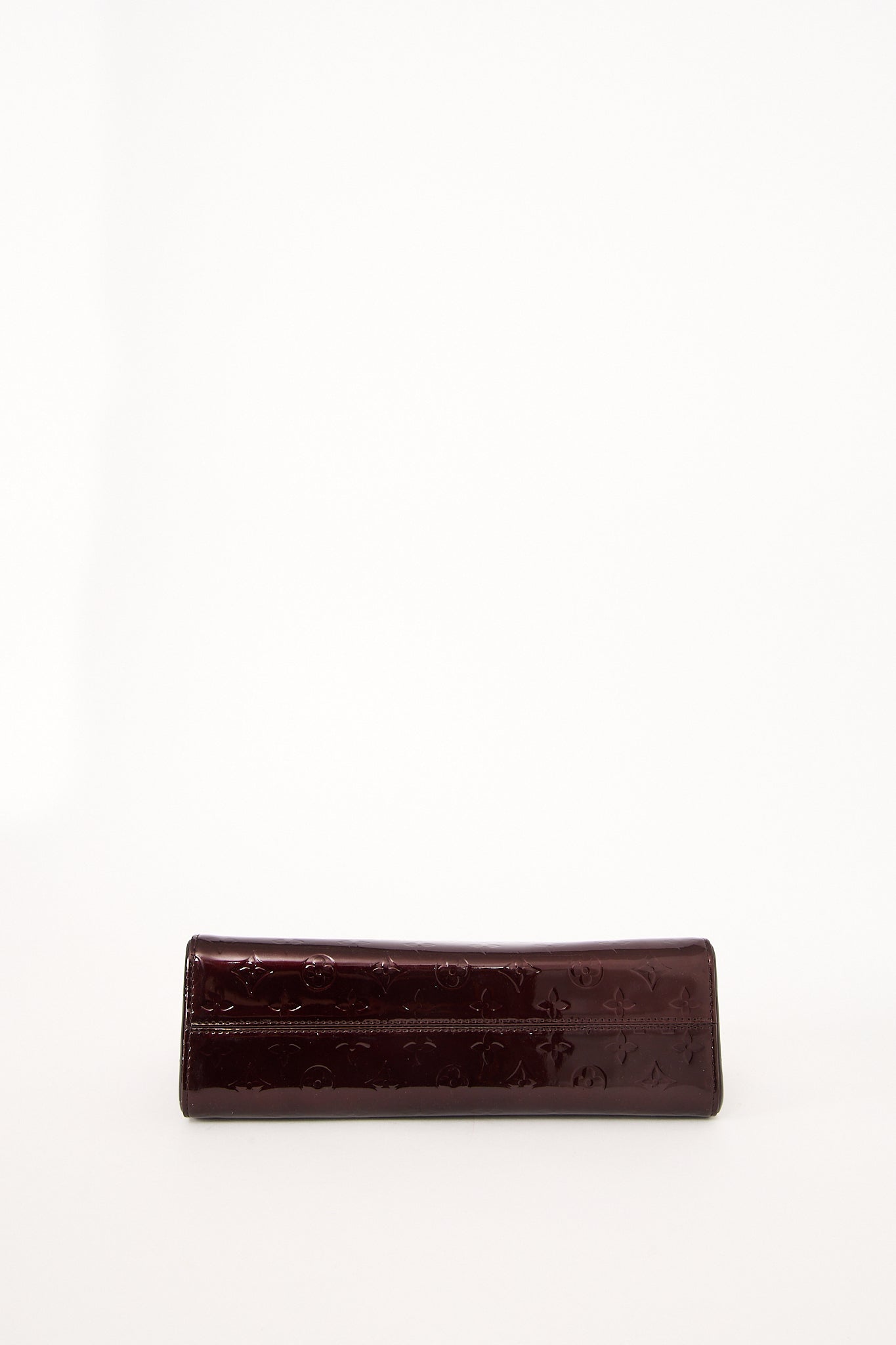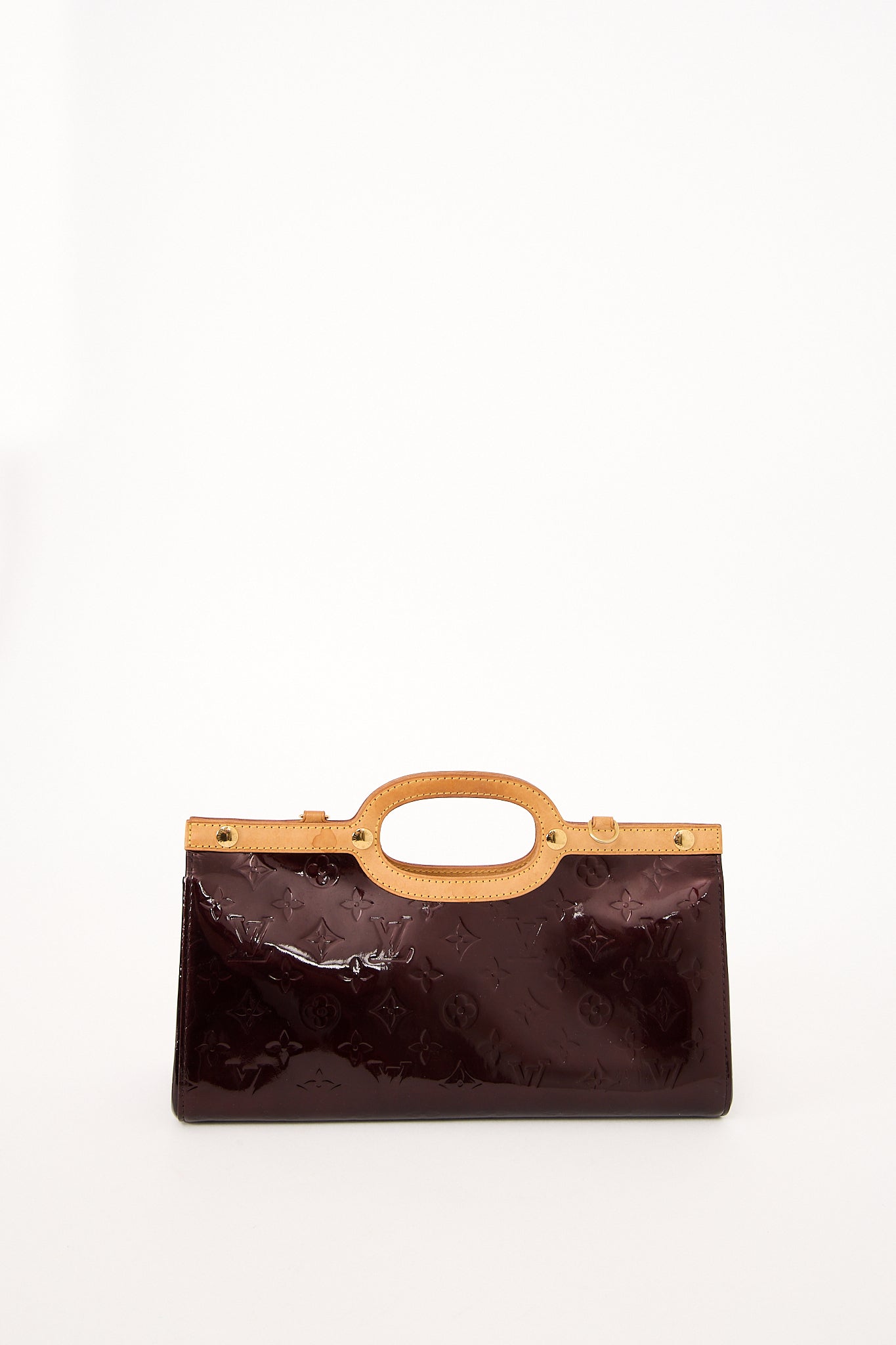 Elegant Louis Vuitton Roxbury Drive i Vernis med det præget LV-monogram og smukke vachetta-læderdetaljer. Roxbury Drive er en eftertragtet statement-model med et sofistikeret vintage-look, der fungerer perfekt som aften-/eventtaske, men også som chic hverdagsfavorit. Den karakteristiske topkant i naturfarvet læder og de fine guldfarvede nitter giver tasken et eksklusivt, klassisk Louis Vuitton-udtryk.