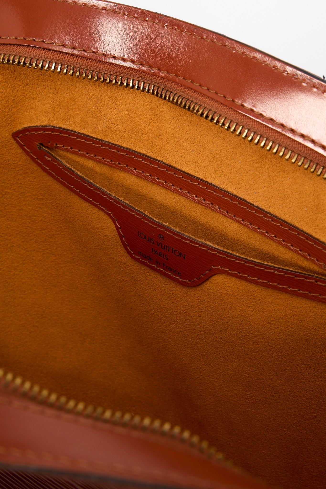 Oplev det tidløse design af Louis Vuitton Saint Jacques, fremstillet af det ikoniske Epi-læder med sin karakteristiske tekstur. Tasken inkluderer læder skulderremme og en central lynlåslomme, med en microfiber foring. Denne taske komplementerer en elegant kjole og tilføjer et sofistikeret udtryk.