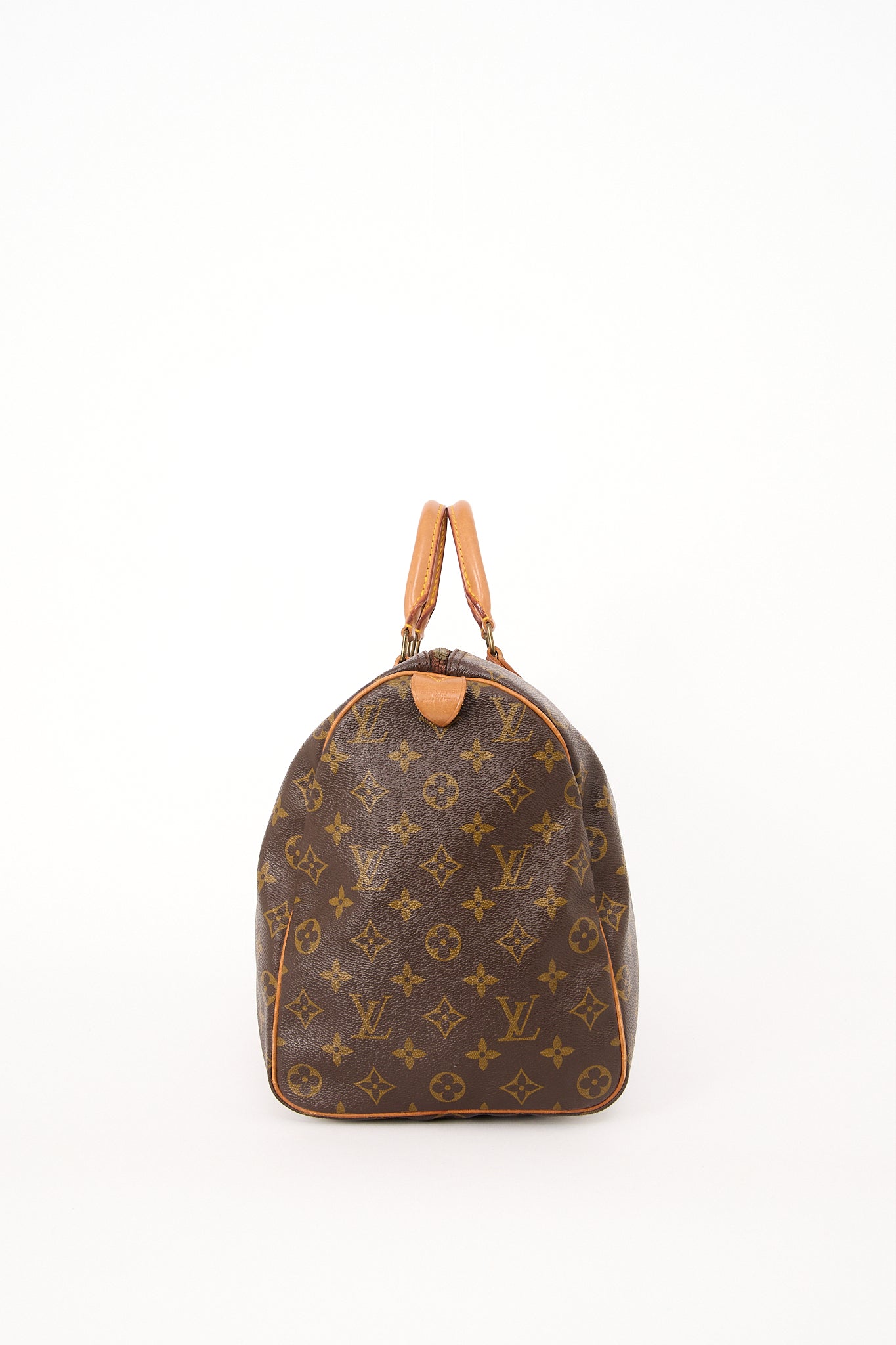 Louis Vuitton Speedy 40 i det ikoniske Monogram Canvas med vachetta-læderdetaljer og de karakteristiske rullehanke. Speedy 40 er den større udgave af den klassiske Speedy og er derfor ideel som rummelig hverdagstaske, city-bag eller til en kort weekendtur. Designet er tidløst og let at style, og monogram-canvas er kendt for sin holdbarhed og smukke patinering over tid.