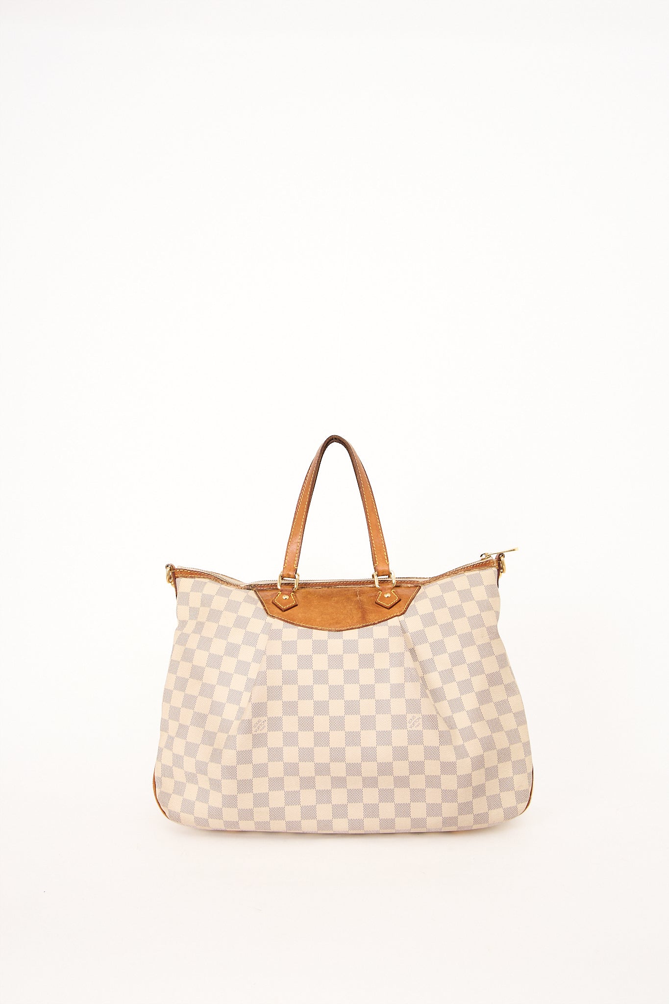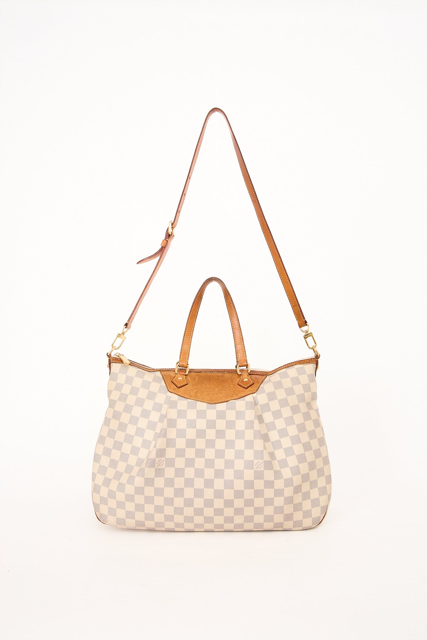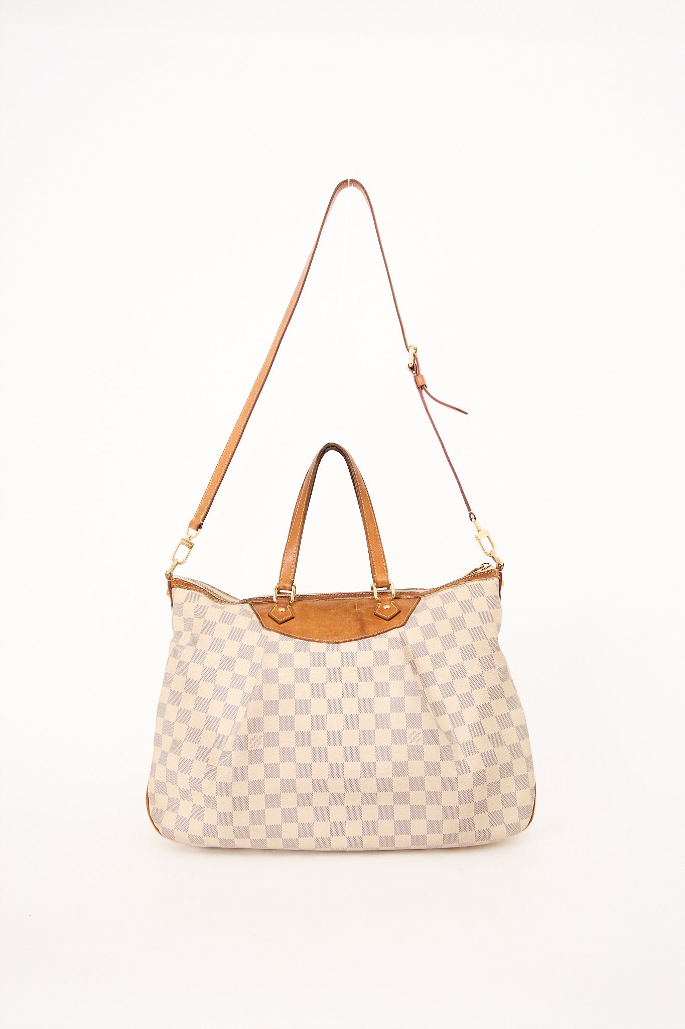 Elegant Louis Vuitton Syracuse GM i det ikoniske Damier Azur canvas med detaljer i naturligt vachetta-læder og guldfarvet hardware. Tasken har en struktureret silhuet med god plads, justerbar skulderrem og diskrete LV-signaturdetaljer. Et stilrent og klassisk design, perfekt til både hverdagsbrug og rejse. Standen bærer præg af patina på læderet, som giver tasken charme og karakter.