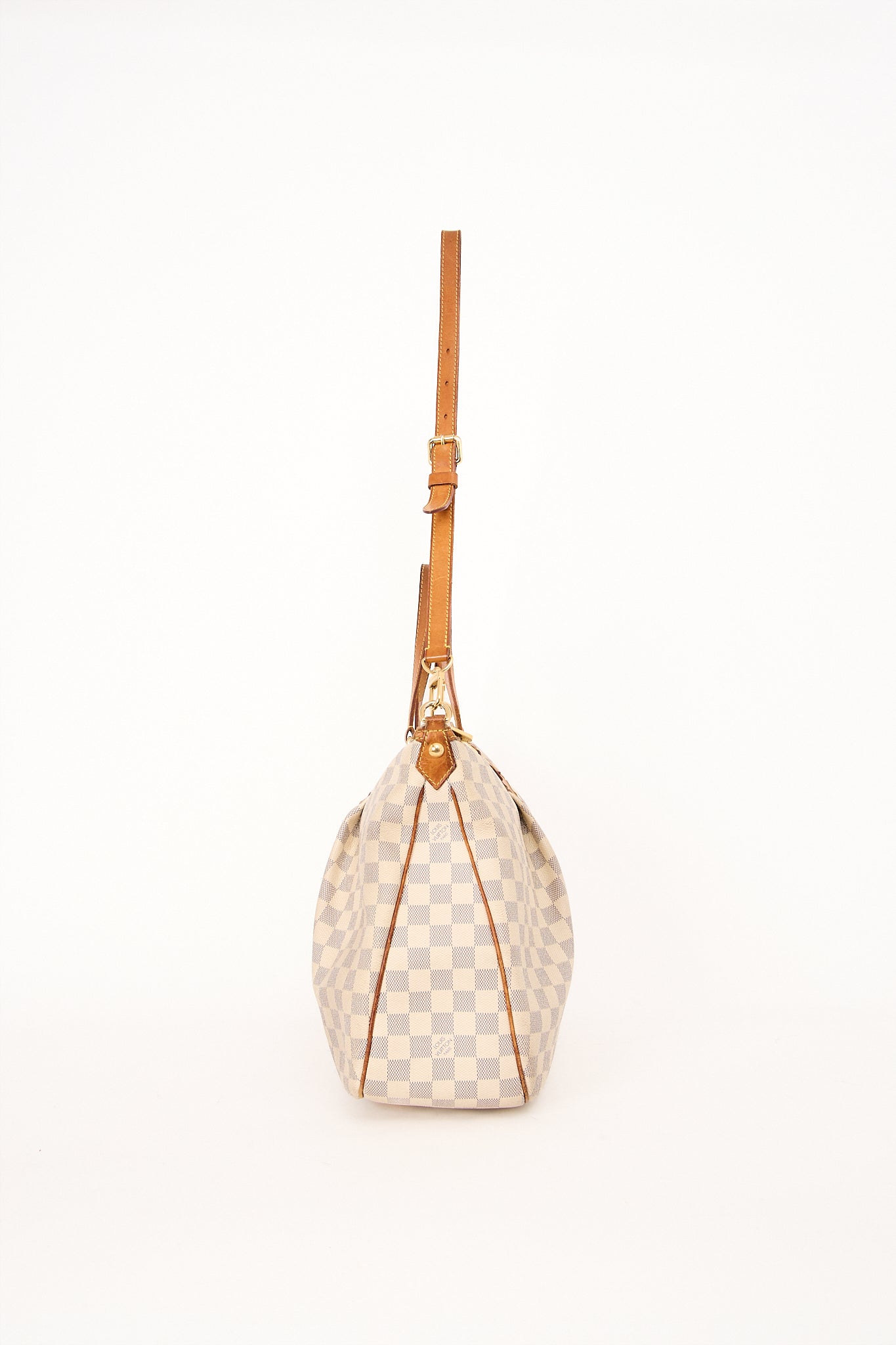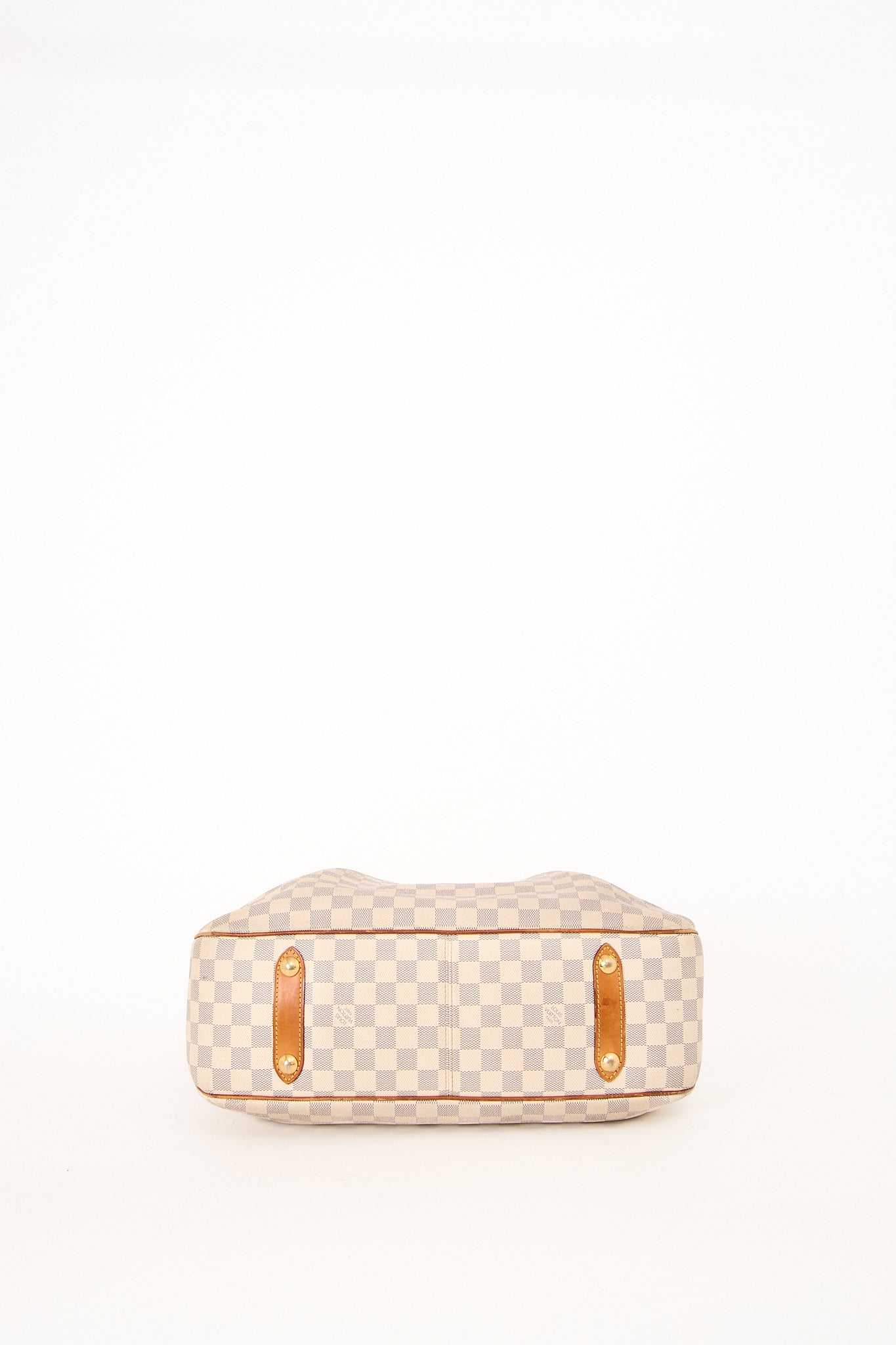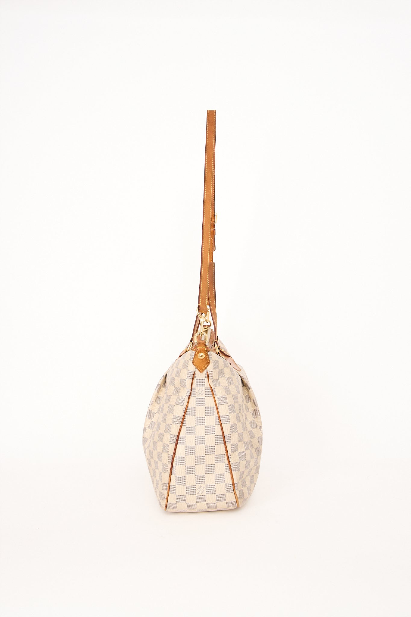 Elegant Louis Vuitton Syracuse GM i det ikoniske Damier Azur canvas med detaljer i naturligt vachetta-læder og guldfarvet hardware. Tasken har en struktureret silhuet med god plads, justerbar skulderrem og diskrete LV-signaturdetaljer. Et stilrent og klassisk design, perfekt til både hverdagsbrug og rejse. Standen bærer præg af patina på læderet, som giver tasken charme og karakter.