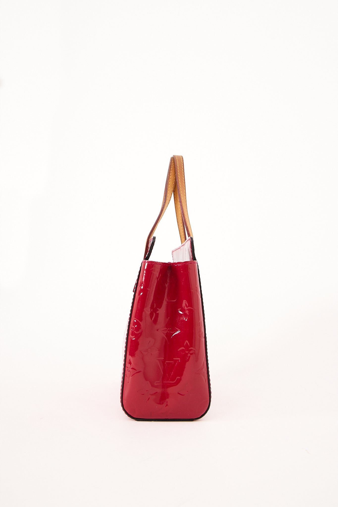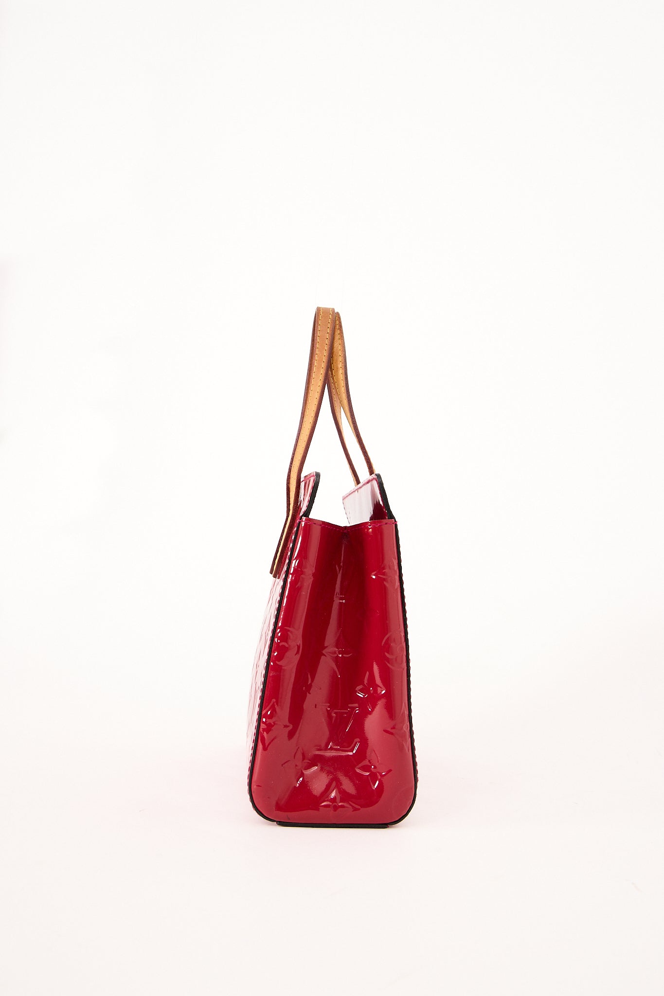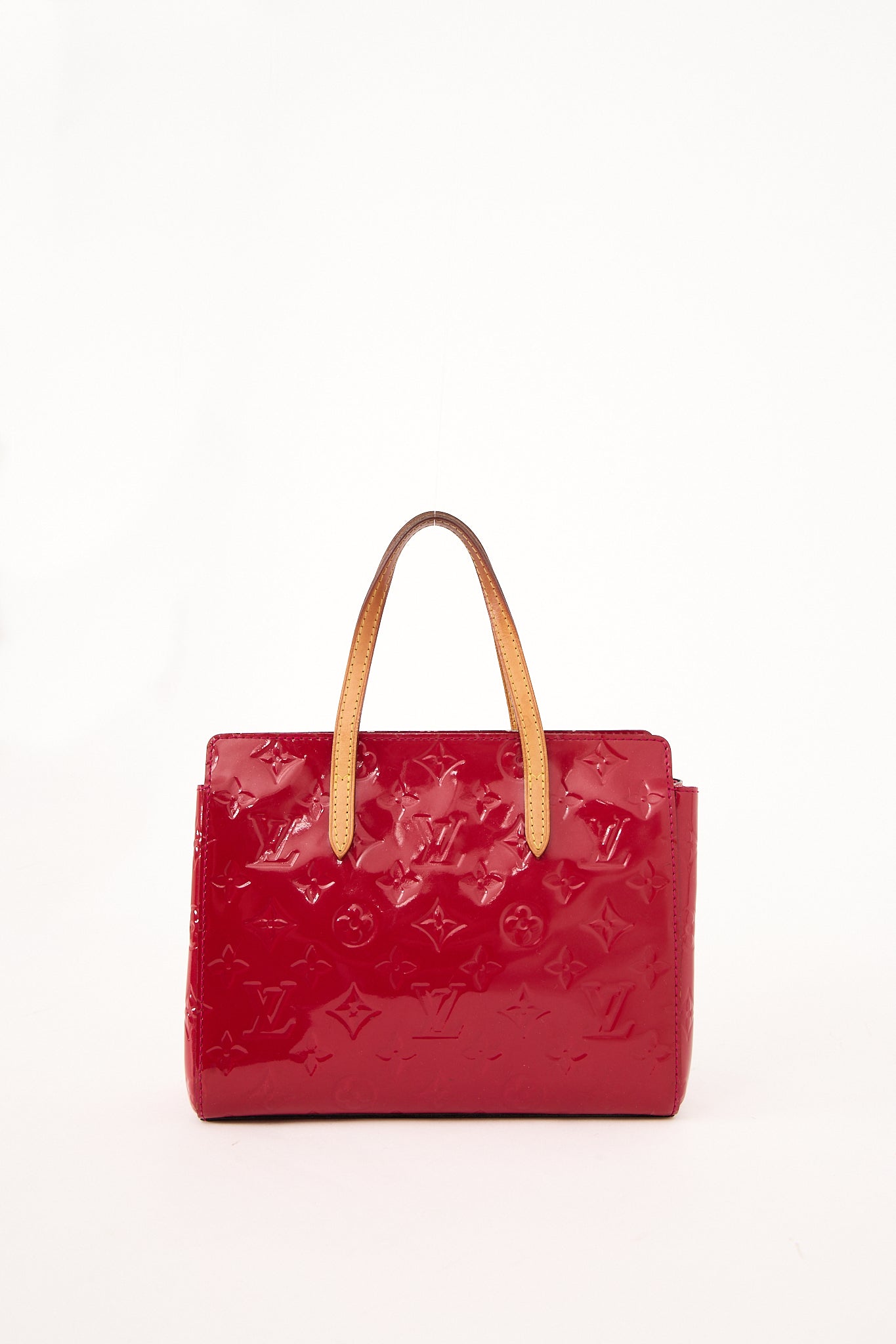 Smuk og livlig Louis Vuitton Reade PM i blankt rødt Monogram Vernis-læder med håndtag i naturligt vachetta-læder og guldfarvet hardware. Tasken kombinerer et elegant, feminint udtryk med Louis Vuittons karakteristiske håndværk. Den kompakte størrelse gør den ideel til hverdag eller som en chic lille shopper, og den glansfulde lakfinish tilføjer et luksuriøst touch til ethvert outfit.
