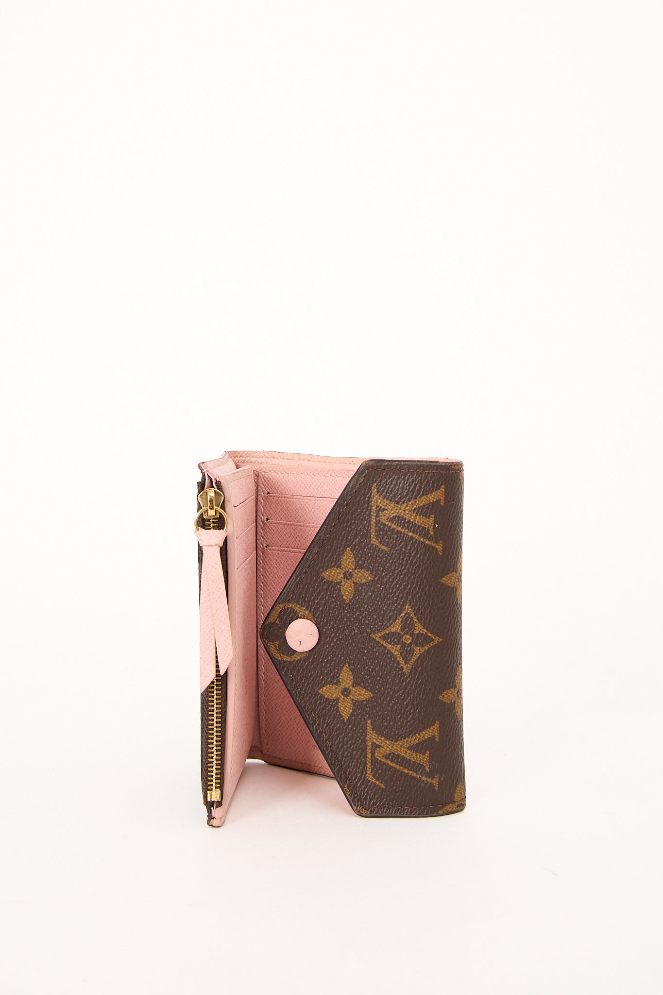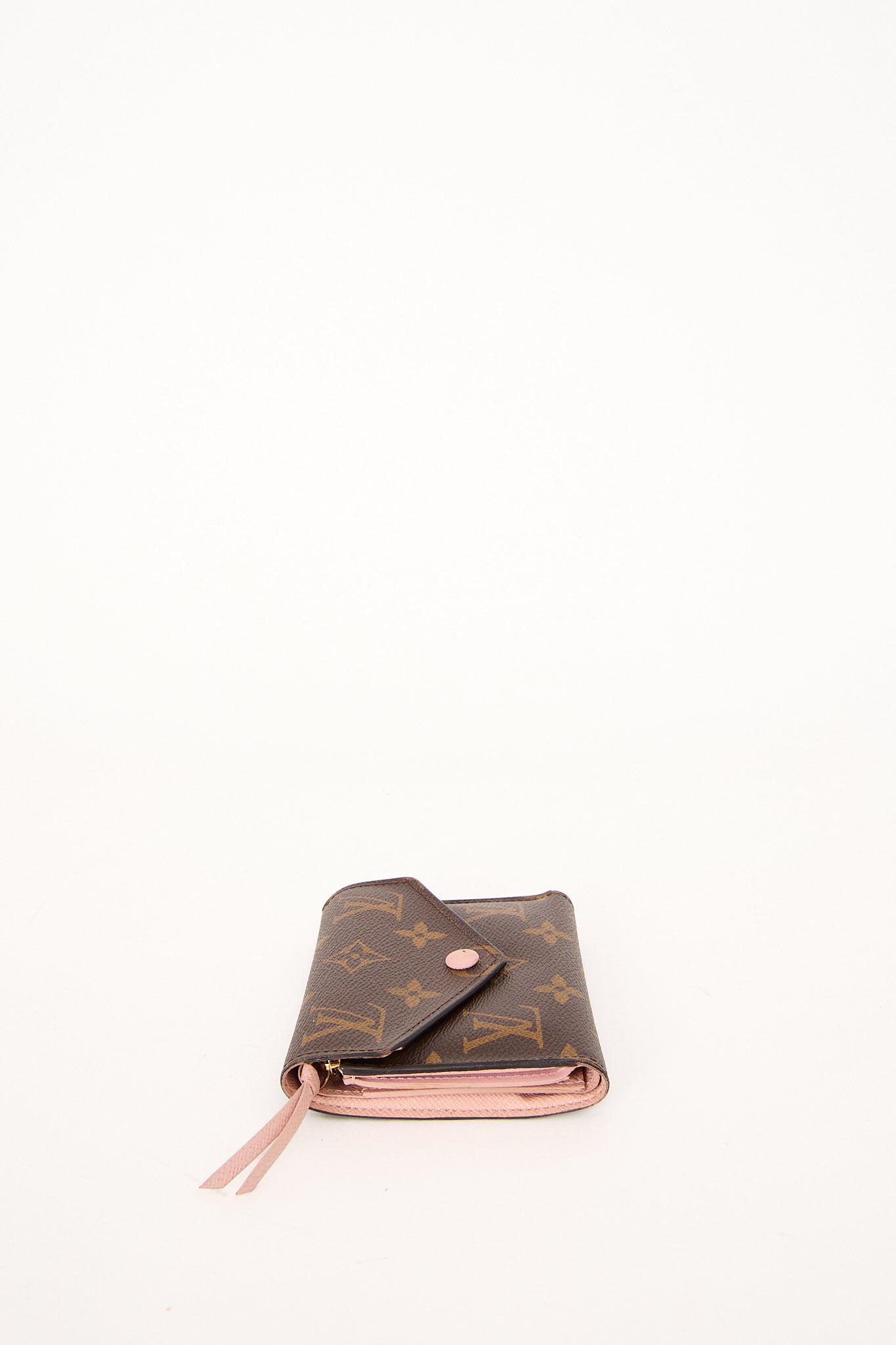 Den populære Louis Vuitton Victorine Wallet er en kompakt, men rummelig pung i klassisk monogram canvas. Indersiden i den smukke lyserøde nuance Rose Ballerine giver et feminint touch. Designet rummer plads til kort, mønter og sedler – perfekt til hverdagen eller som supplement til din Louis Vuitton taske.