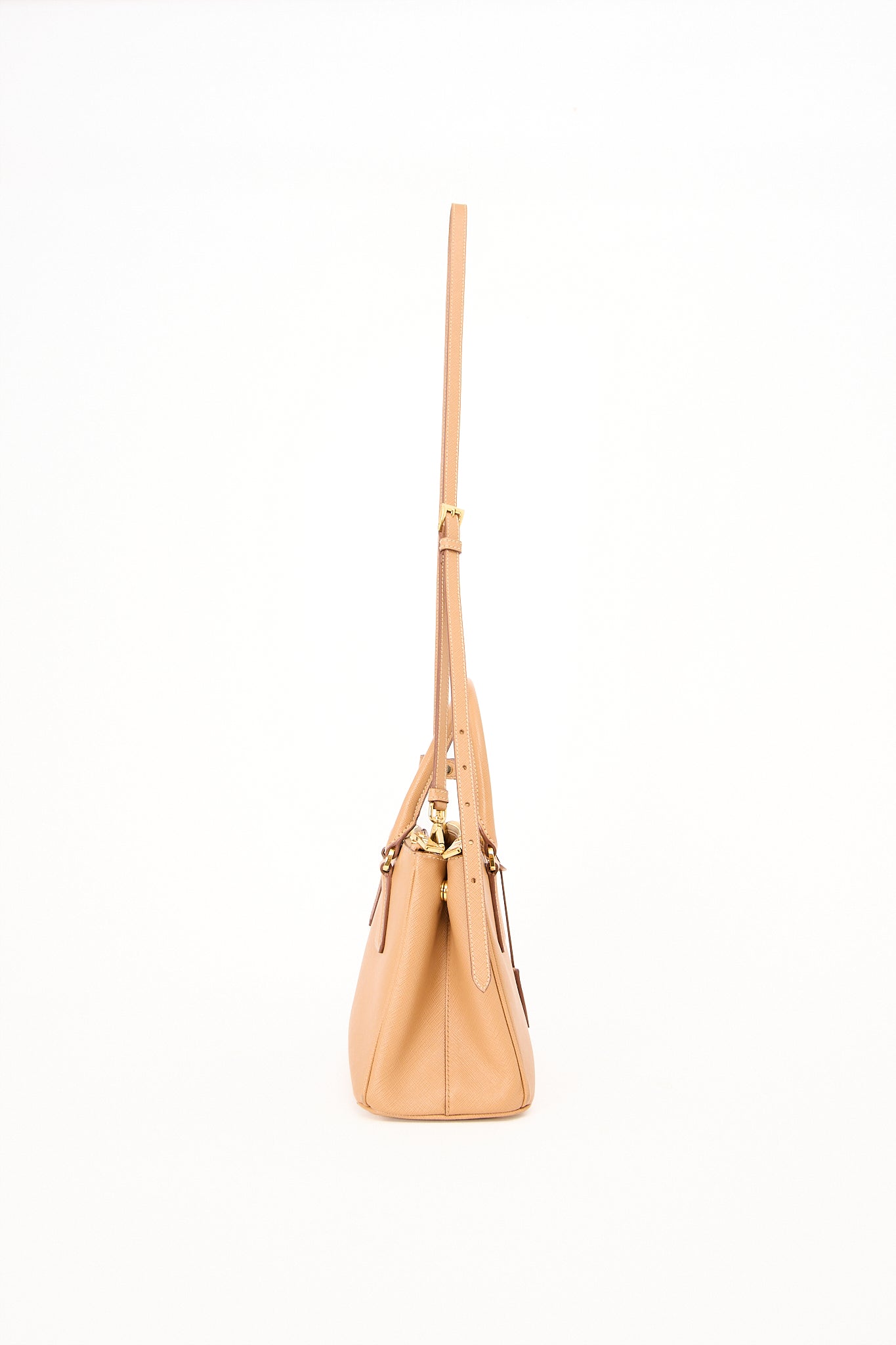Den ikoniske Prada Galleria er et symbol på tidløs elegance og italiensk håndværk. Tasken er fremstillet i Pradas karakteristiske Saffiano-læder – kendt for sin struktur og holdbarhed – og prydet med det klassiske trekantede logo i guldfarvet metal. Med sin strukturerede form, dobbelte håndtag og aftagelige skulderrem er Galleria både praktisk og sofistikeret – perfekt til både hverdagsbrug og kontor.