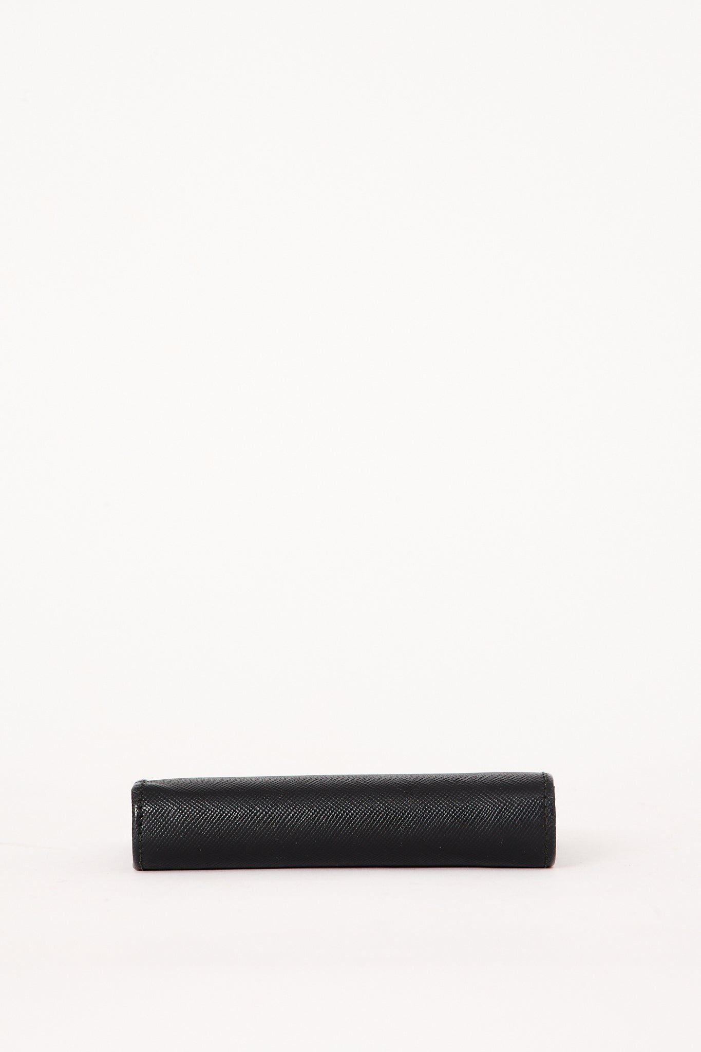 Denne Prada pung er lavet i det ikoniske Saffiano-læder, kendt for sin struktur, holdbarhed og luksuriøse finish. Det klassiske trekant-logo giver et sofistikeret Prada-look, mens det tidløse sorte design passer til enhver stil. Perfekt som elegant hverdags-accessory og nem at matche med både tasker og outfits.