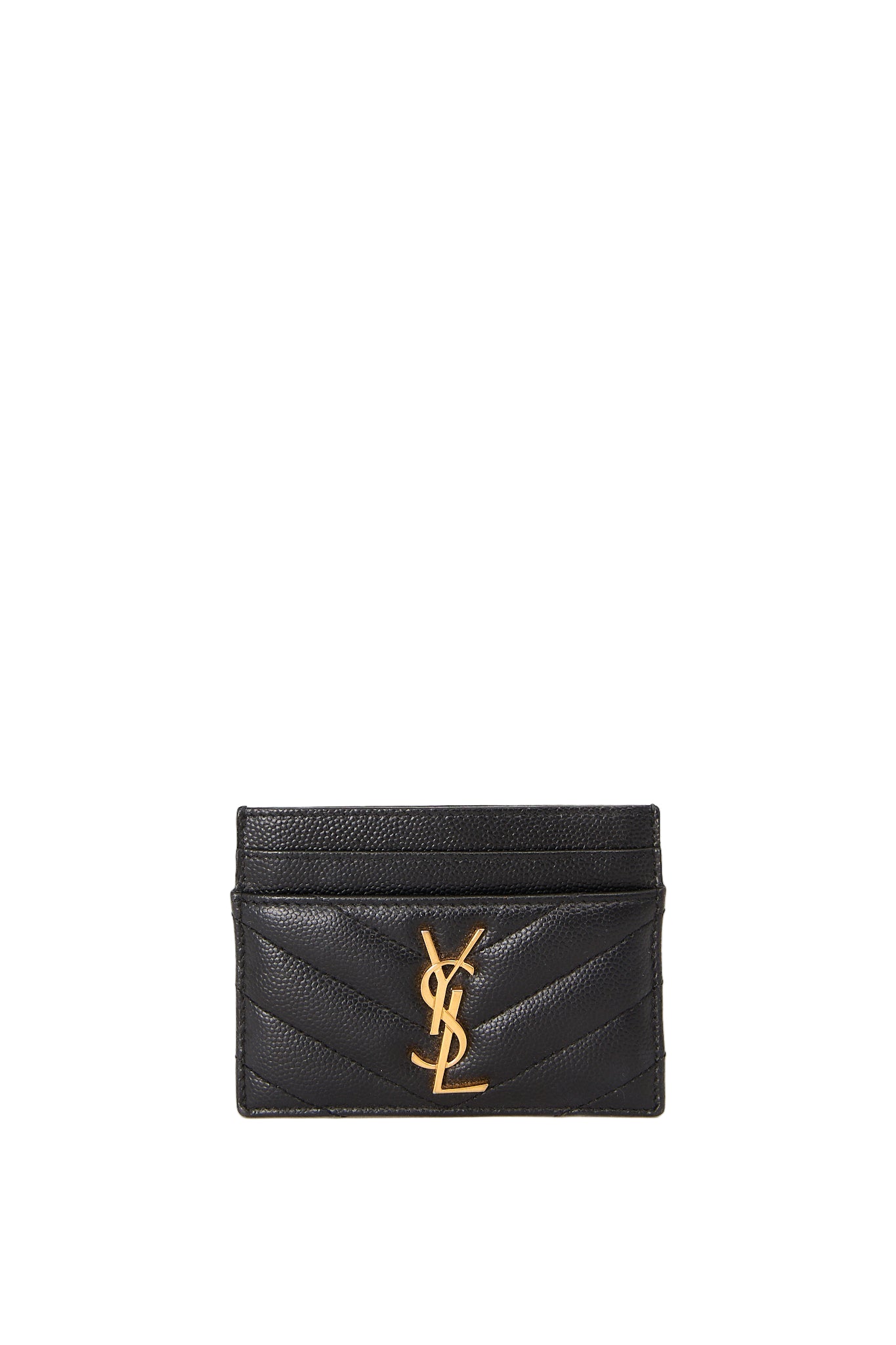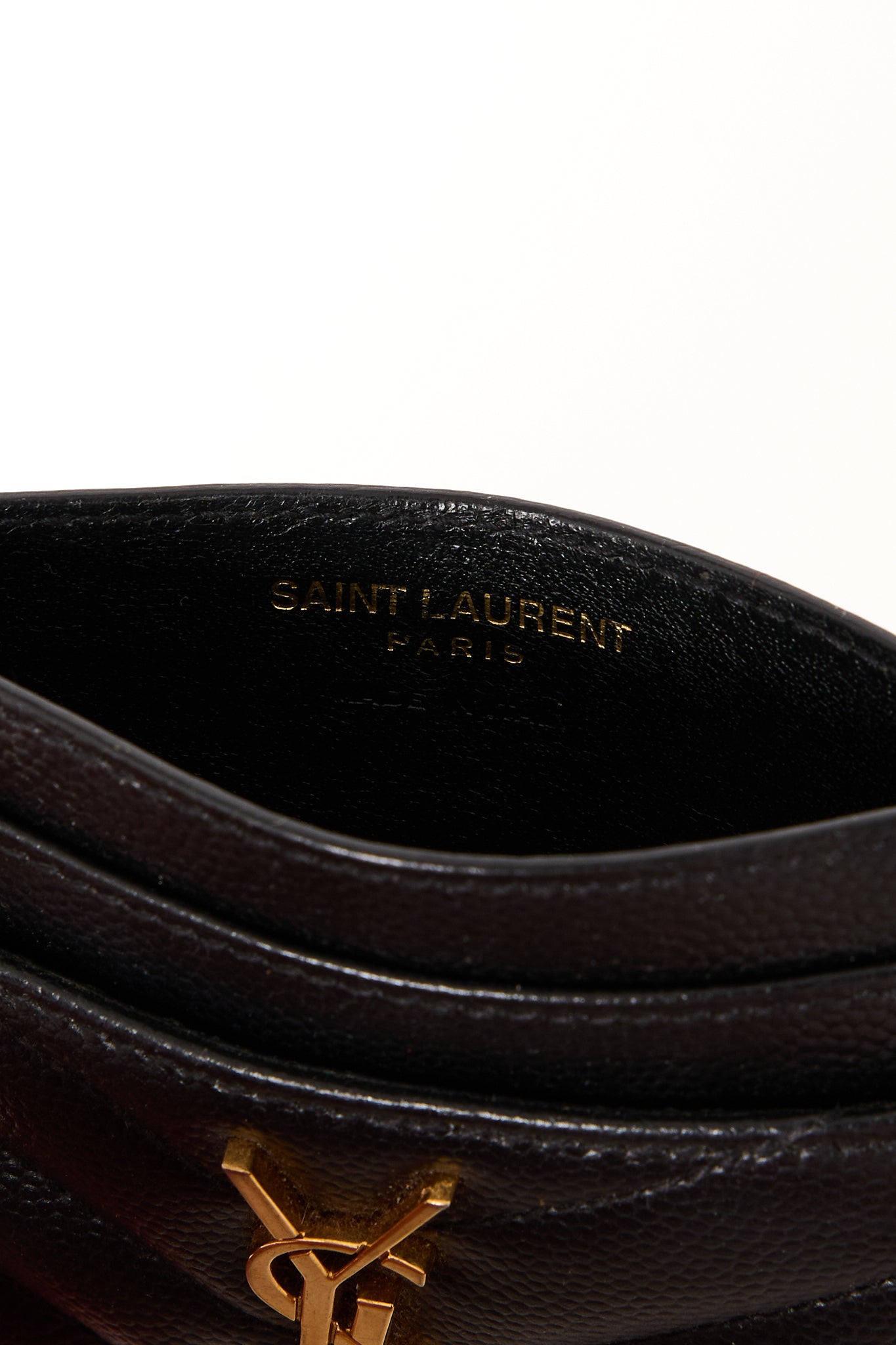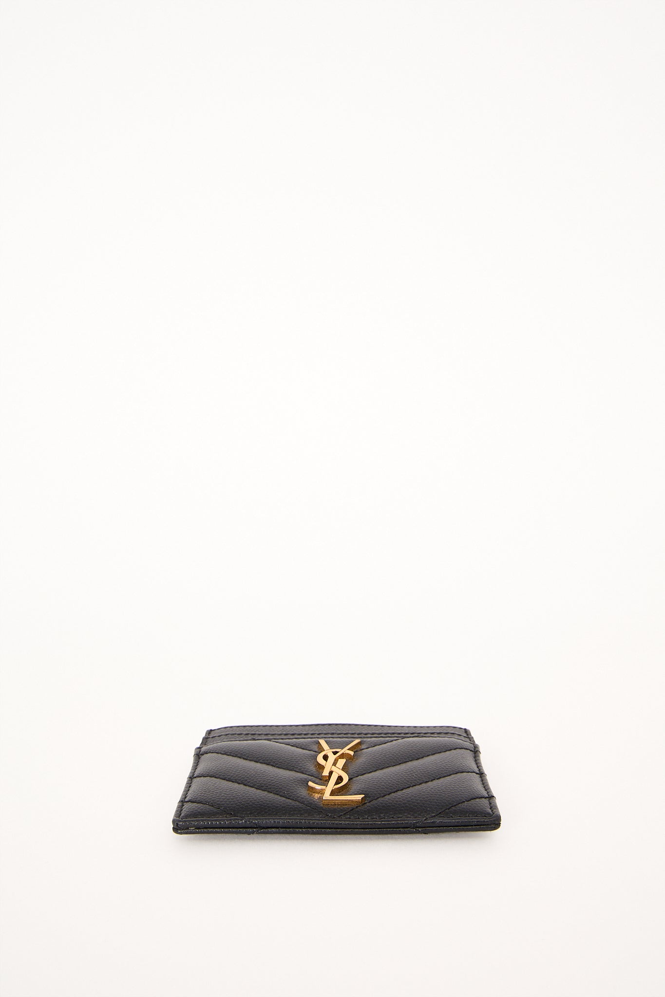 Denne Saint Laurent Monogram Card Holder er et stilrent musthave, der kombinerer funktionalitet og luksus i ét. Det sorte, quiltede læder giver et eksklusivt udtryk, mens det ikoniske guld YSL-logo tilfører et elegant touch. Perfekt i enhver taske eller lomme og ideel til dig, der ønsker et tidløst og minimalistisk accessory.