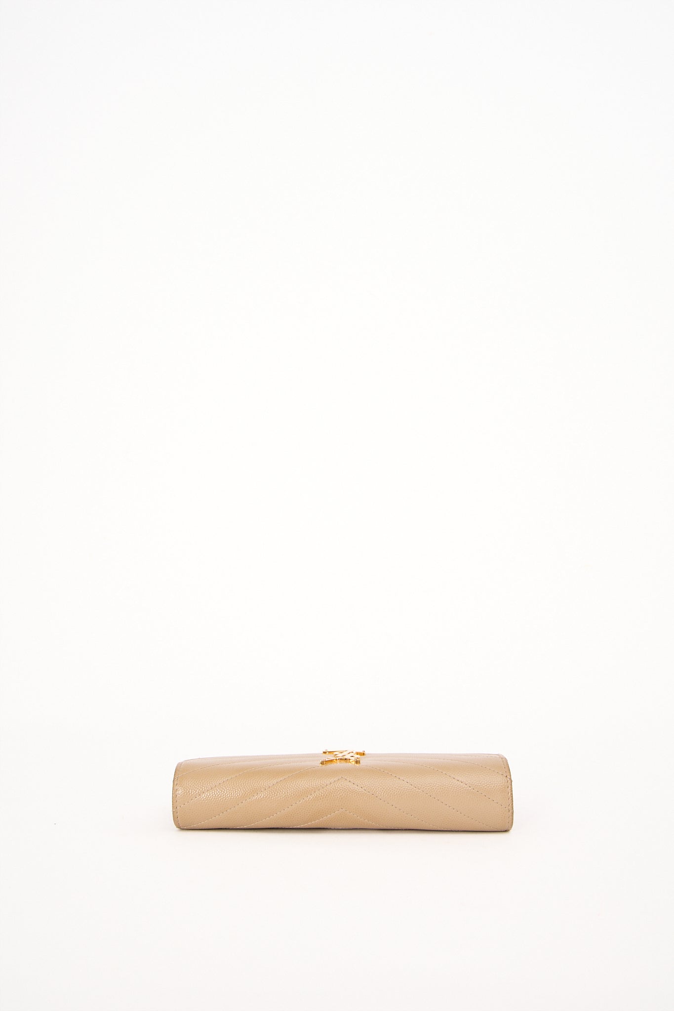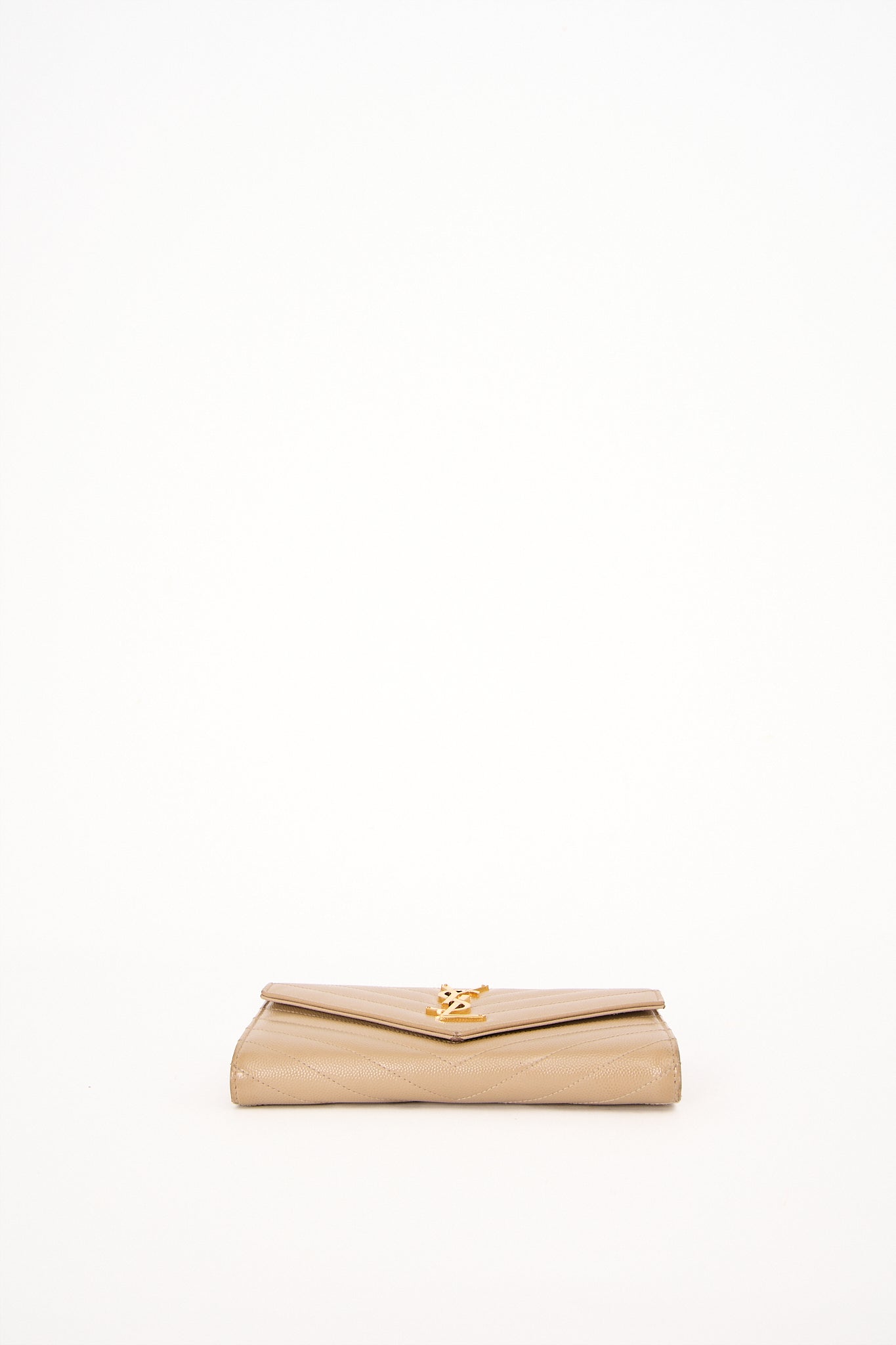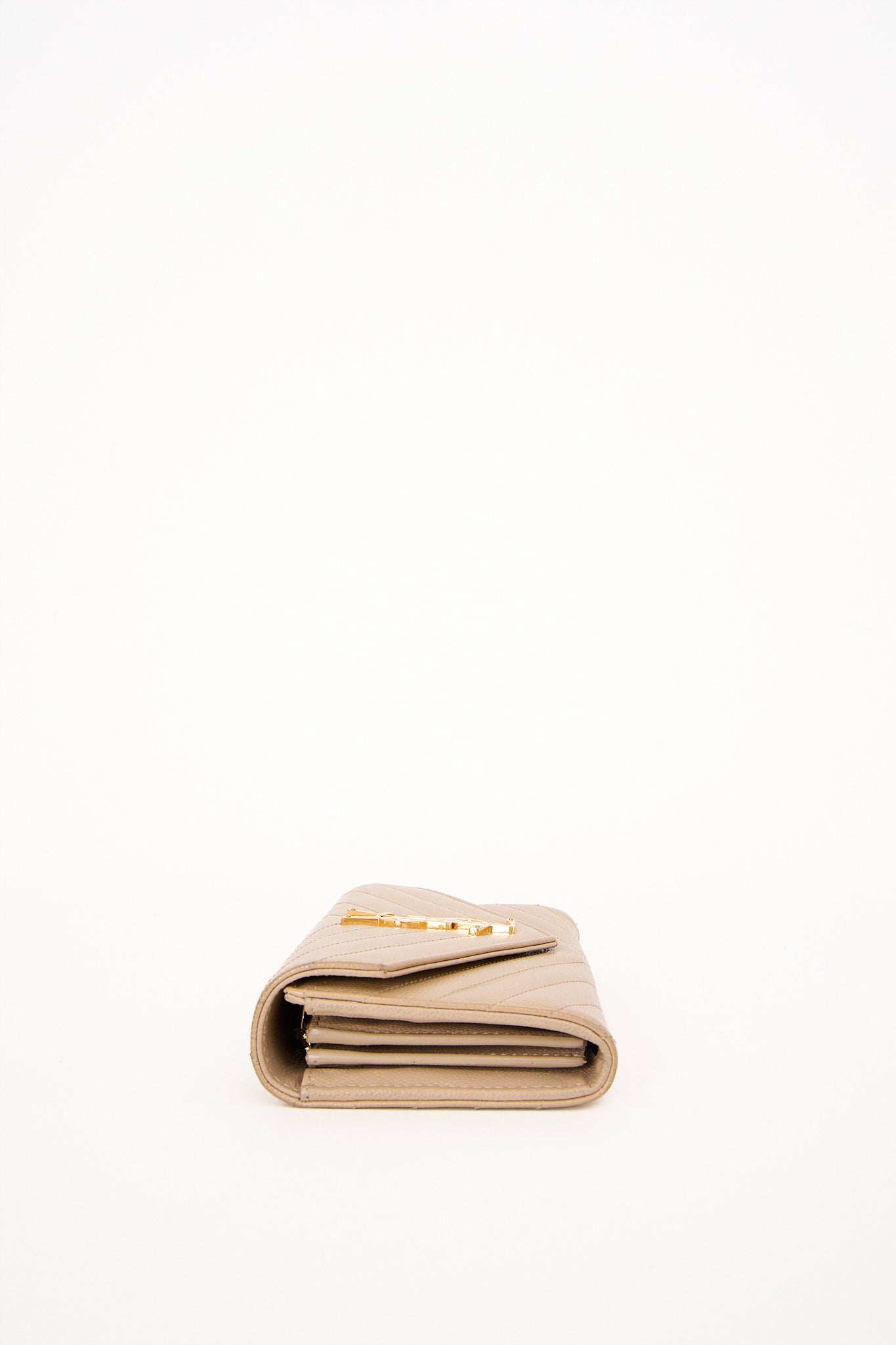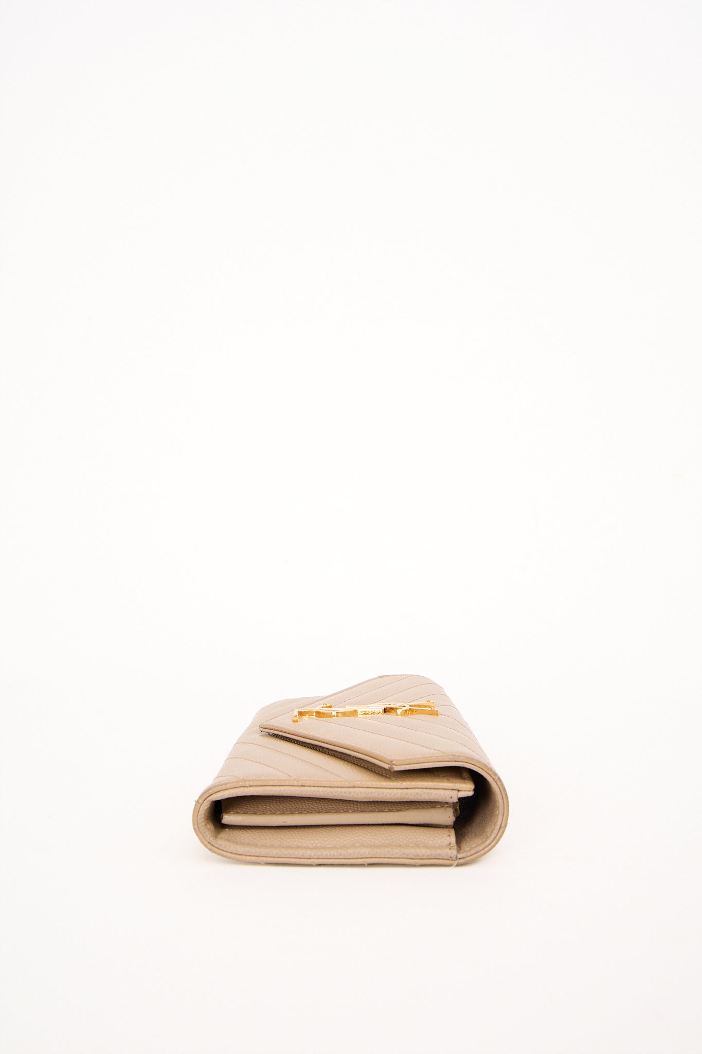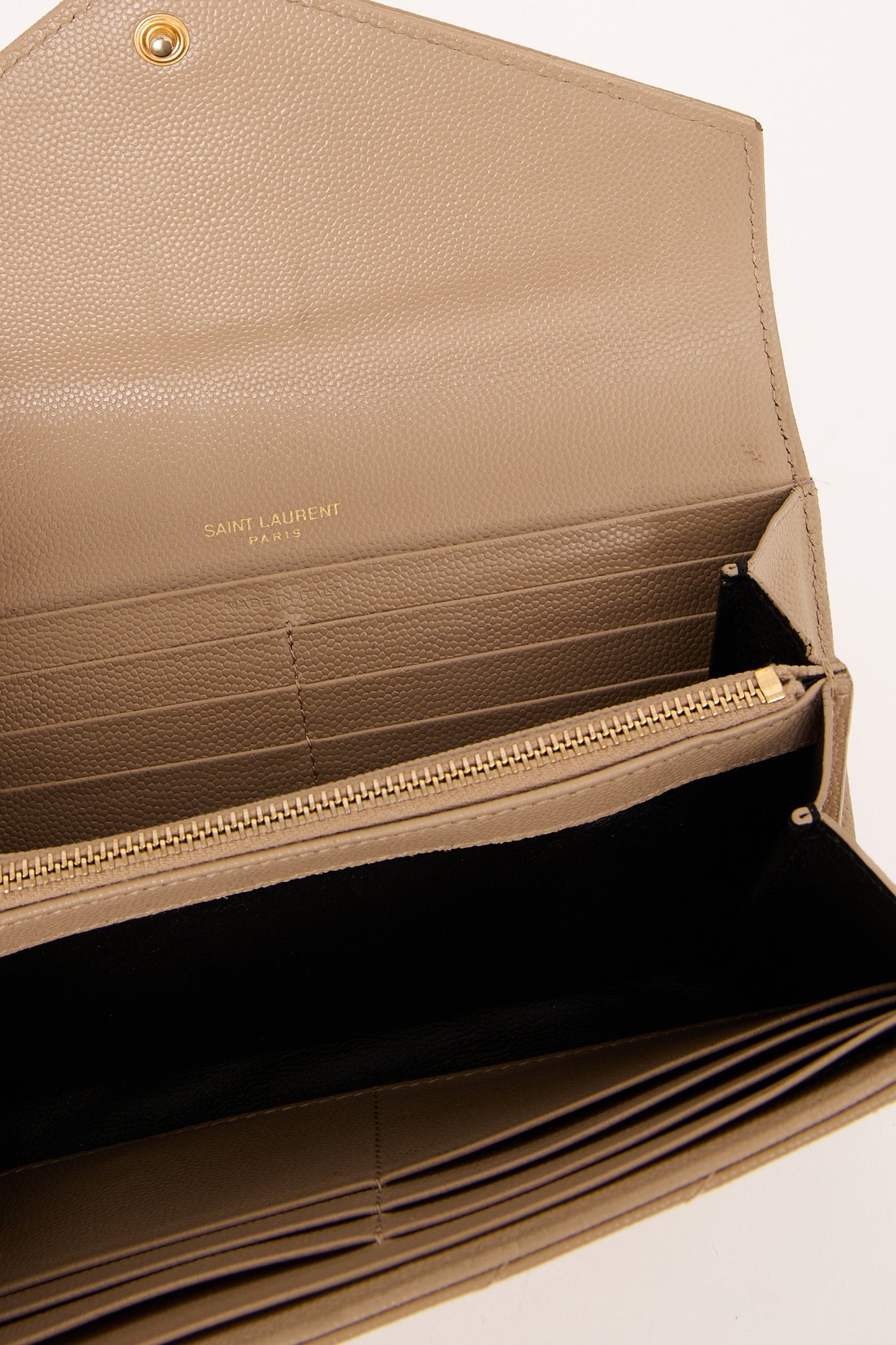 Oplev Yves Saint Laurent CASSANDRE WALLET – en kombination af tidløs elegance og luksus. Denne pung har en smukt quiltet overflade og fornemme messingdetaljer, der fås i sølv, guld eller sort. Den tilføjer et sofistikeret touch til enhver garderobe og passer godt sammen med en klassisk trenchcoat for et chic udtryk.