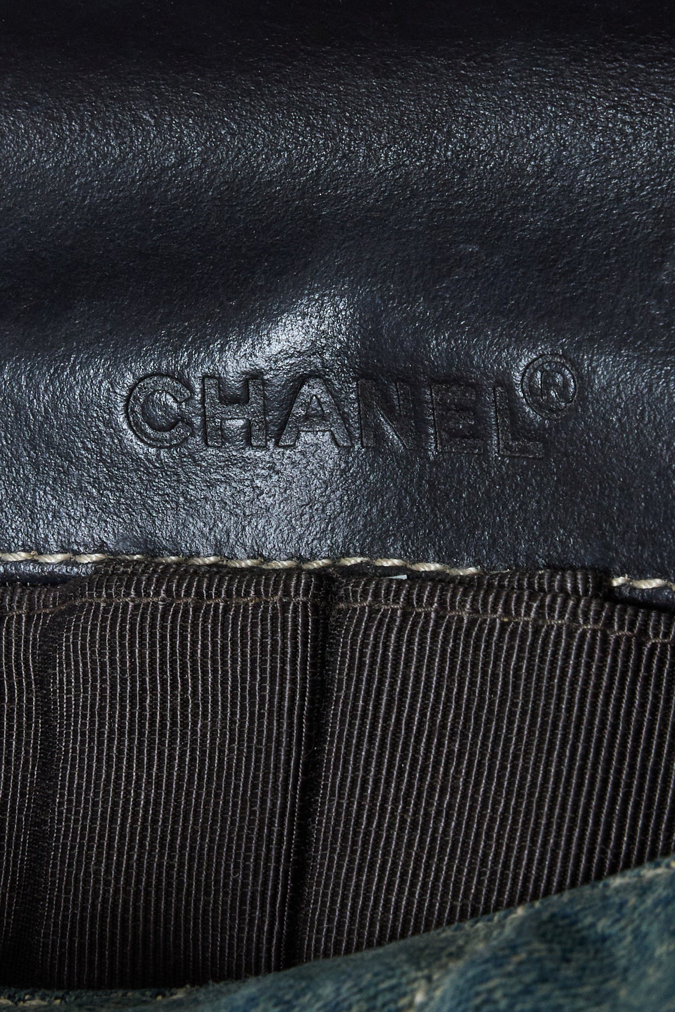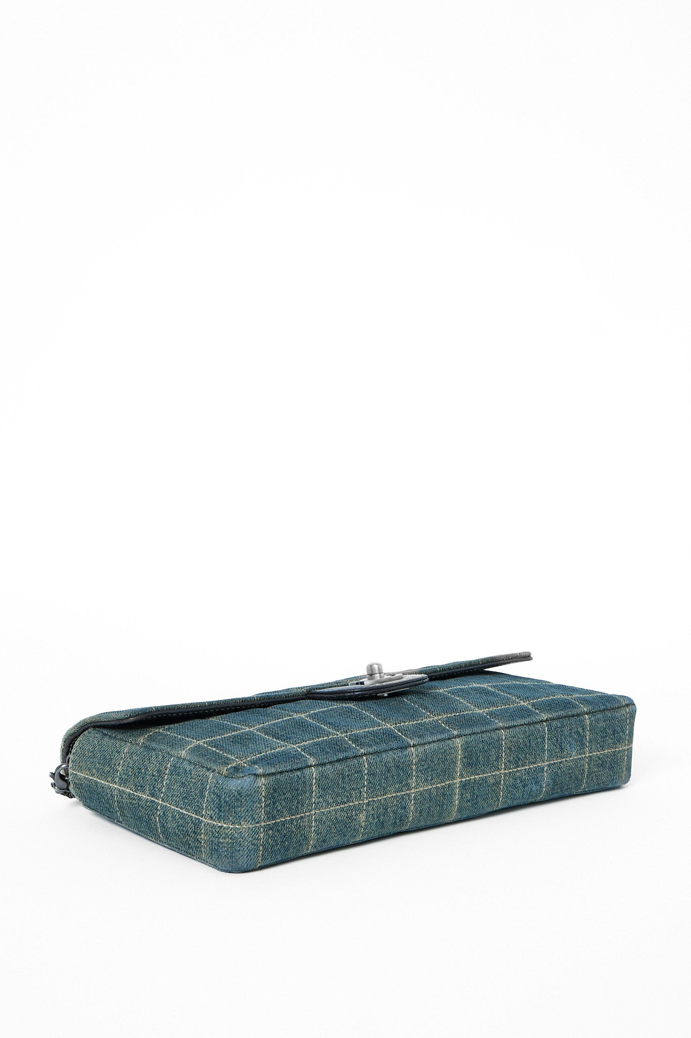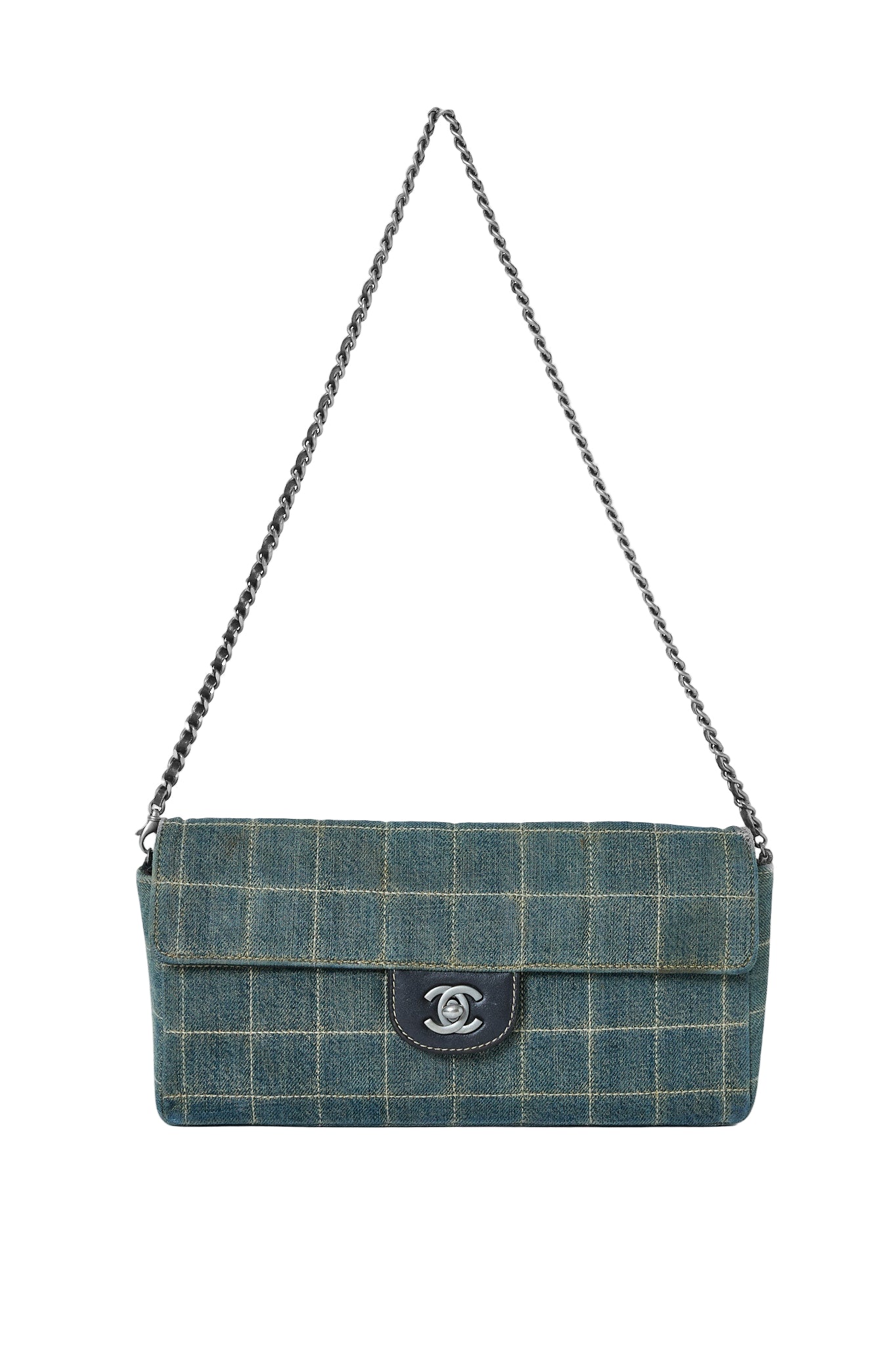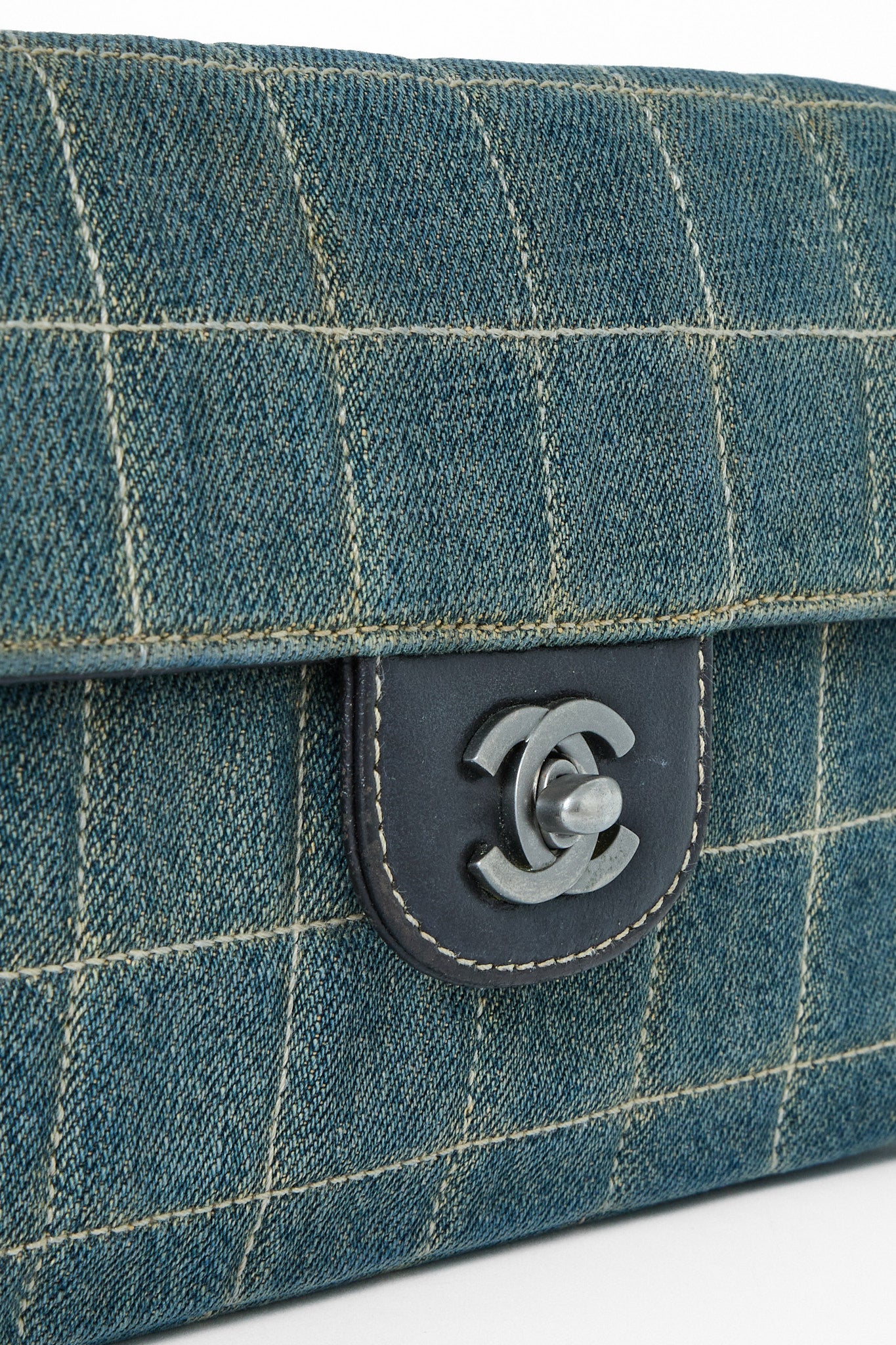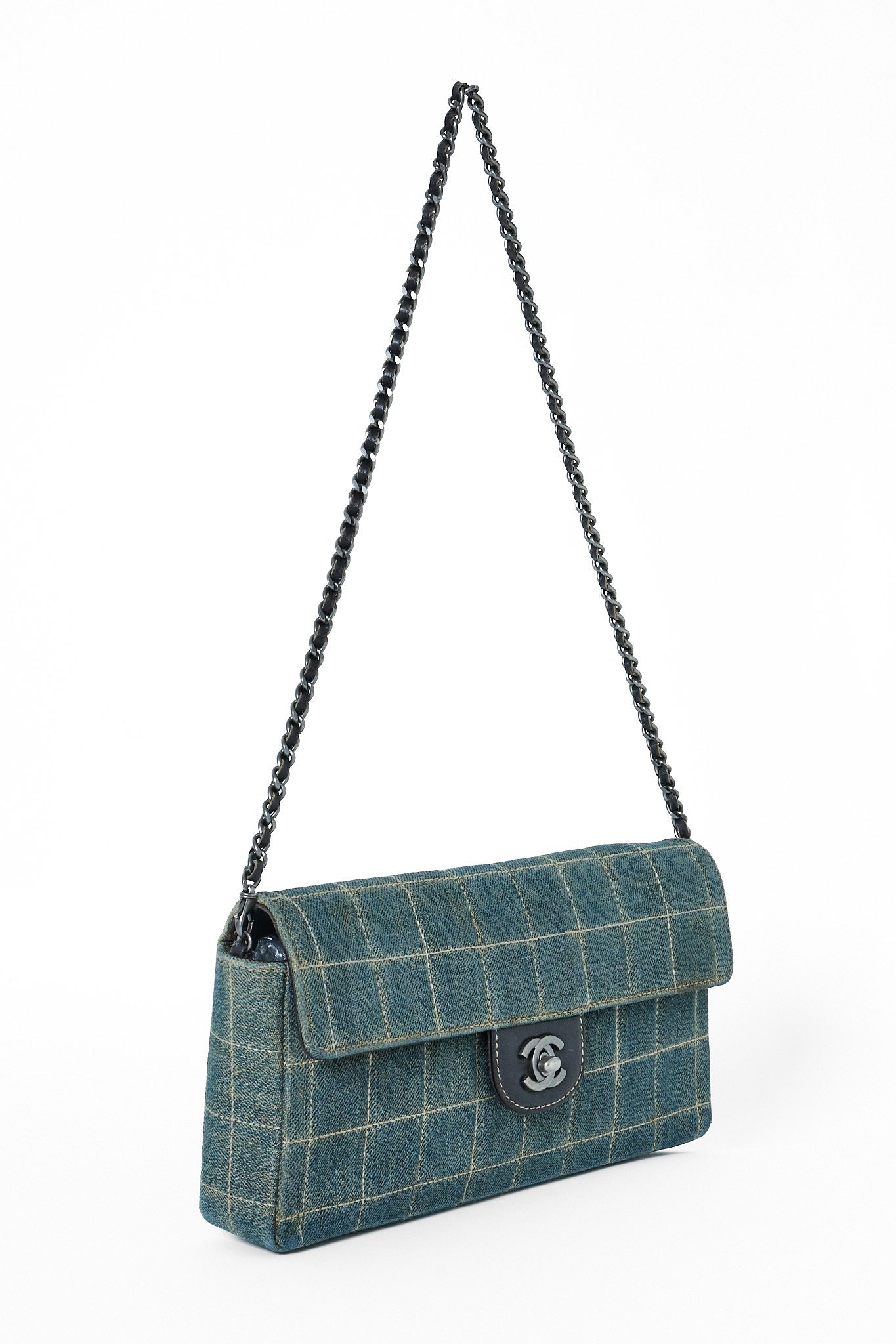 CHANEL EAST WEST CHOCOLATE BAR DENIMVÄSKA: Upplev lyx kombinerat med avslappnad elegans. Denna väska är tillverkad av denim med läderdetaljer och en snygg kedjerem, vilket skapar en tidlös design. Den distinkta chokladkakequiltningen ger väskan en sofistikerad touch.