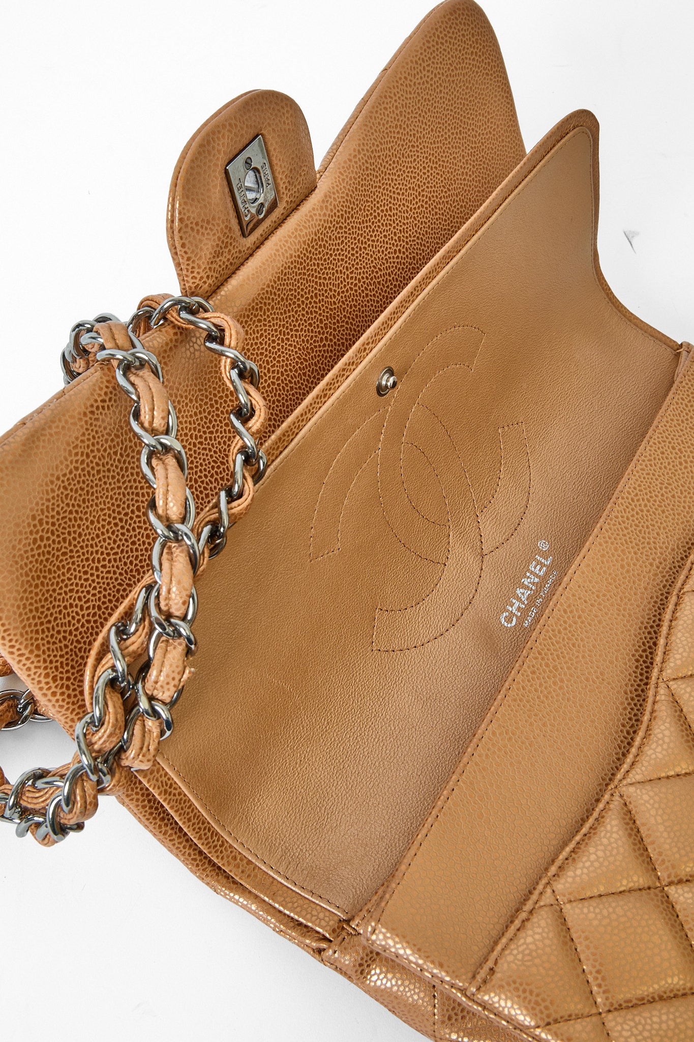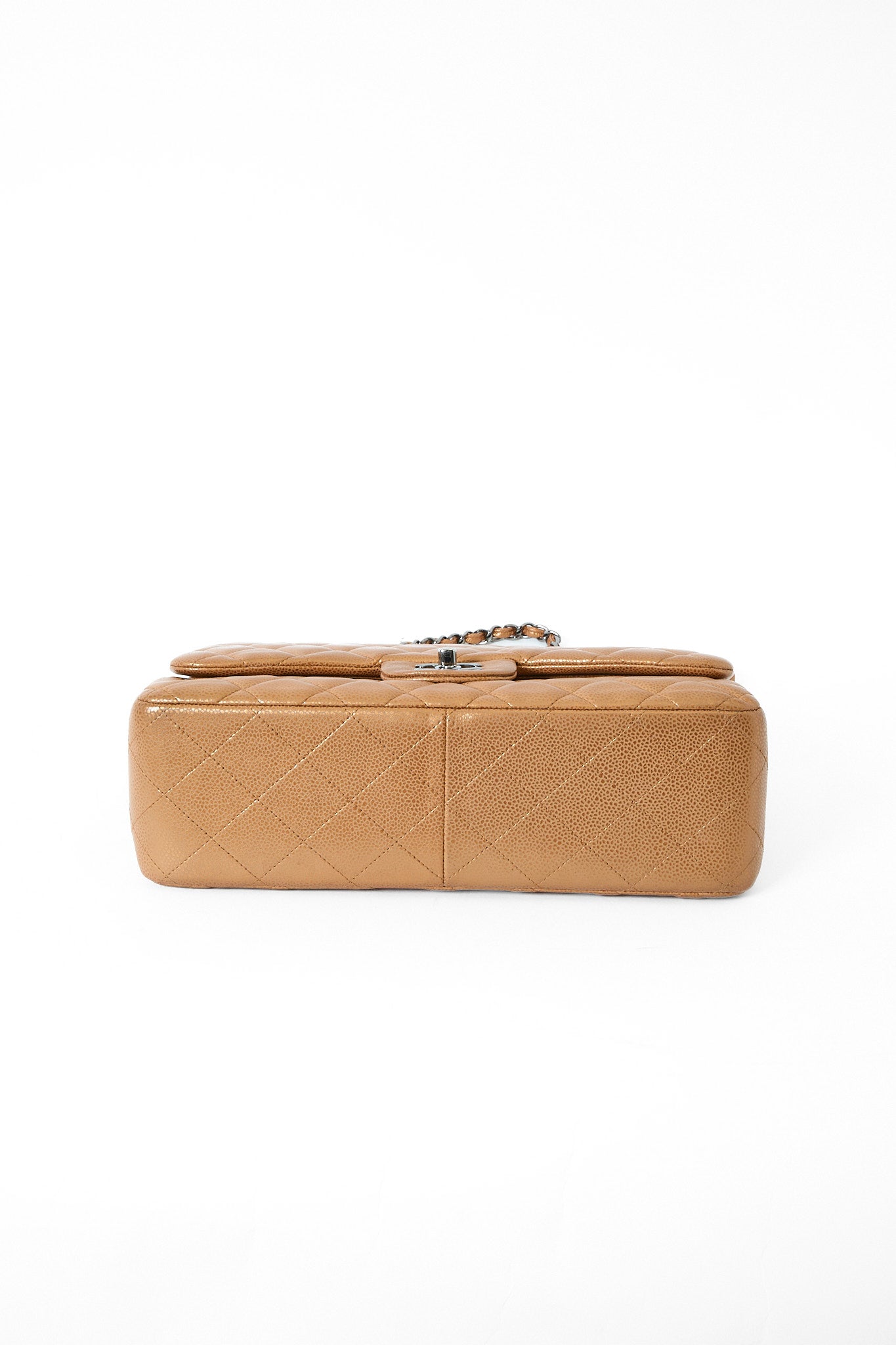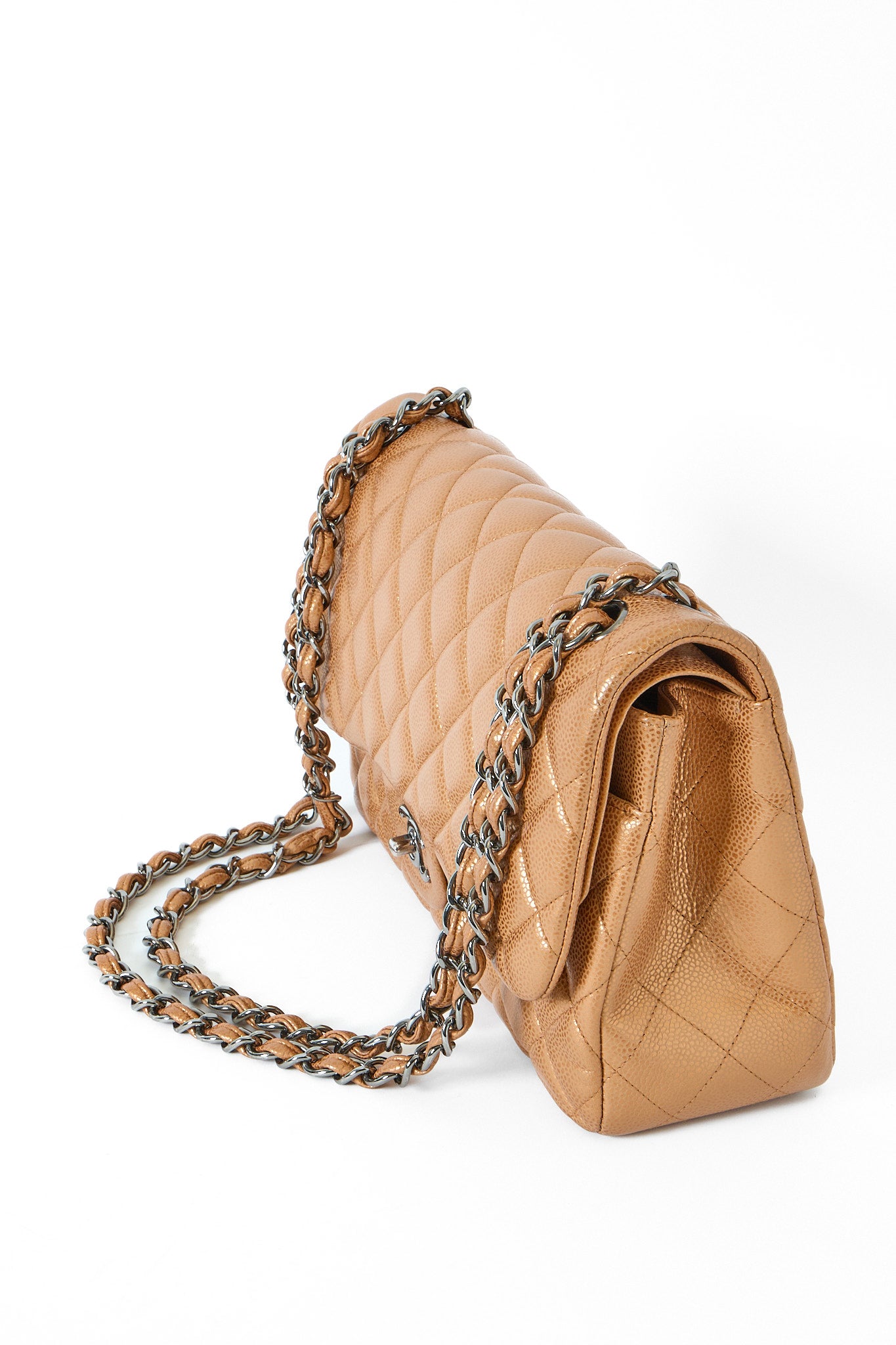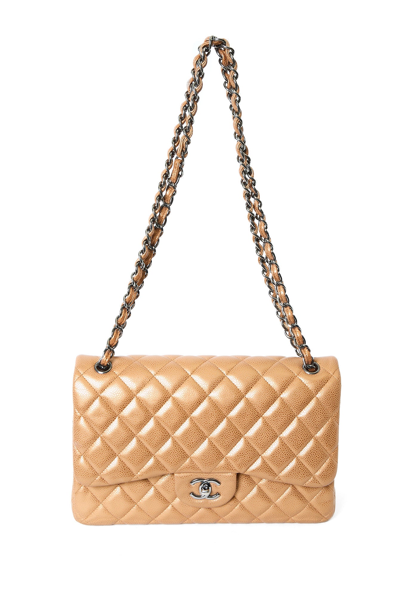 Upptäck den eleganta CHANEL JUMBO DOUBLE FLAP-väskan från Chanel Classic Flap-kollektionen. Denna väska kombinerar utsökt kaviarläder med lammskinn för att garantera både stil och hållbarhet. Den tidlösa designen gör den till ett mångsidigt accessoar i vilken garderob som helst, och den kan matchas med både en klänning eller jeans och kavaj för en sofistikerad look.