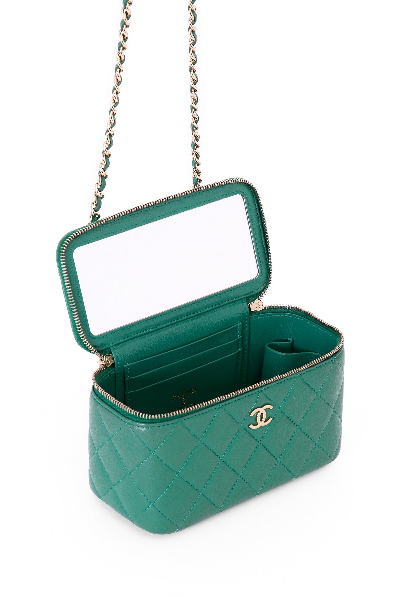 Oplev luksus og funktion med Chanel VANITY fra forår-sommer 2025 kollektionen. Denne kosmetiktaske, fremstillet med grained kalveskind og guld-tone metal, måler 8.5 x 11 x 7 cm. Ideel til dine skønhedsprodukter, den tilbyder stil og elegance i én pakke. En tidløs tilføjelse til din samling.
